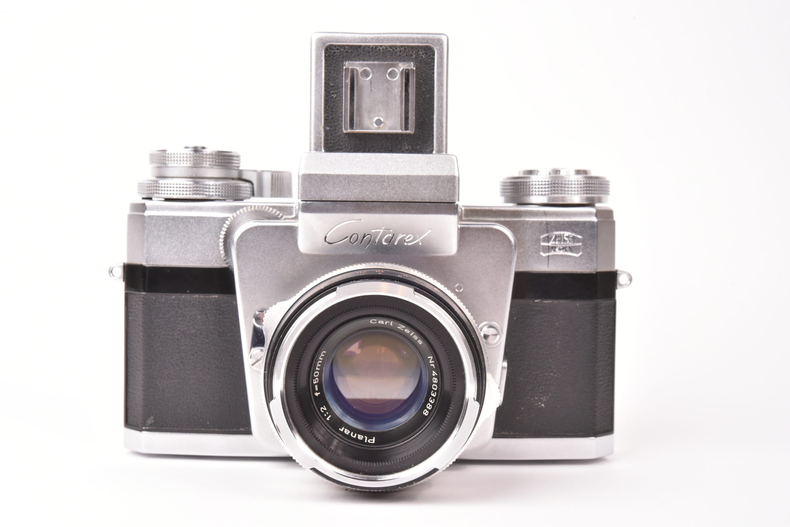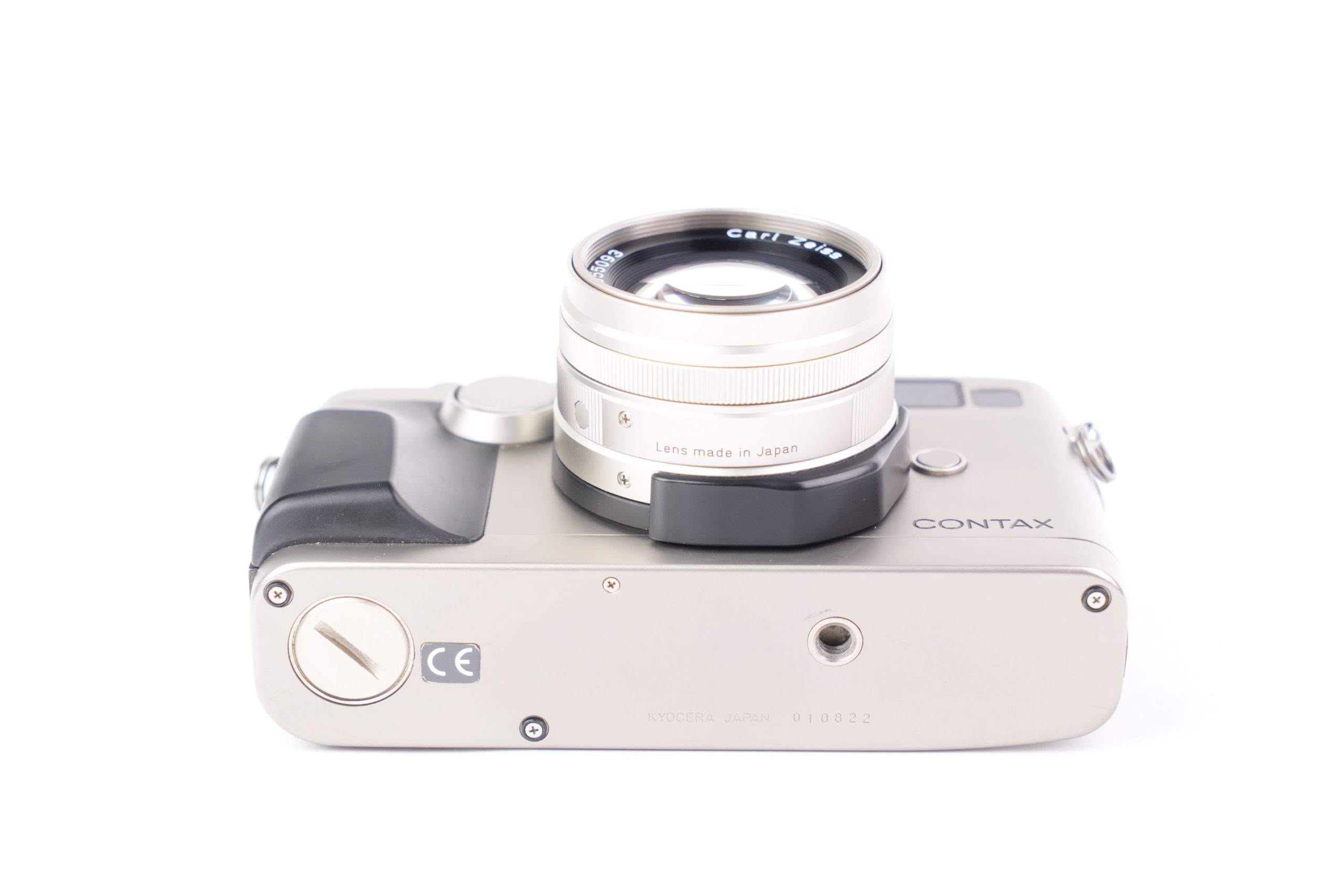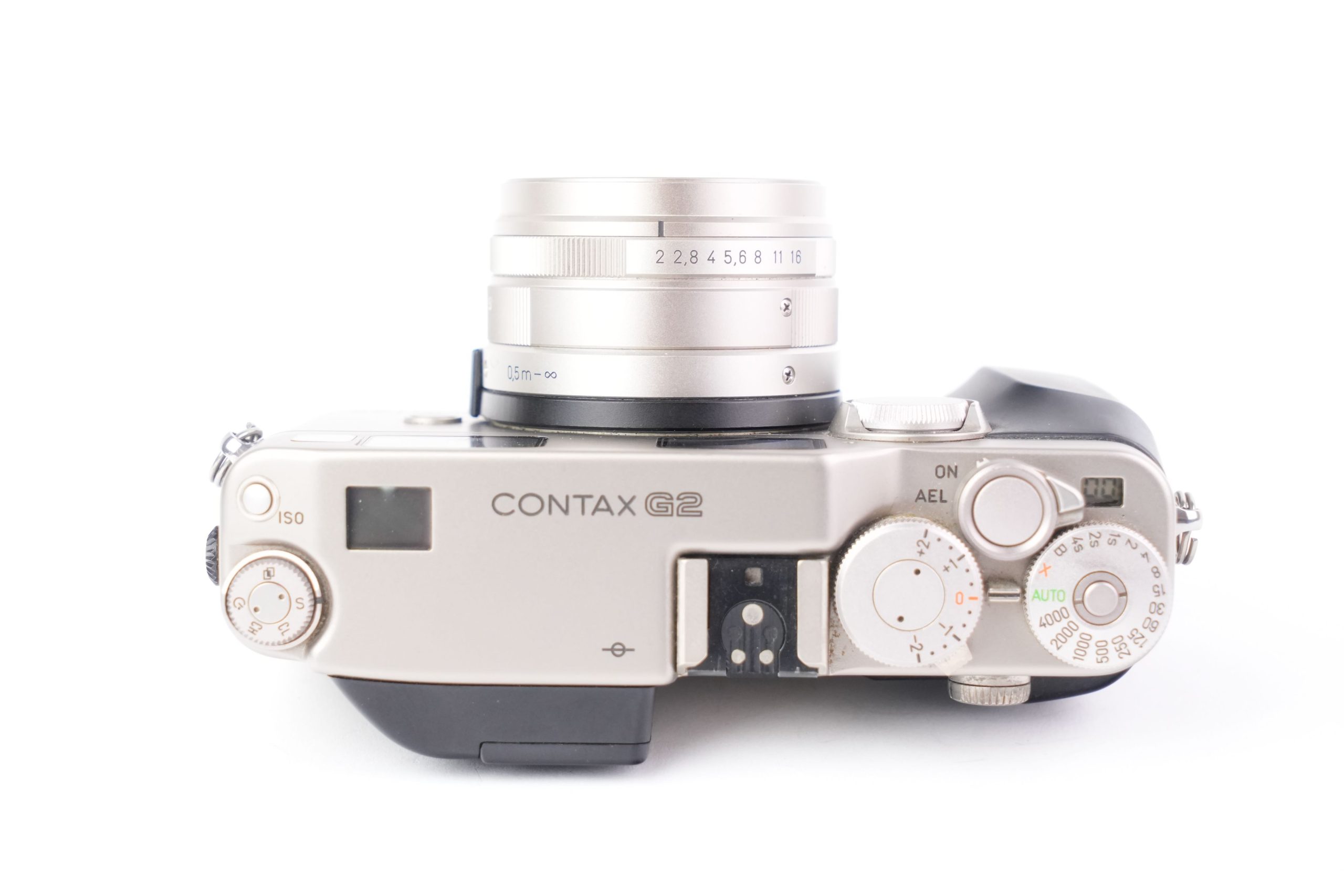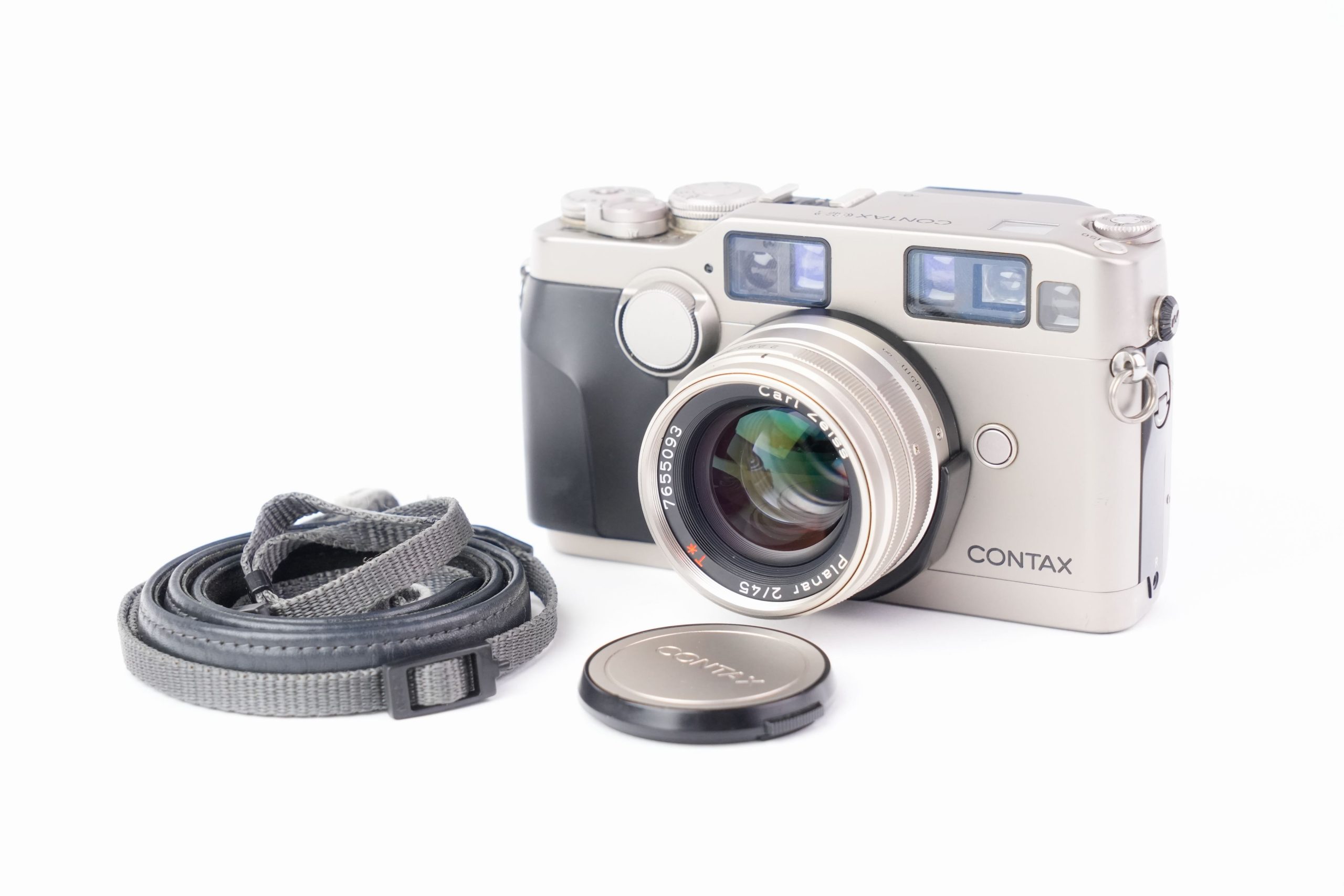Le Contax G2, produit par Kyocera entre 1996 et 2005, est un appareil photo télémétrique 35 mm en titane, considéré comme l’un des modèles les plus perfectionnés de son époque. Équipé ici d’un objectif <em data-start="276" data-end="309">Carl Zeiss Planar T 35 mm f/2</em>* (numéro de série 805067), il combine autofocus hybride télémétrique et commandes électroniques, avec un obturateur à plan focal allant de 16 secondes à 1/6000 s, et propose plusieurs modes d’exposition (manuel, priorité ouverture, programme). D’un format compact (136 × 77 × 38 mm pour un poids d’environ 580 g sans objectif), il intègre une motorisation pour l’avance et le rembobinage du film. Sa finition en titane et la qualité optique des objectifs Carl Zeiss T* lui valent une réputation durable auprès des photographes, souvent qualifié de « Leica électronique ». L’exemplaire présenté est en bon état de conservation, avec de légères traces d’usage sur la poignée. Nombre de déclenchements environ 5200.