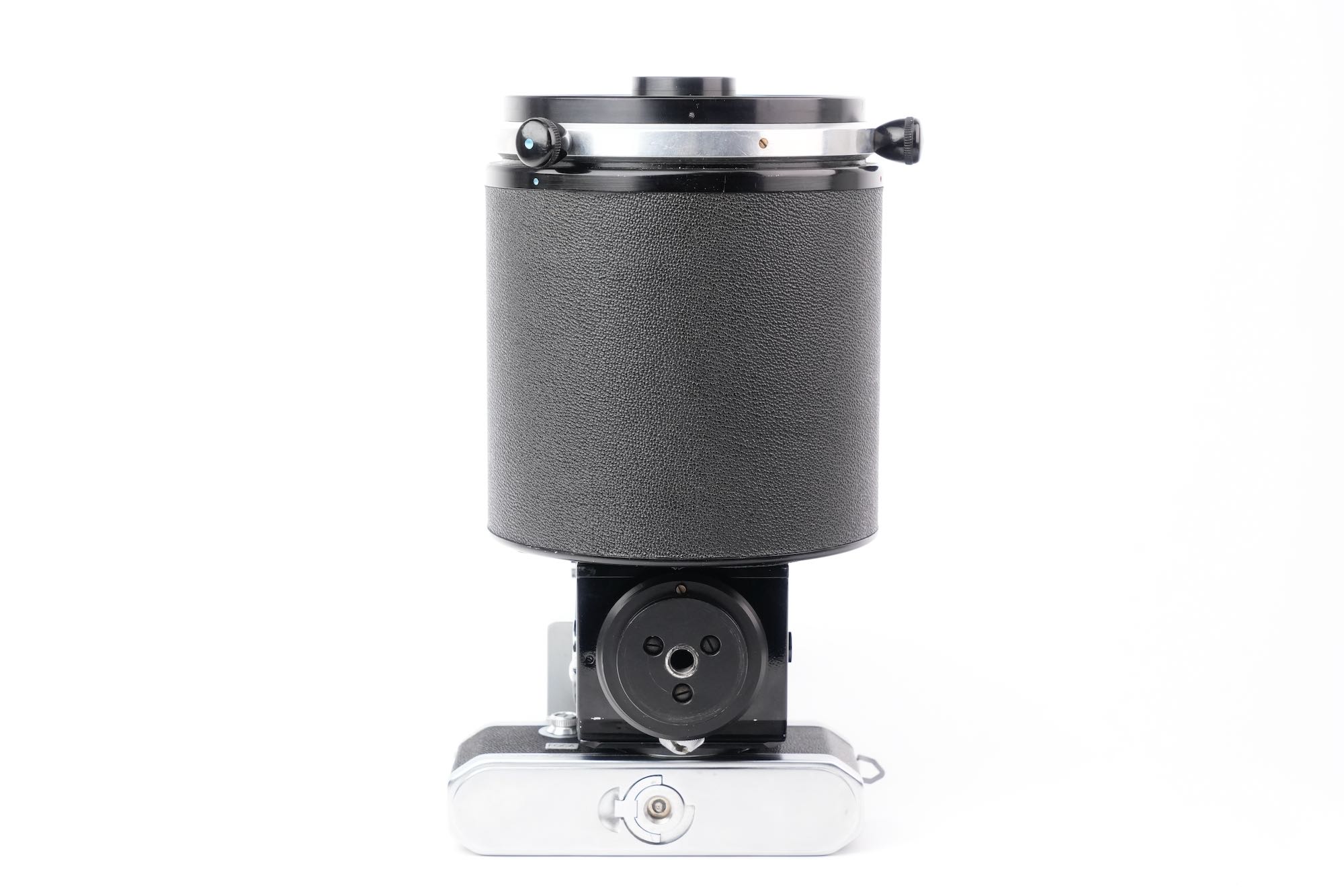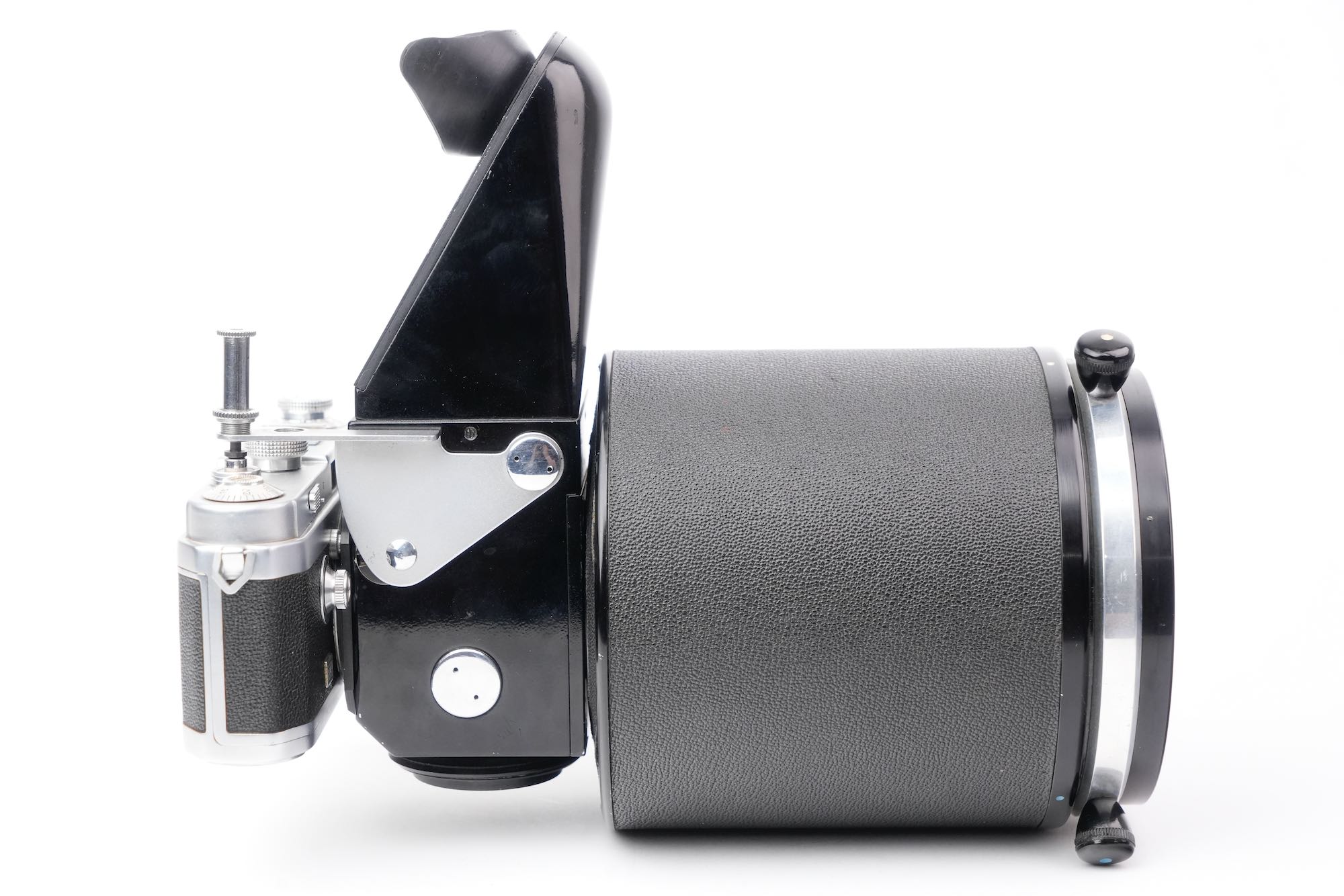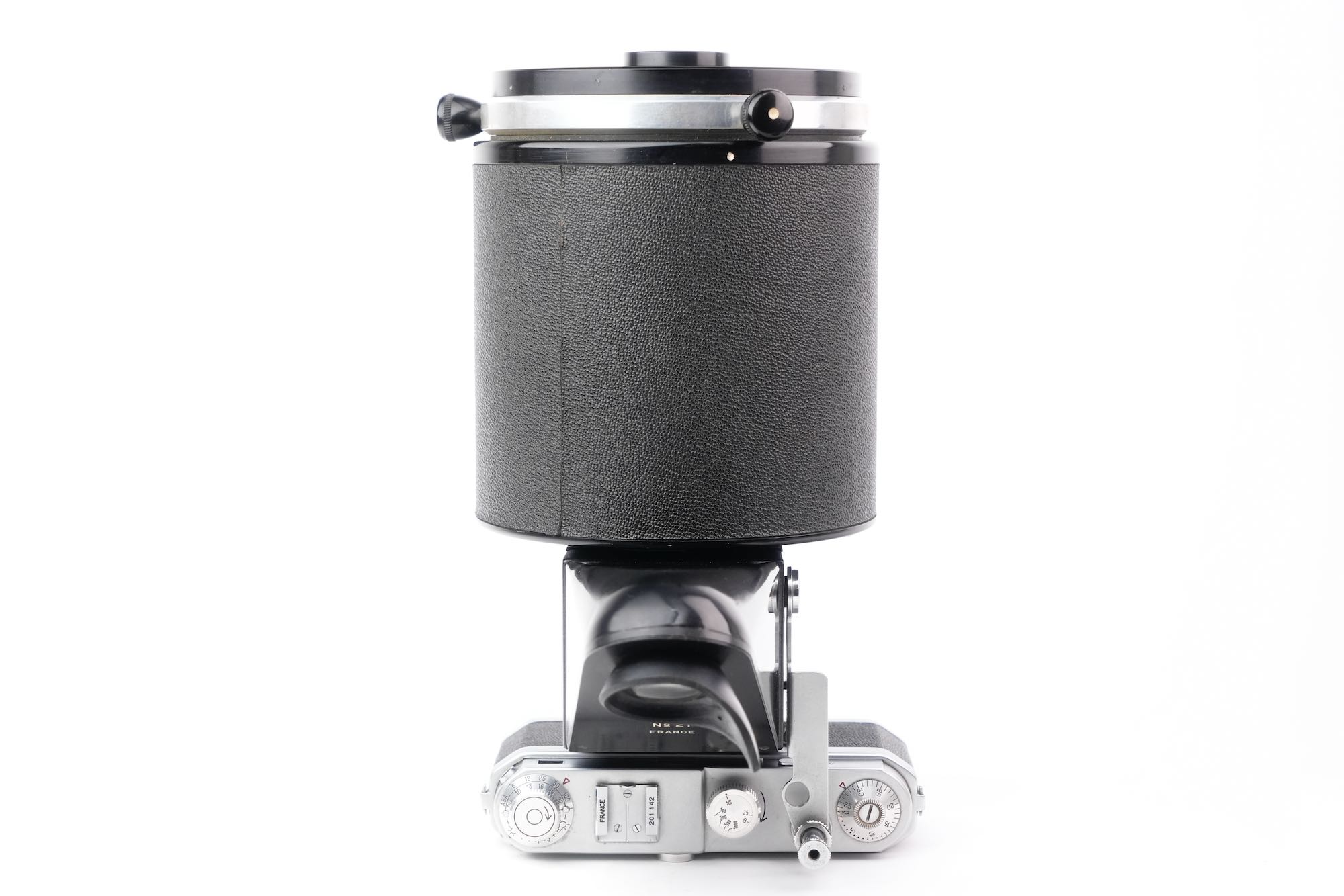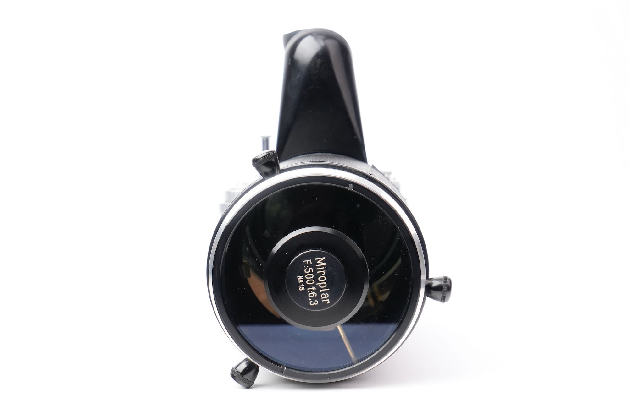<div class="available-middle-text">Imposant objectif catadioptrique du fabricant français OPL avec sa chambre réflex coudée "Microfoca" semi automatique N°21 et son Foca Universel N°201.142. Notre objectif Miroplar porte le numéro 15, il appartient à la deuxième génération avec son boucon laqué noir et son revêtement en Skaï. Optiquement, cet exemplaire n'est pas irréprochable. On note la présence de brume et de champignons, notamment en périphérie des miroirs. La mise au point est fluide et la chambre reflex Microfoca est opérante. Dans son livre de référence sur le sujet, Jean Loup Princelle (Foca Historica, Cyclope, 1997, pp. 138-141) nous précise que seuls 50 exemplaires furent produits et environ 25 assemblés ! Un objectif rare.</div>