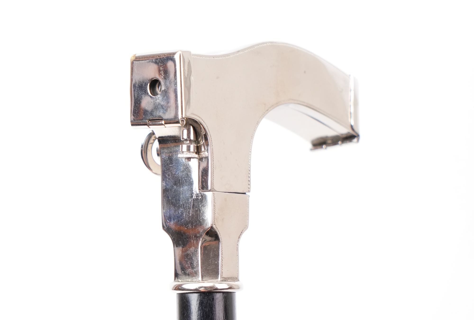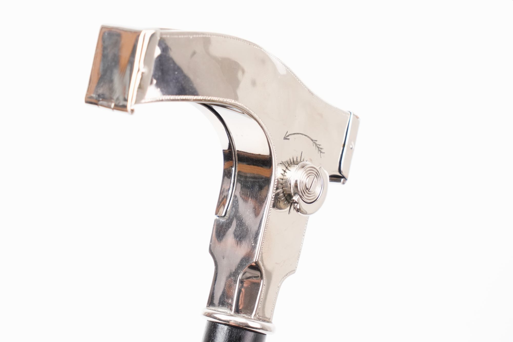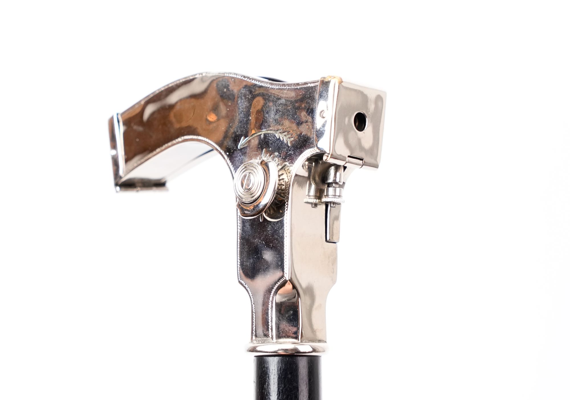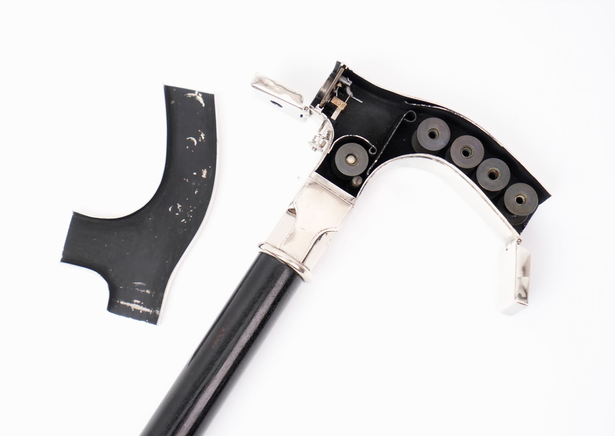 <div class="available-middle-text">Réplique de caméra espion BEN AKIBA<br data-start="155" data-end="158" />Appareil photographique miniaturisé intégré dans un pommeau de canne, reprenant le modèle original conçu en 1903 par Emil Kronke. Le dispositif comprend un mécanisme d’armement à ressort, un déclencheur dissimulé et un compartiment interne permettant le chargement d’une bobine de film 18 mm, offrant une capacité de 20 expositions.<br data-start="490" data-end="493" />Cette réplique, de fabrication postérieure, reproduit fidèlement les caractéristiques mécaniques du prototype, avec un obturateur toujours fonctionnel. Le pommeau présente une finition sobre, soulignée par un rehaussé en pointillés le long des arêtes. L’ensemble est monté sur une canne en bois, comme prévu dans la configuration d’origine.</div>