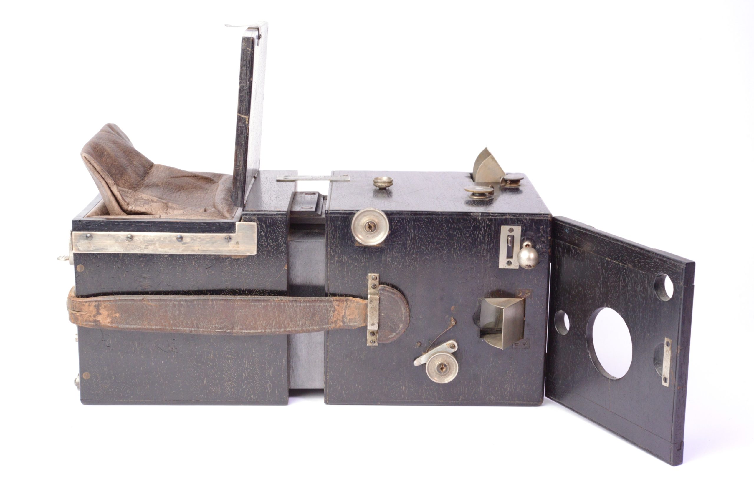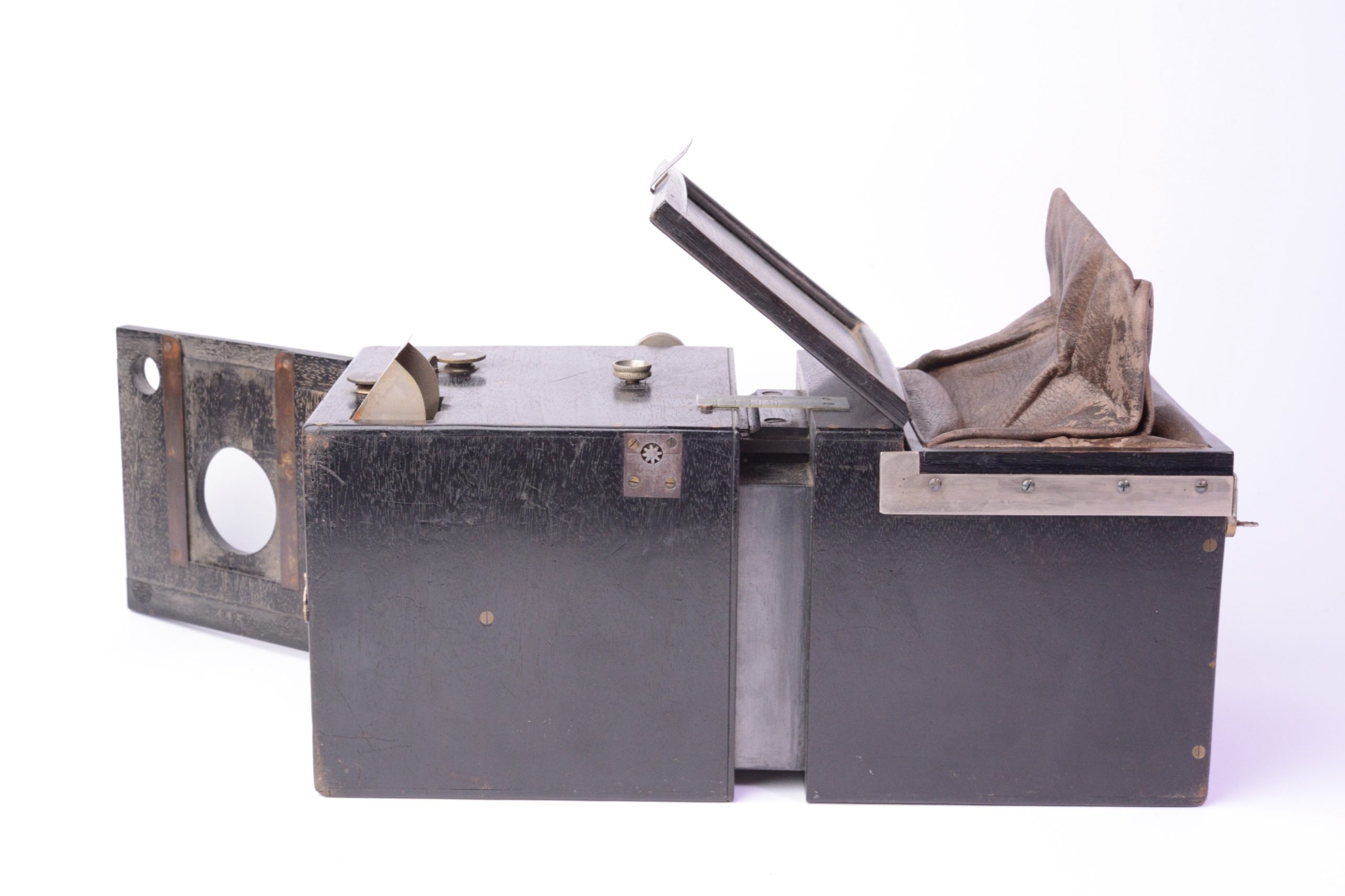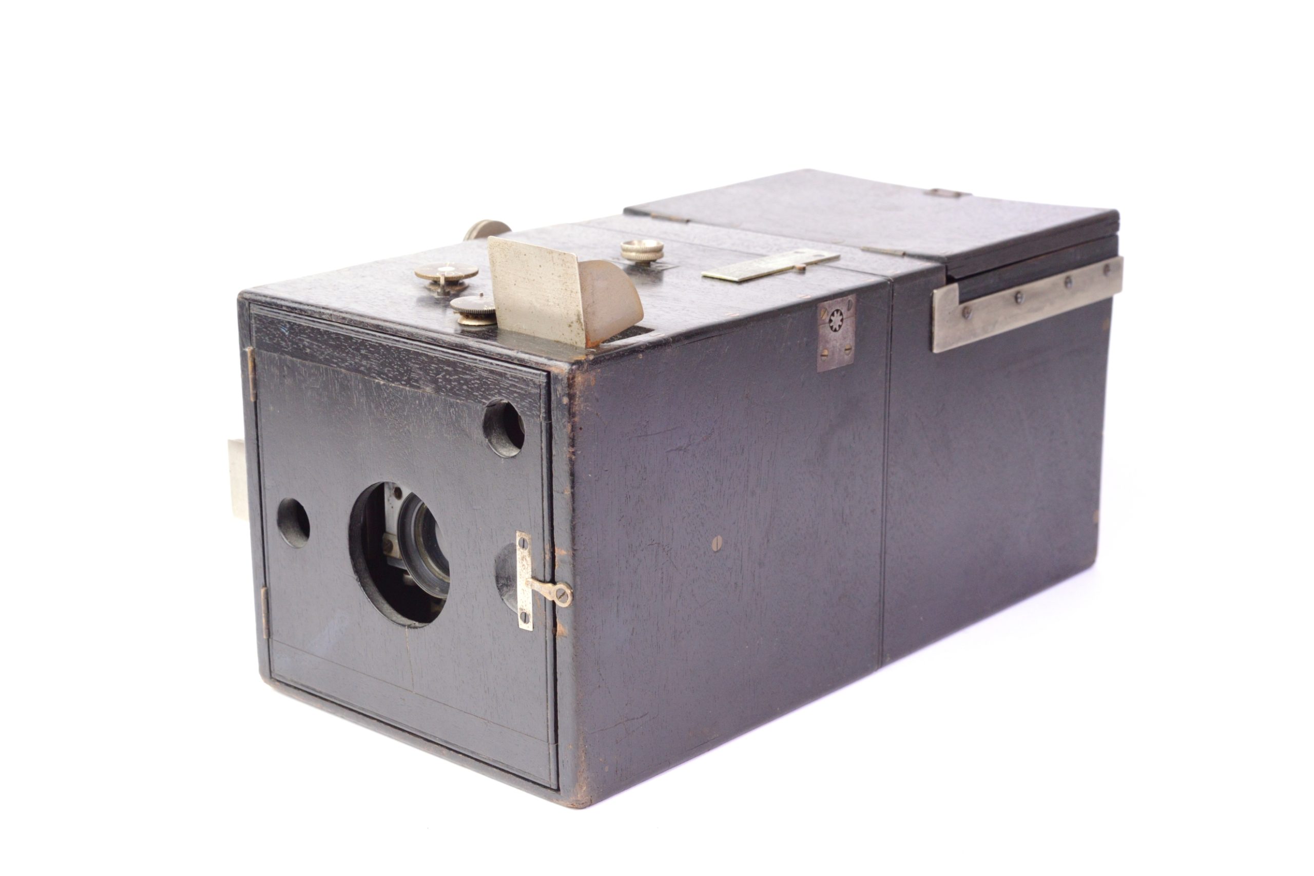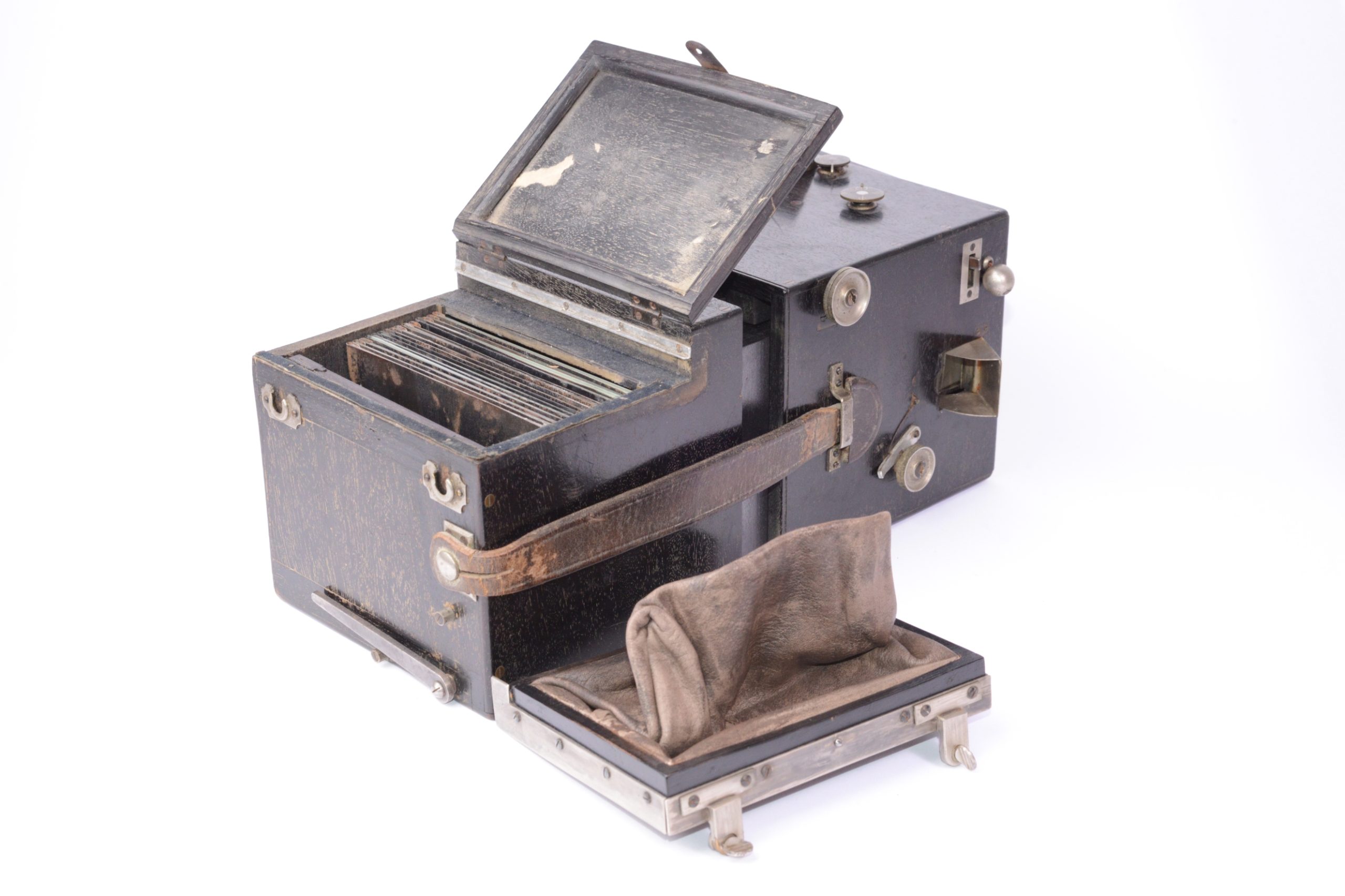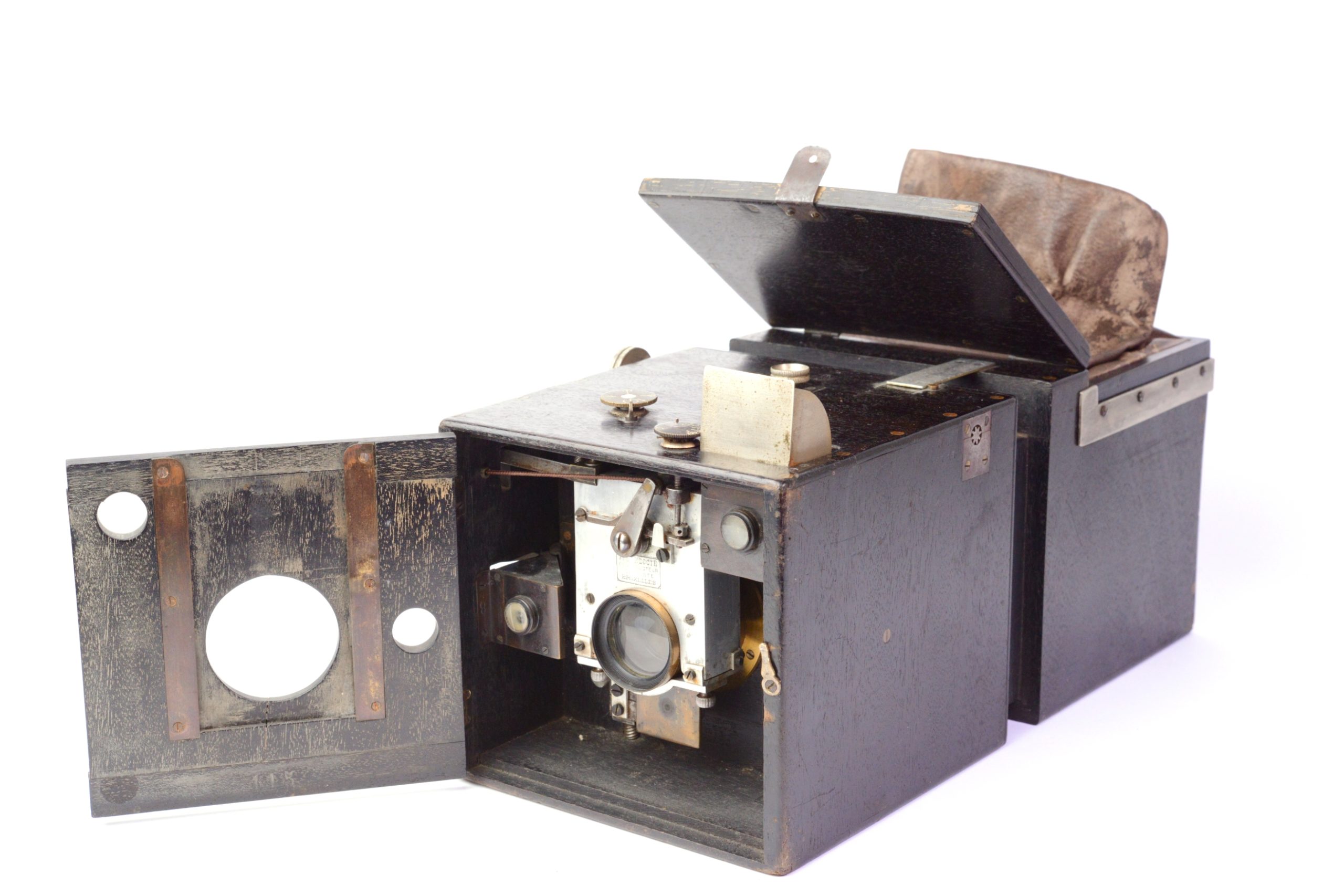 L’une des versons de l’Exell Detective breveté par Armand Le Docte à Bruxelles, Belgique le 4 mai 1889. Construction en bois noirci. Il est prévu pour 18 plaques de 8 x 10,5 cm emmagasinées dans le corps arrière. Changement de plaque se faisant par poche de cuir. Objectif Rectiligne 1 : 8 / 135 mm. Obturateur amovible à guillotine simple Réglage des distances par coulissement du tiroir du corps arrière activé par un bouton agissant sur crémaillères. Deux viseurs réflex protégés par capuchon pivotant. Appareil rare.
