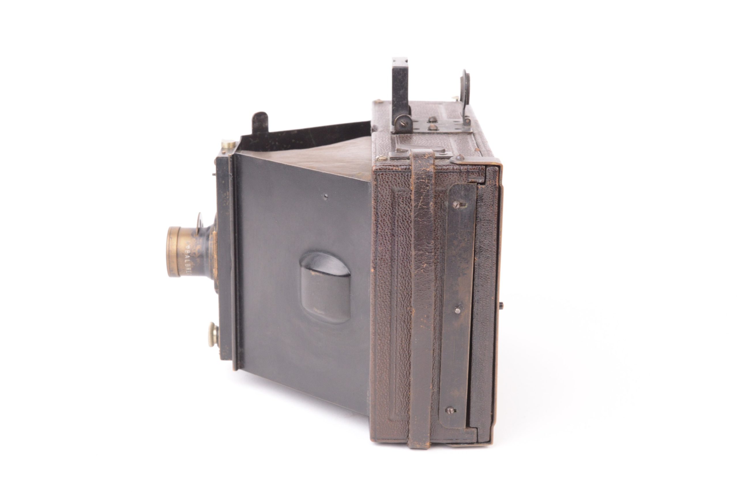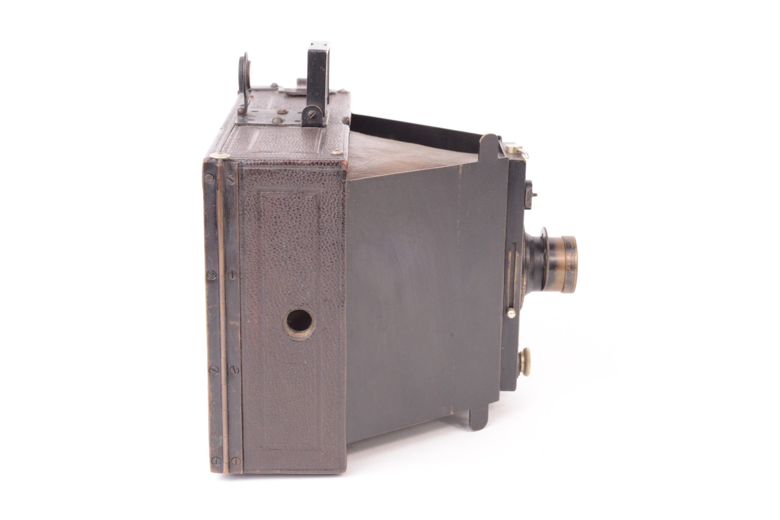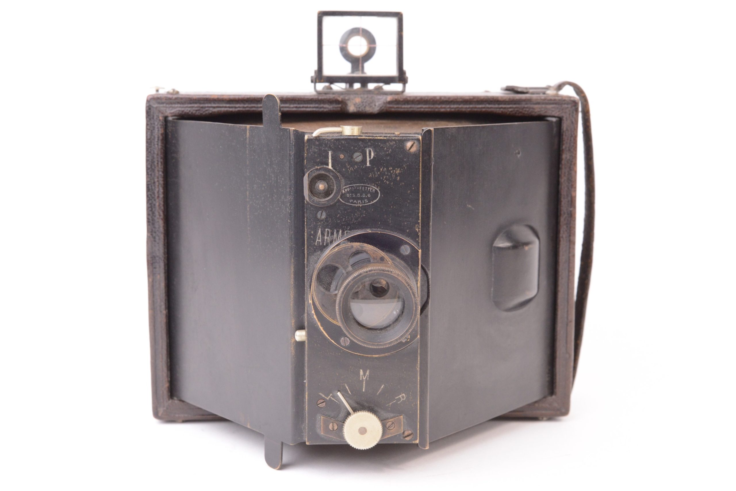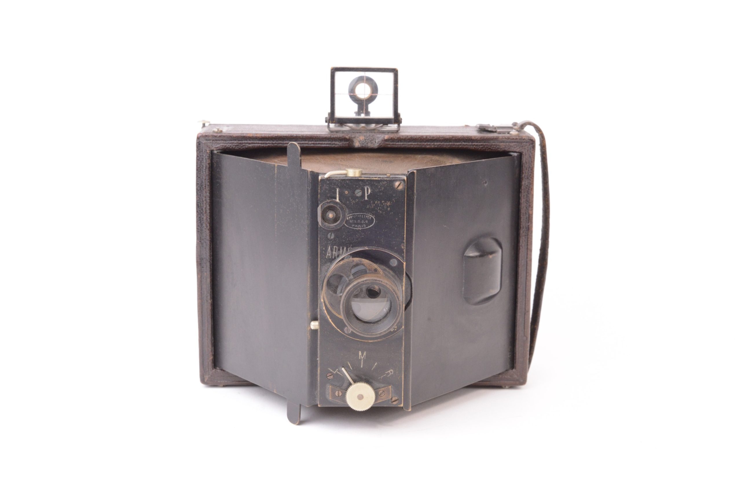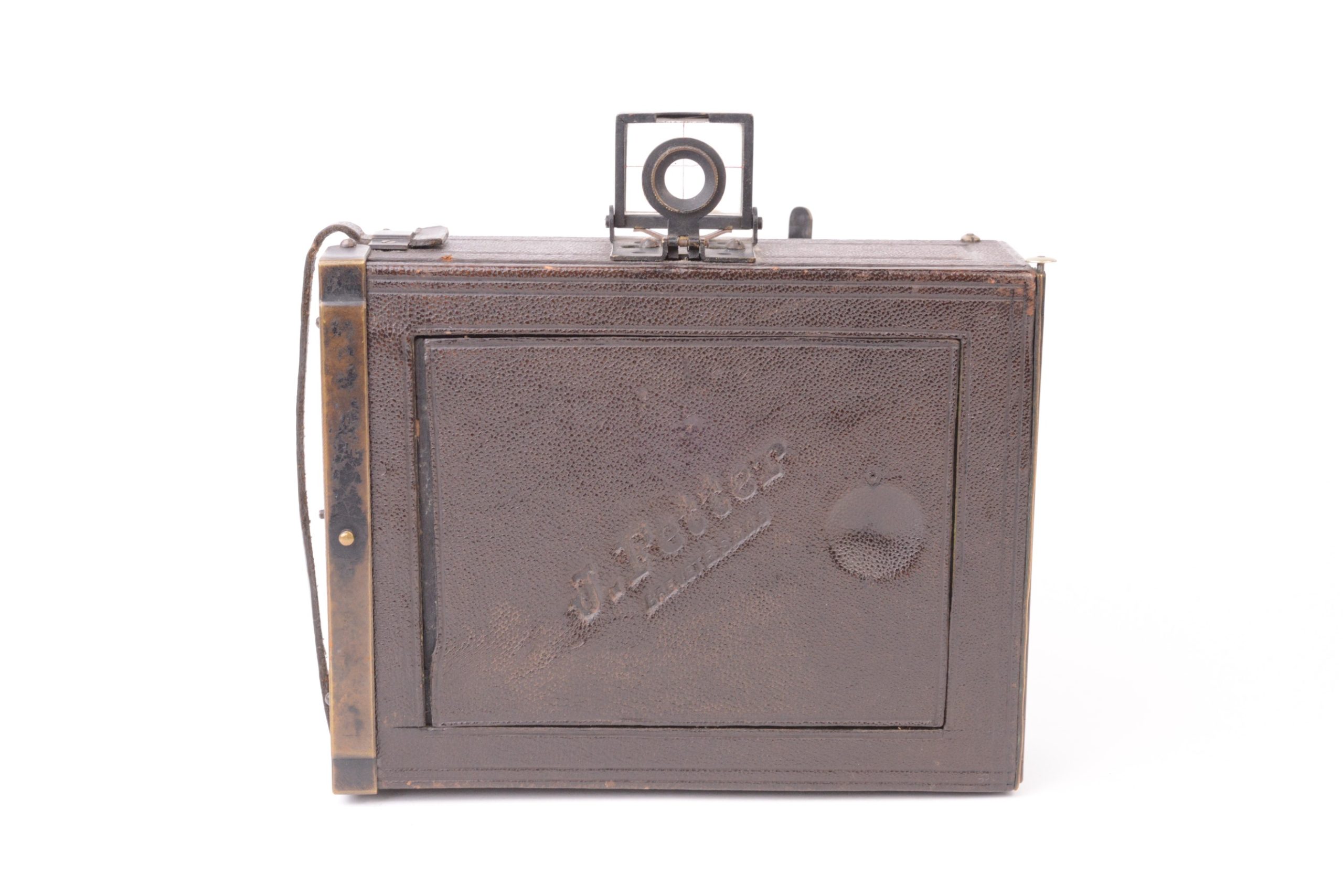 Rare appareil pliant breveté en France par J. Fetter le 22 juin 1900. Format 9x12 cm. Objectif Verax anastigmat 1 :8 – F=150 mm Diaphragme iris. Obturateur à guillotine (pose et instantané à vitesse variable). Système à joues avec soufflet en peau souple. Viseur clair à lentille négative et œilleton positif. Cadre avec verre dépoli. L’appareil a fait l’objet d’une présentation illustrée dans la revue La Nature du 13 juillet 1901 (voir documents joints). Très peu courant.