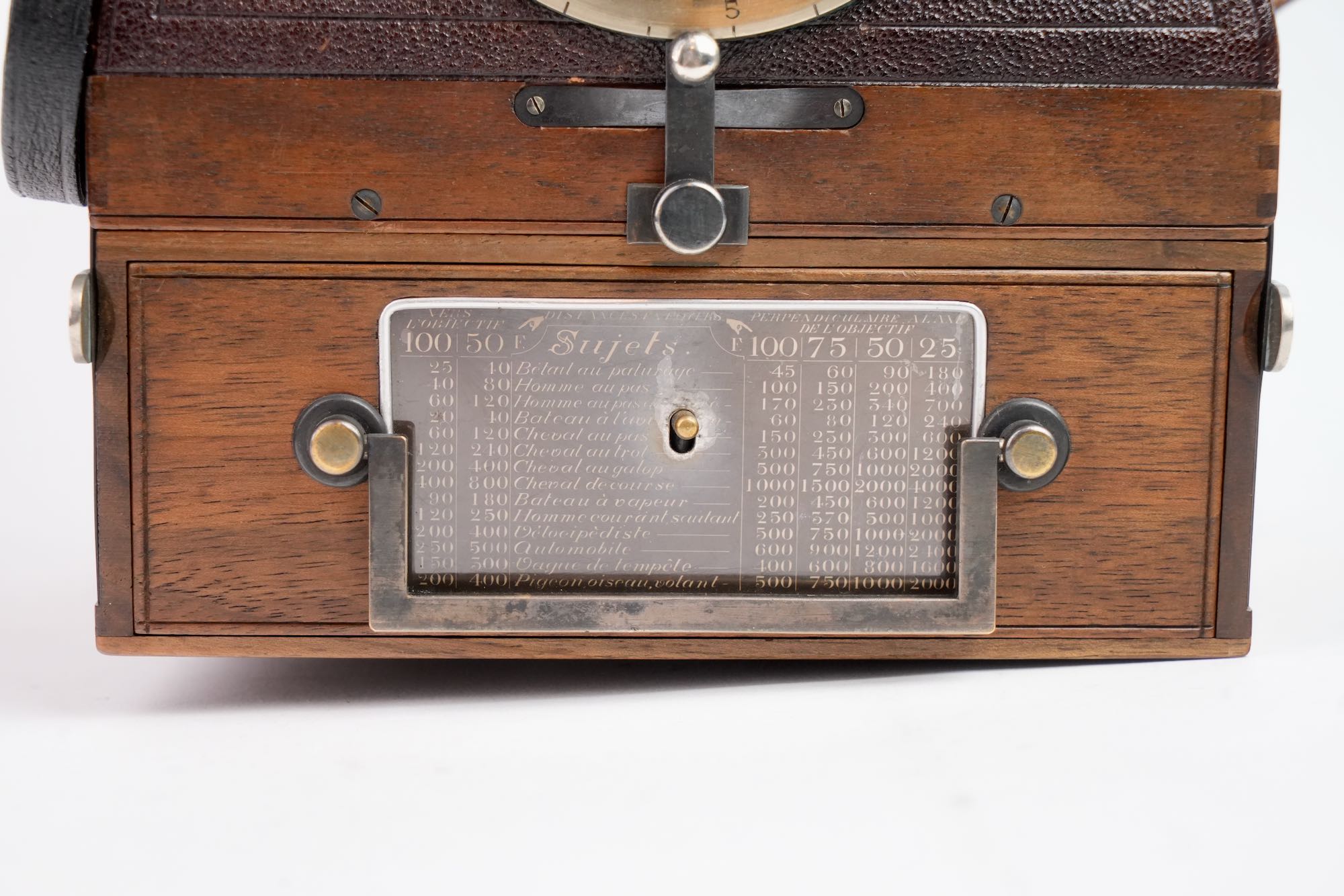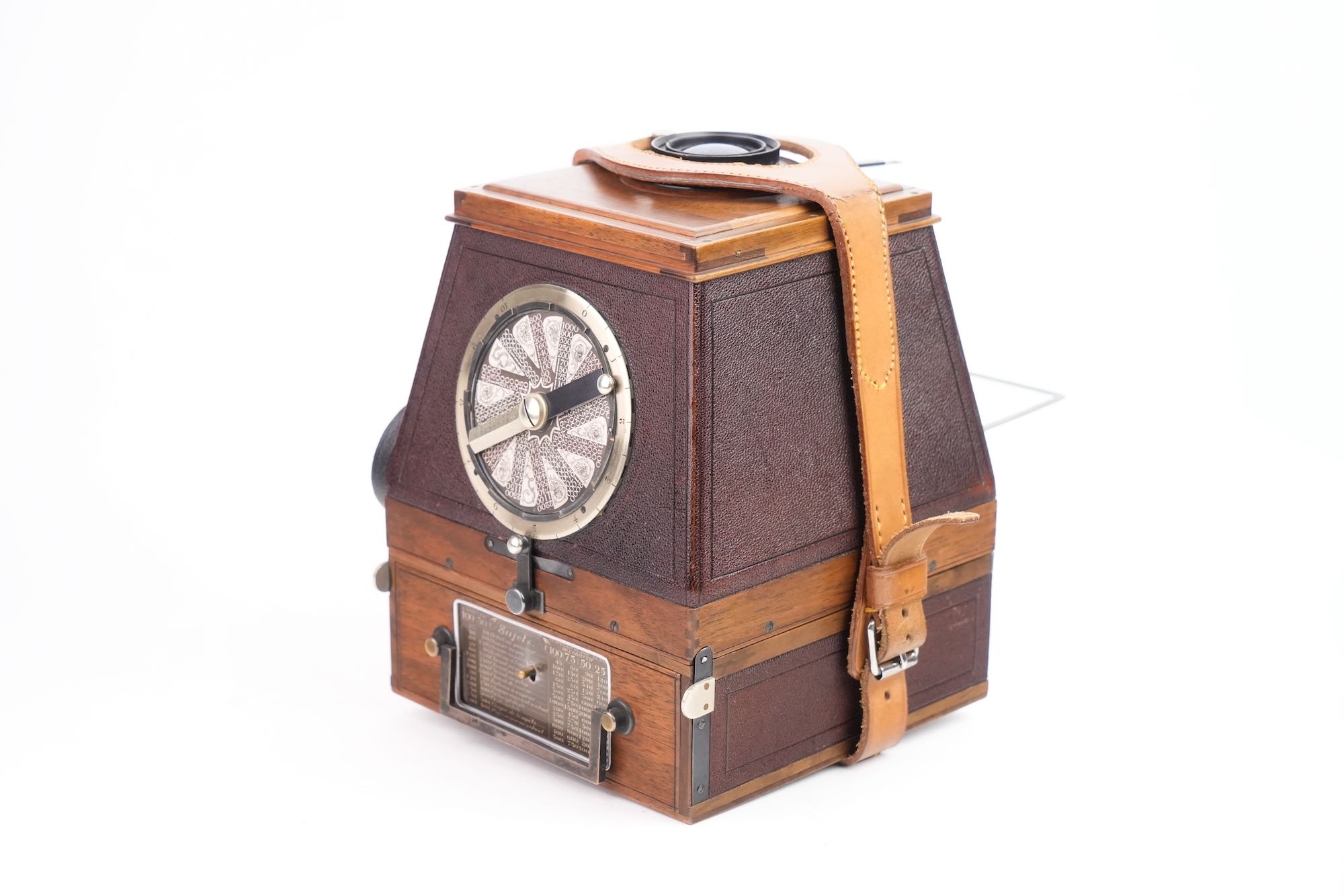 Jean Guido Siegrist (1864–1915), vers 1899Conçu à Paris par le peintre et inventeur suisse Jean Guido Siegrist, cet appareil photographique à plaques au format 6,5 × 9 cm ou 9 × 12 cm est l’un des premiers modèles à magasin de vingt plaques doté d’un obturateur à plan focal à très haute vitesse. Fabriqué par la Société Anonyme des Appareils Photographiques à Rendement Maximum (Neuilly-sur-Seine), il est commercialisé sous les noms Appareils Sigriste ou Appareils SOL, sigle estampé sur le boîtier. Son obturateur métallique à fente, breveté, permet des vitesses allant jusqu’à 1/2000 seconde, destinées à la photographie instantanée et à la capture du mouvement à la fin du XIXᵉ siècle.