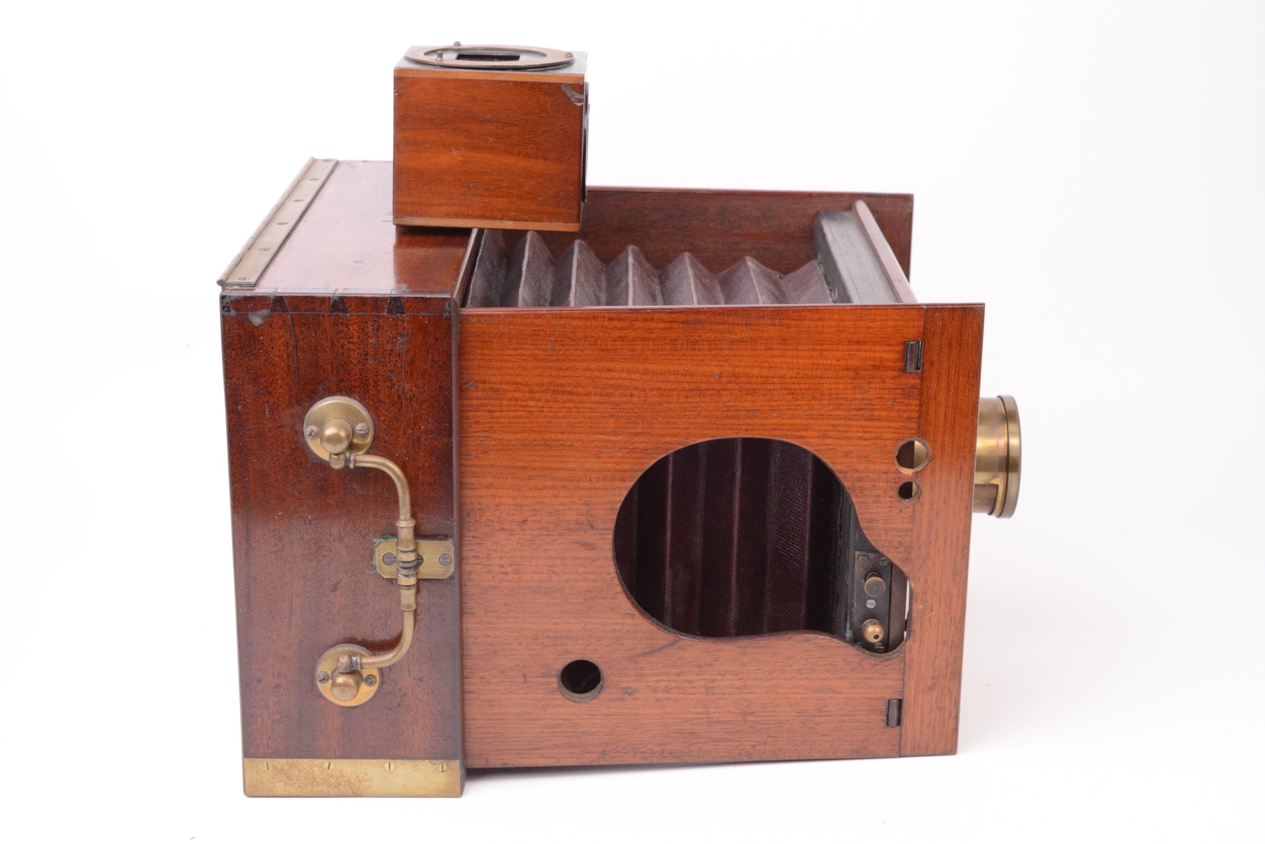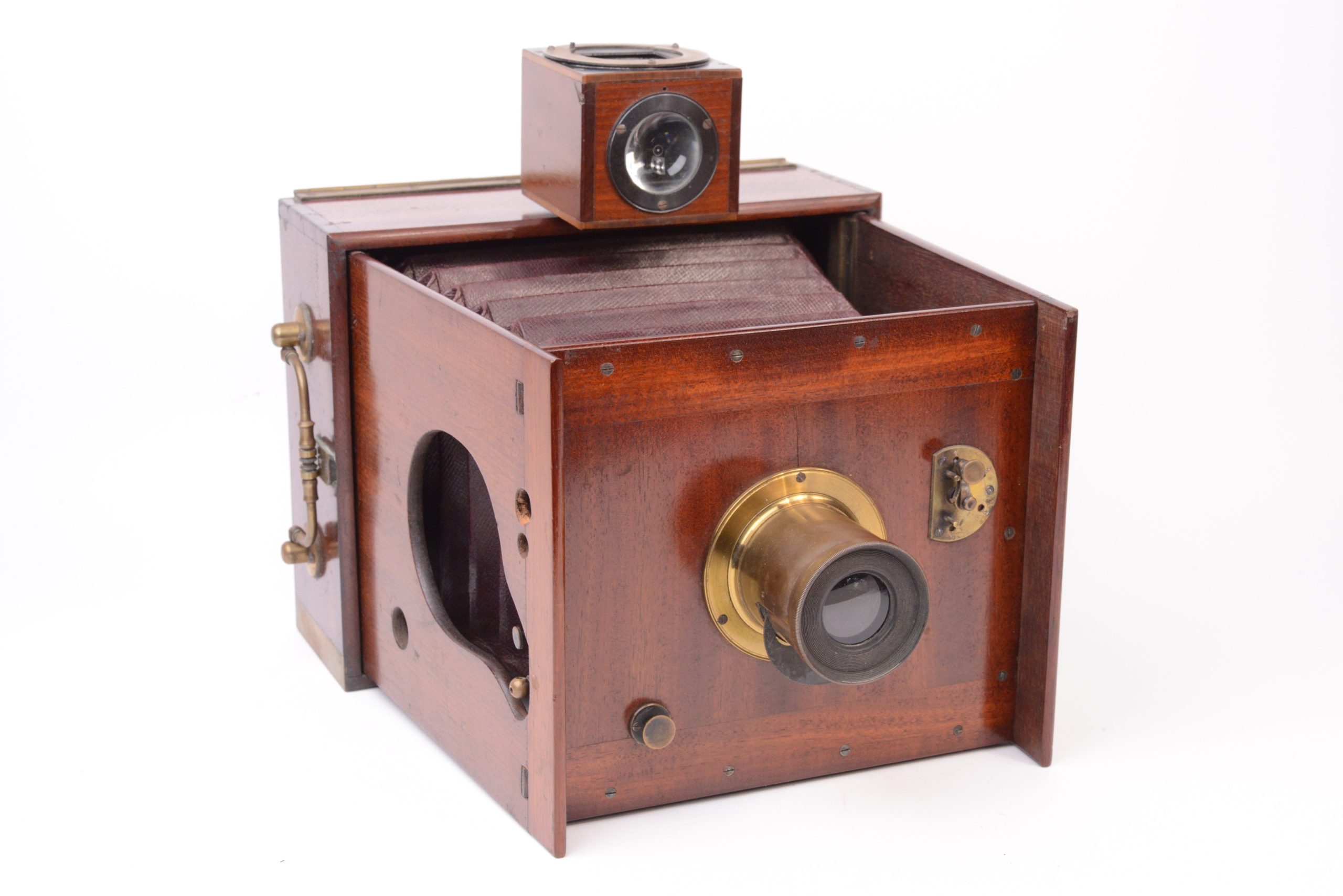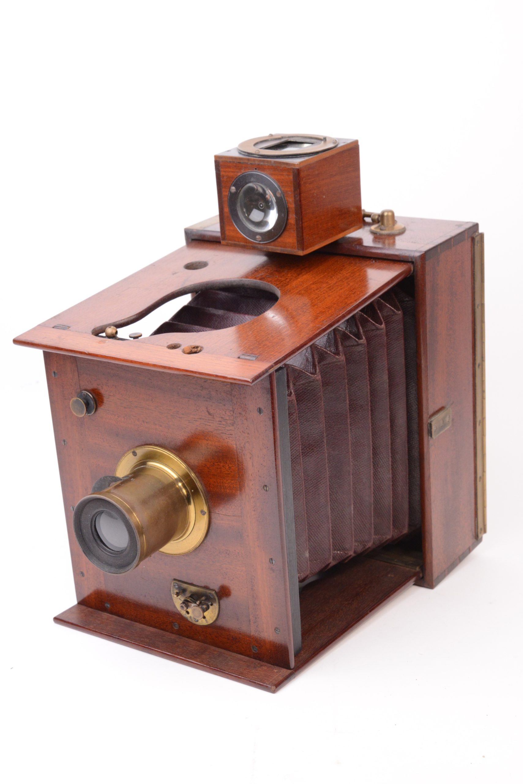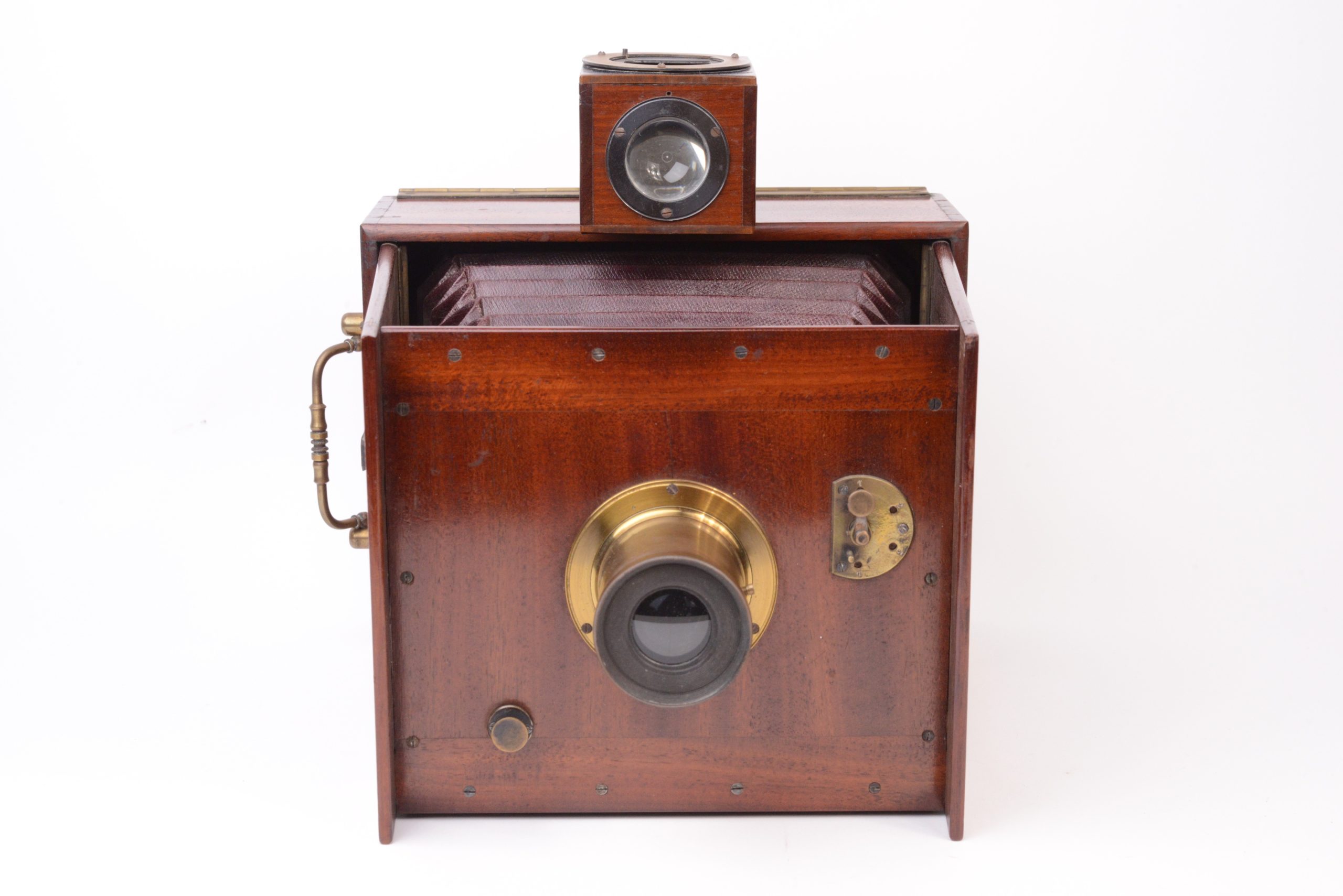Le Traveller ou Kinégraphe pliant est conçu et fabriqué par Emile Français vers 1895. Il est paru peu après la sortie du Kinégraphe provenant du même fabricant et comme lui il possède un obturateur circulaire muni d'un grand disque rotatif. Il peut être qualifié d’appareil de type à ailettes ou à joues. Il est équipé d'un grand viseur réflex à miroir. Le cadre de visée est orientable selon le mode de prise de vue portrait ou paysage. L’armement de l'obturateur s'effectue par une tirette à ficelle en boyau située sur le bas du côté droit de la platine avant. L'objectif, muni d’un diaphragme à tourelle,  est également d’Emile Français ; il se fixe par baïonnettes. Construction du corps en acajou. Soufflet en cuir bordeaux. Poignée ouvragée pour le transport. Format 13x18 cm. Bel état.
