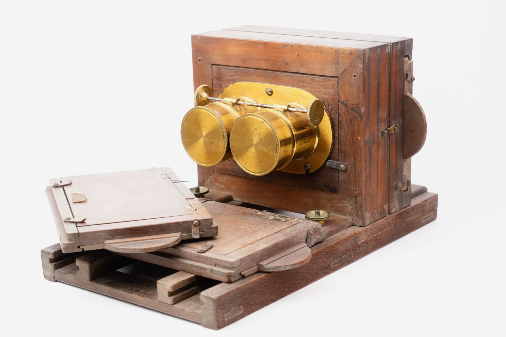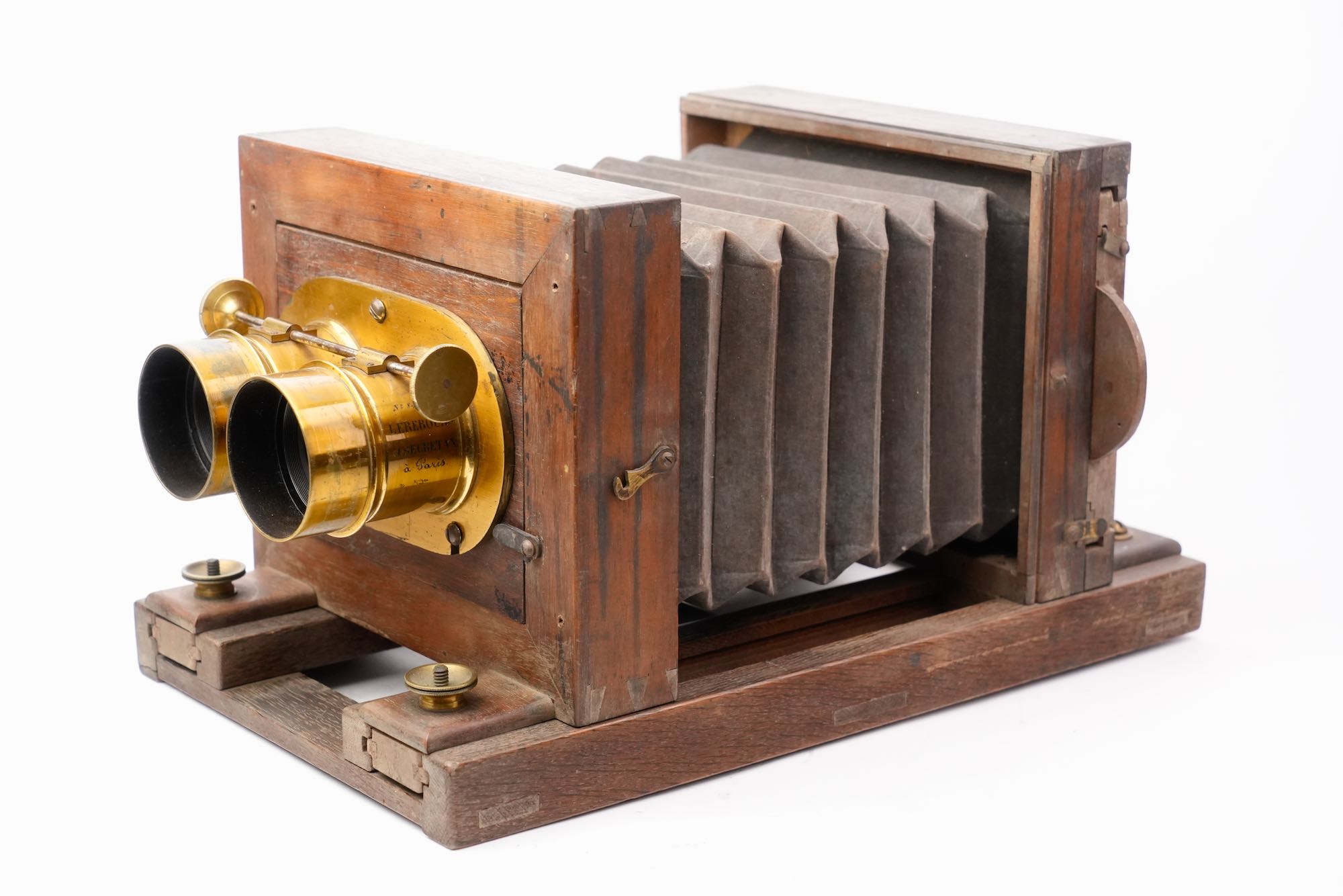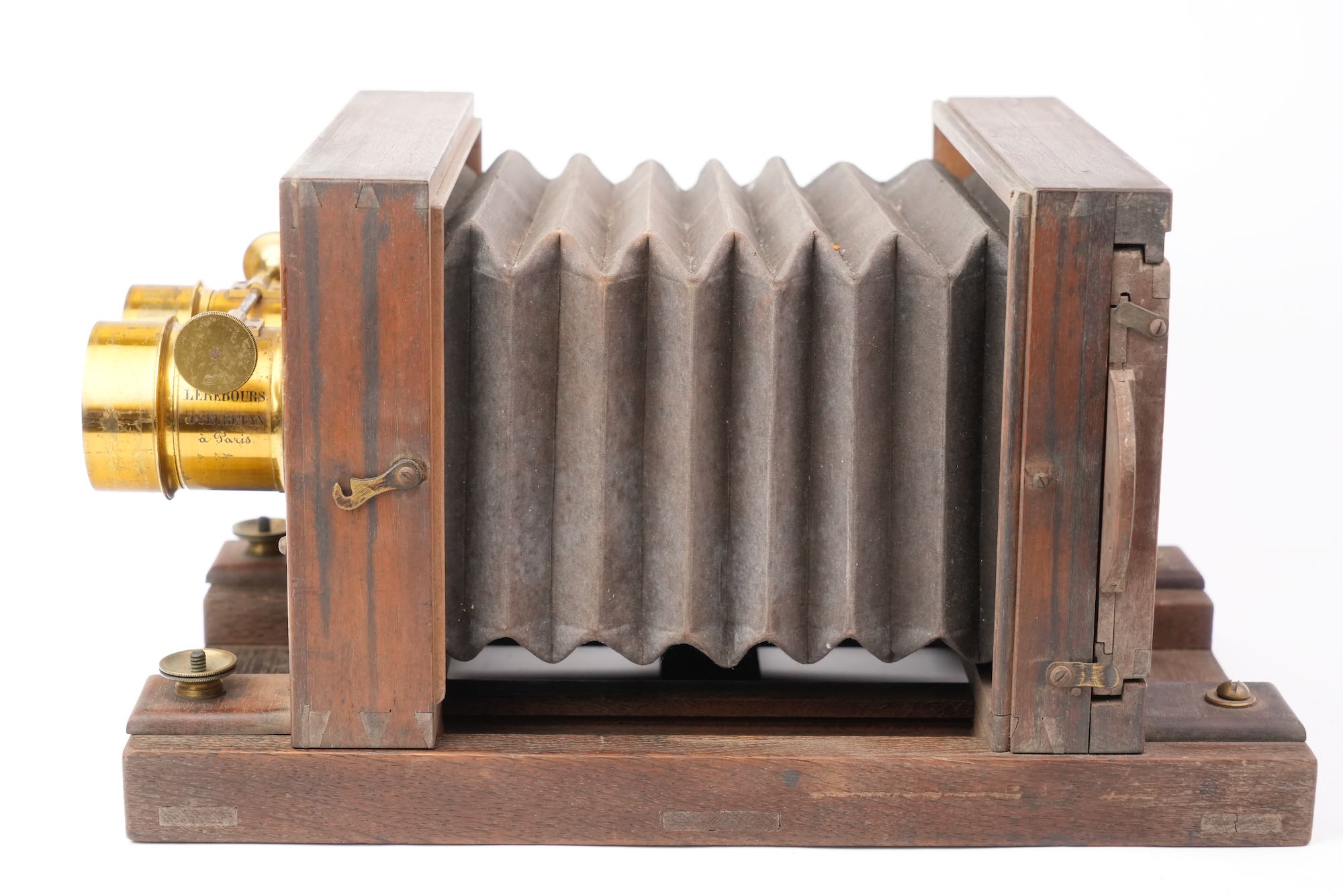 <p data-start="563" data-end="878">Fondée à Paris, la maison Lerebours & Secretan fut célèbre dès les années 1840 pour ses instruments scientifiques et photographiques. Fournisseur de savants, d’astronomes et même de l’armée, elle devint l’un des acteurs majeurs de l’essor de la photographie et de l’optique de précision sous le Second Empire. Cette chambre, complète et en superbe état d’origine.</p>