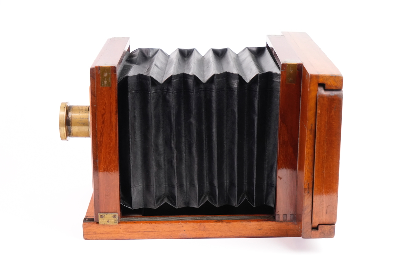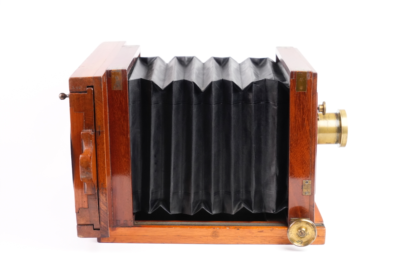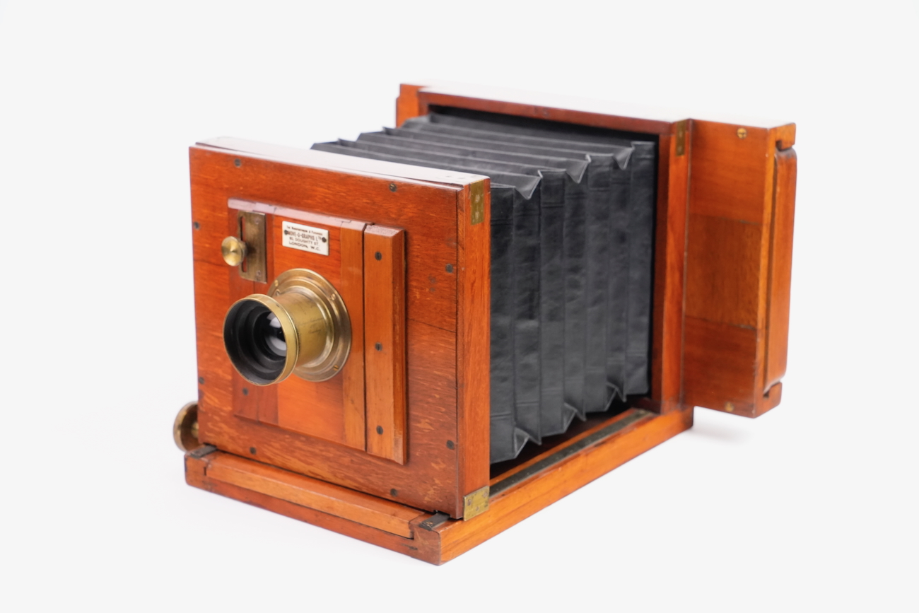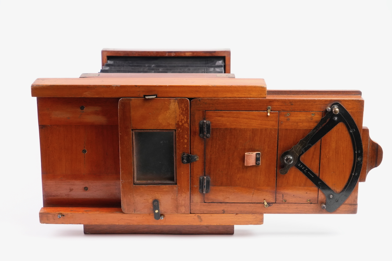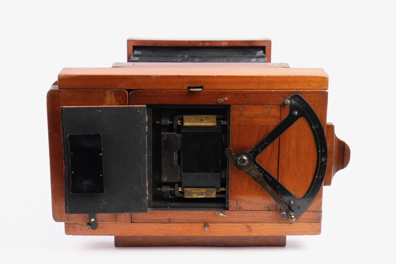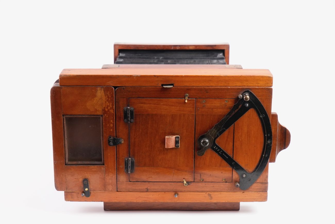 Appareil anglais de la société Move-O-Graph Ltd, établie au 60 Doughty Street, Londres. Cette chambre permet la prise de photographies donnant à voir plusieurs images consécutives, donnant une impression de mouvement lors du visionnage : "the live portrait" précisent les cartons. Les images sont réalisées à l'aide de trames, de sorte que lorsque l'on appuie alternativement sur les emplacements indiqués au dos du carton de montage, différentes expressions apparaissent, donnant un effet d'animation. La chambre jouit d'une construction en acajou et d'une finition soignée. Un dos coulissant permet la réalisation de trois clichés à la suite. Le soufflet en cuir est en bel état. L'objectif est un Dallmeyer stigmatic N°4 (série II).