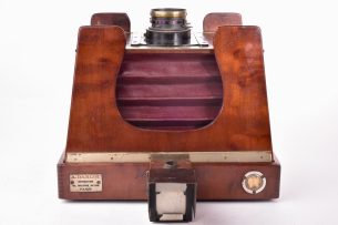 Chambre coffret format 13x18 cm. Construction en acajou avec soufflet en cuir bordeaux quadrillé. La (...)Ce produit m'intéresse -