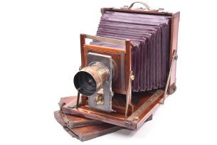 Chambre photographique anonyme extra-plate. Format 13x18. Belle ébénisterie en bois ciré. Soufflet pyramidal en cuir (...)Ce produit m'intéresse -