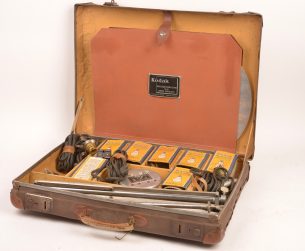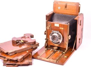 Cette grande chambre photographique à tiroir pleine plaque est proposée avec son pied d’atelier. Construction (...)Ce produit m'intéresse -