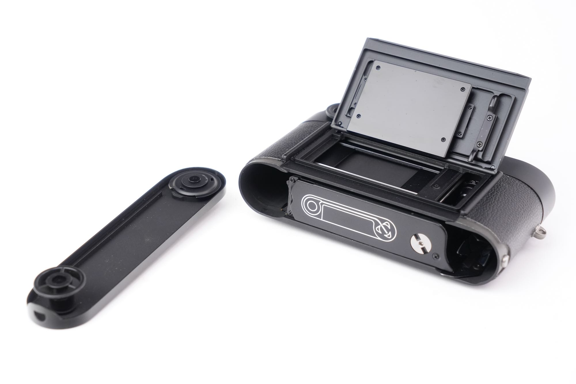 Le Leica M-A (type 127) est un appareil entièrement mécanique, sans cellule, de fabrication récente. Il possède six cadres de visée (28-90mm, 35-135mm, 50-75mm) et un viseur à grossissement 0,72x. Ce Leica M-A noir porte le numéro de série : 4914437. Bon état, comporte de très légers signes d'utilisation. Vient avec son bouchon de boîtier et de prise synchro flash. Appareil controlé. Viseur clair et vitesses justes.