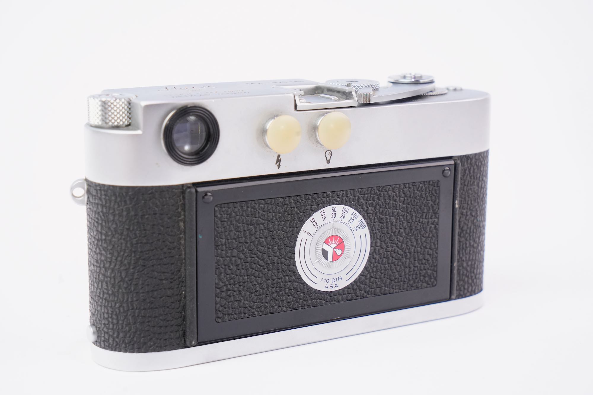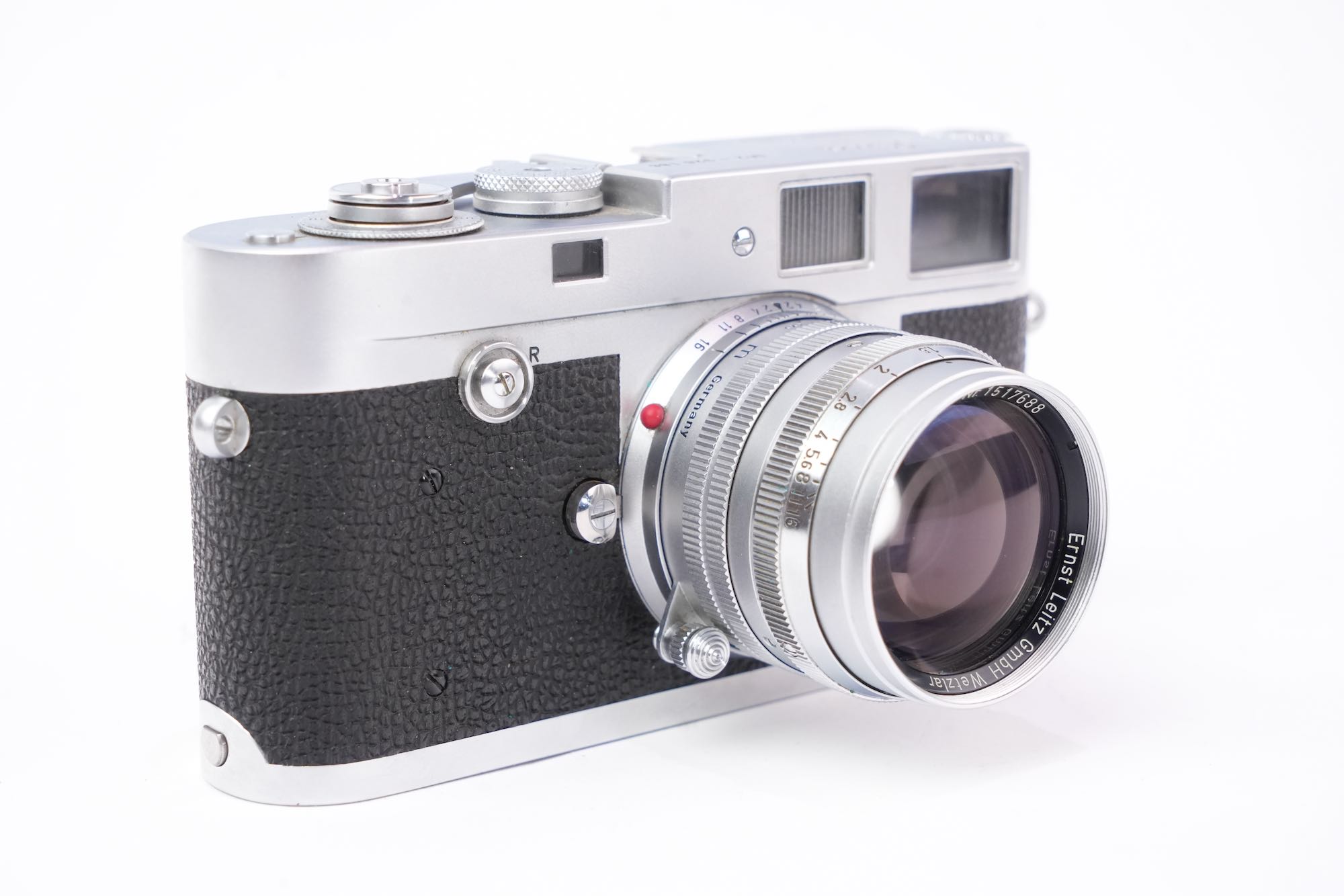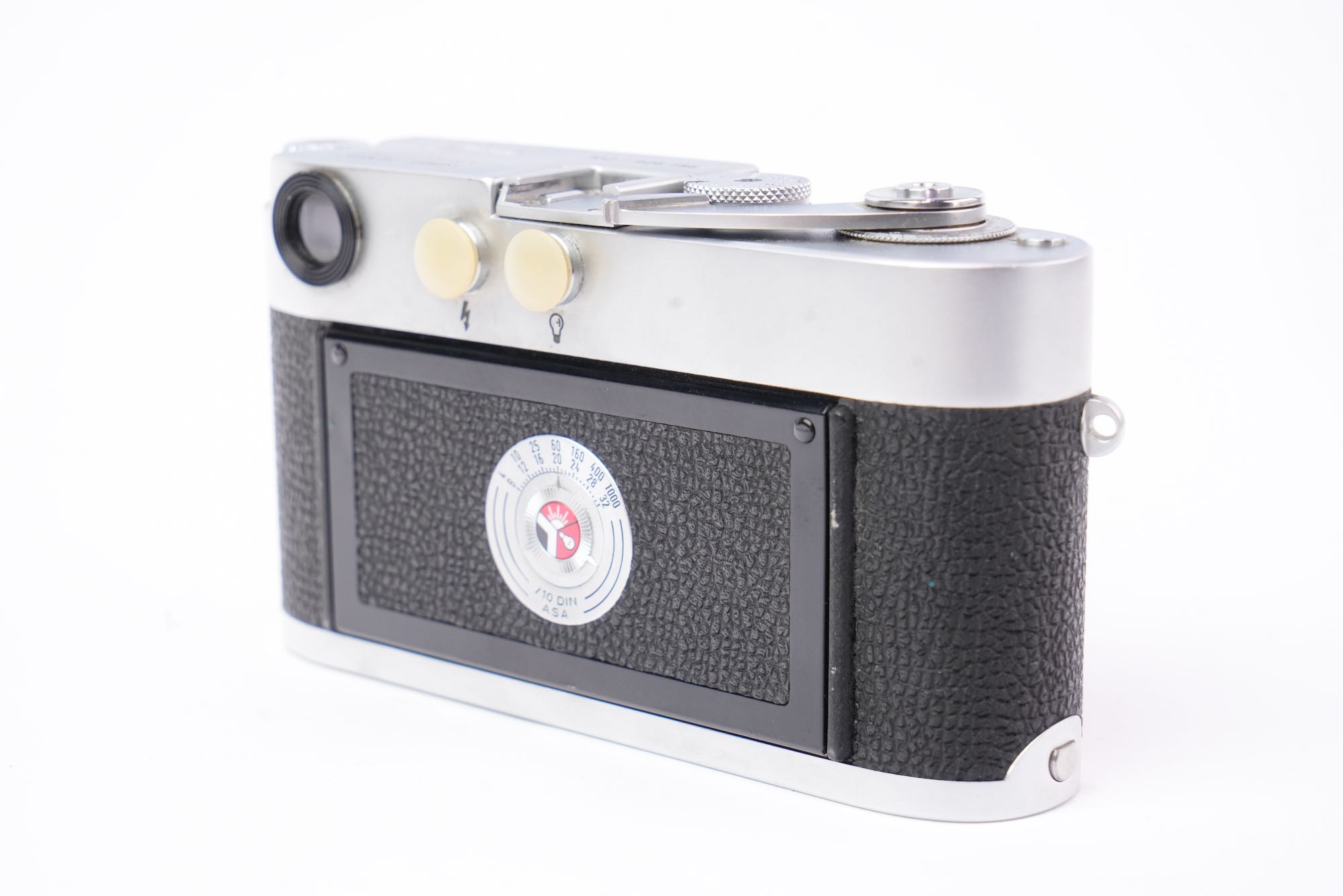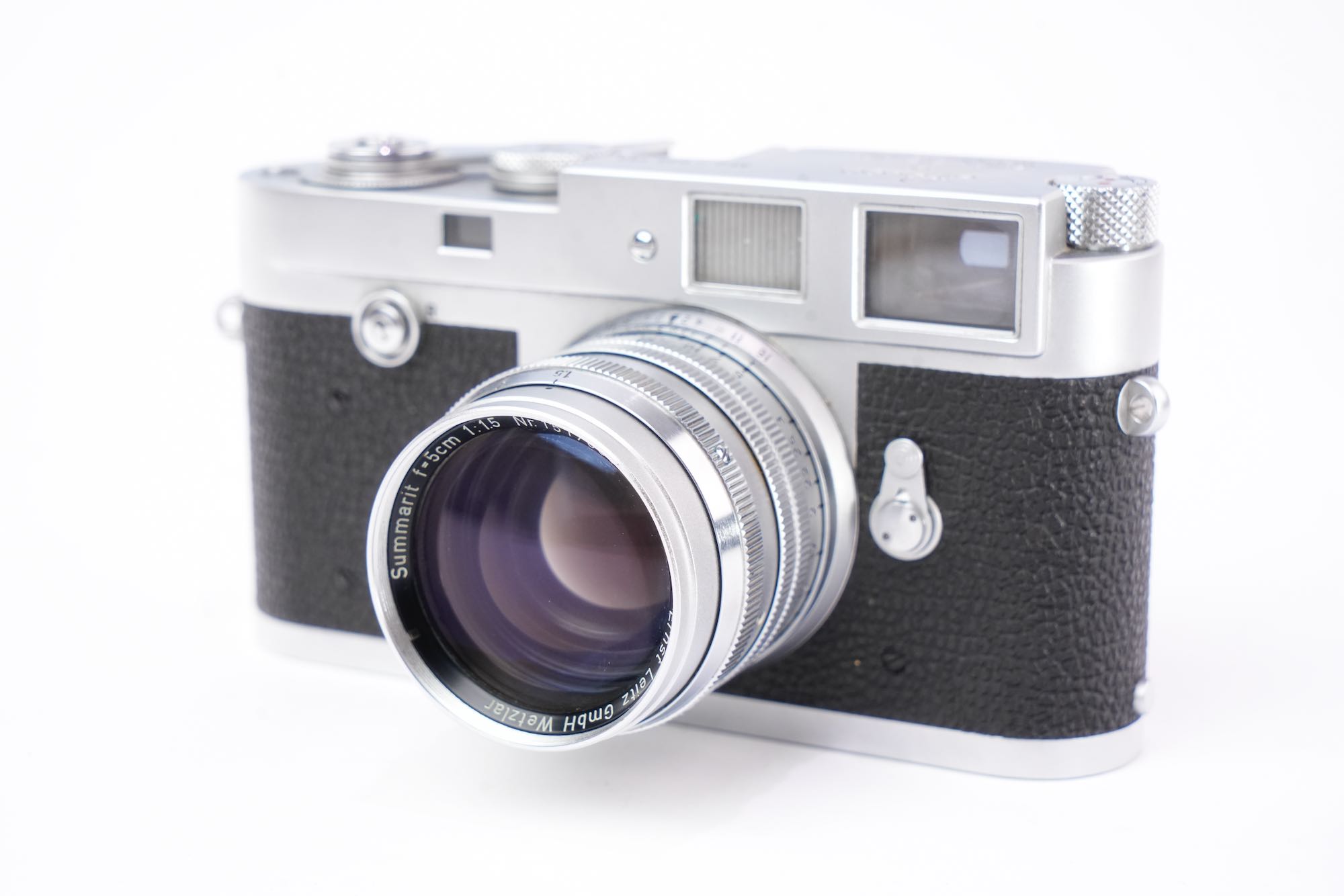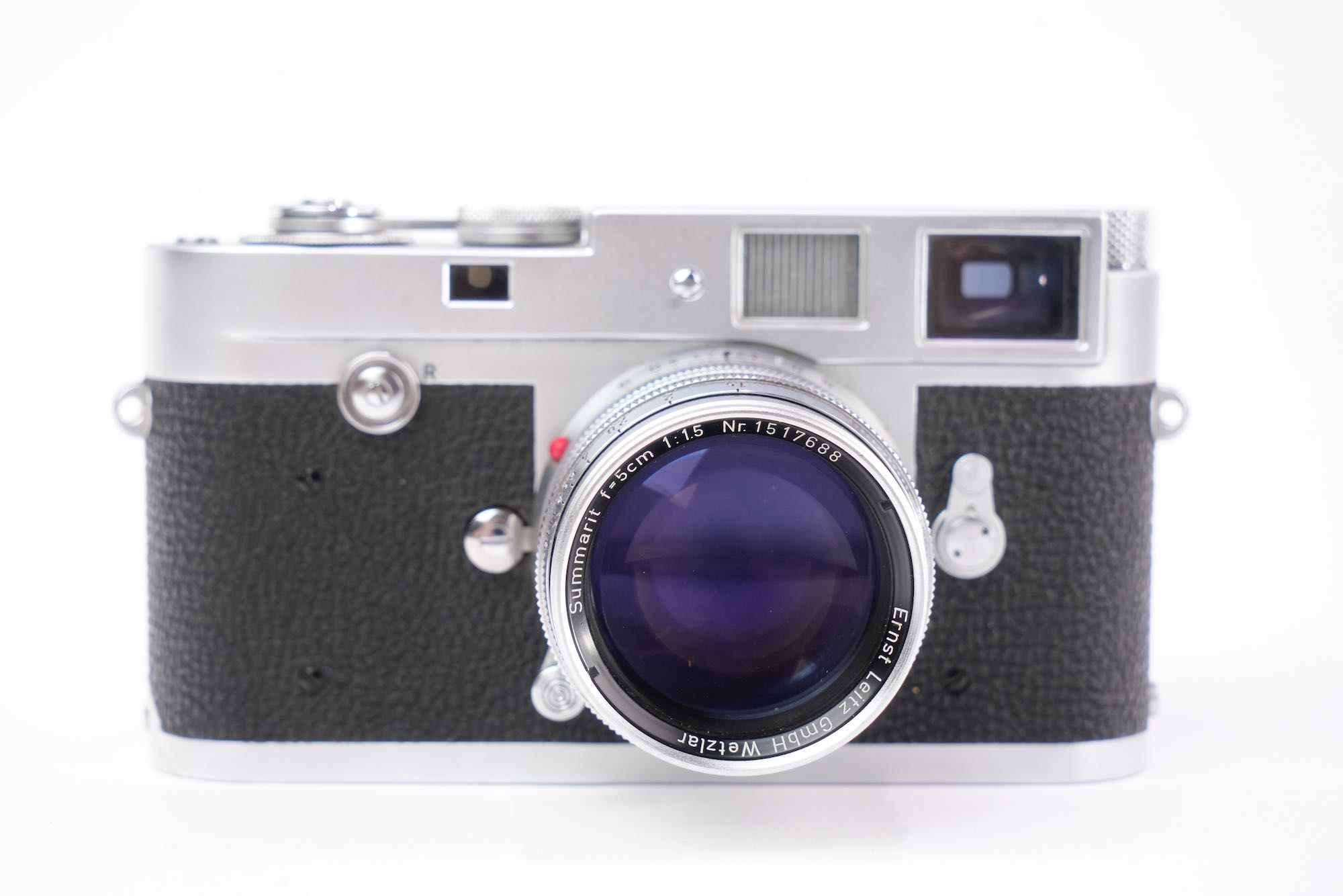 <div class="available-middle-text">Appareil à télémètre allemand produit durant neuf ans, de 1957 à 1967. Le Leica M2 est une version plus épurée du M3. Cet appareil était proposé à moindre coût que le reste de la gamme. Il comporte les cadres pour le 35mm, le 50mm et le 90mm. Les rideaux sont en bon état, les vitesses sont justes, le télémètre est contrasté. Nous relevons le fait que le premier rideau tarde à se retirer de la fenêtre de prise de vue lors du déclenchement. Ceci a pour effet de sous-exposer considérablement une partie du film (environ 1/5e) situé à droite de la fenêtre. L'avancement du film, l'armement et déclenchement de l'obturateur se font sans encombre. Quelques signes d'utilisation sur le boîtier. Numéro de série 926186. Il s'agit du 186e modèle de M2 produit. L'appareil photo vient avec un objectif Summarit 50mm f/1.5. Mise au point et commande de diaphragme fluides. On note la présence importante de brume vers l'arrière de l'objectif mais pas de traces de champignon, de décollement ou de rayures.</div>