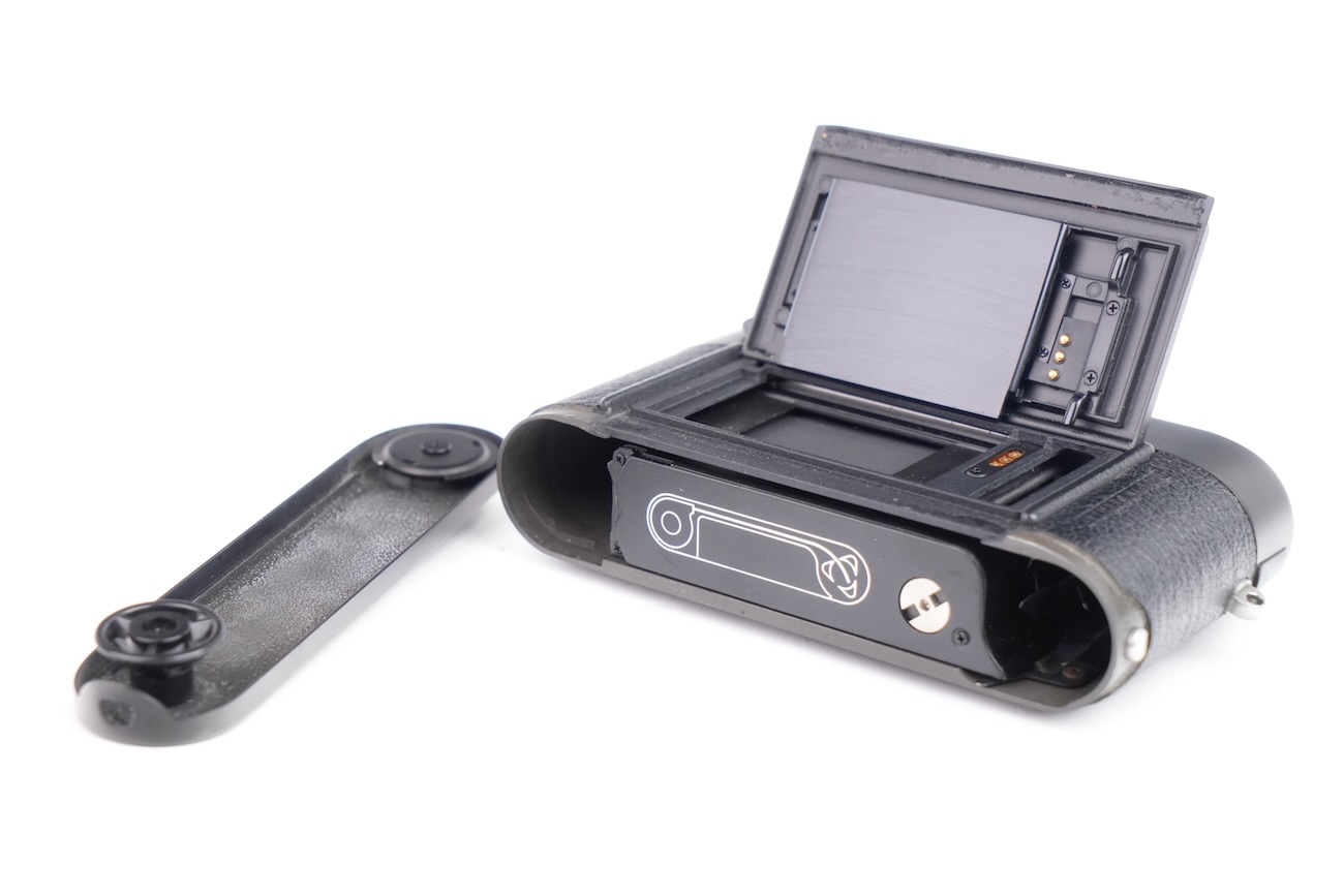 Appareil à télémètre. Boîtier seul. On note quelques traces d'usure sur l'extérieur de l'appareil. Le logo au point rouge, ainsi que le titre en façade sont en partie effacés. Mécaniquement, rien à signaler. L'appareil s'arme et déclenche correctement. L'obturateur fonctionne, les vitesses semblent justes. La cellule fonctionne (avec x2 piles LR44) tout comme le dos qui contrôle les ISO. Le télémètre est contrasté. Numéro 1779610. Vient avec son bouchon de boîtier. Date de 1990.