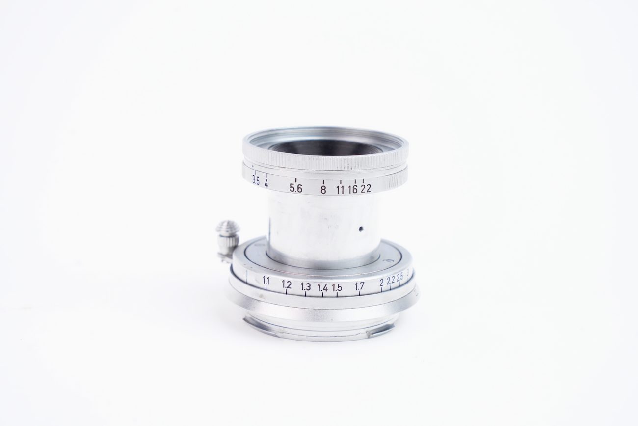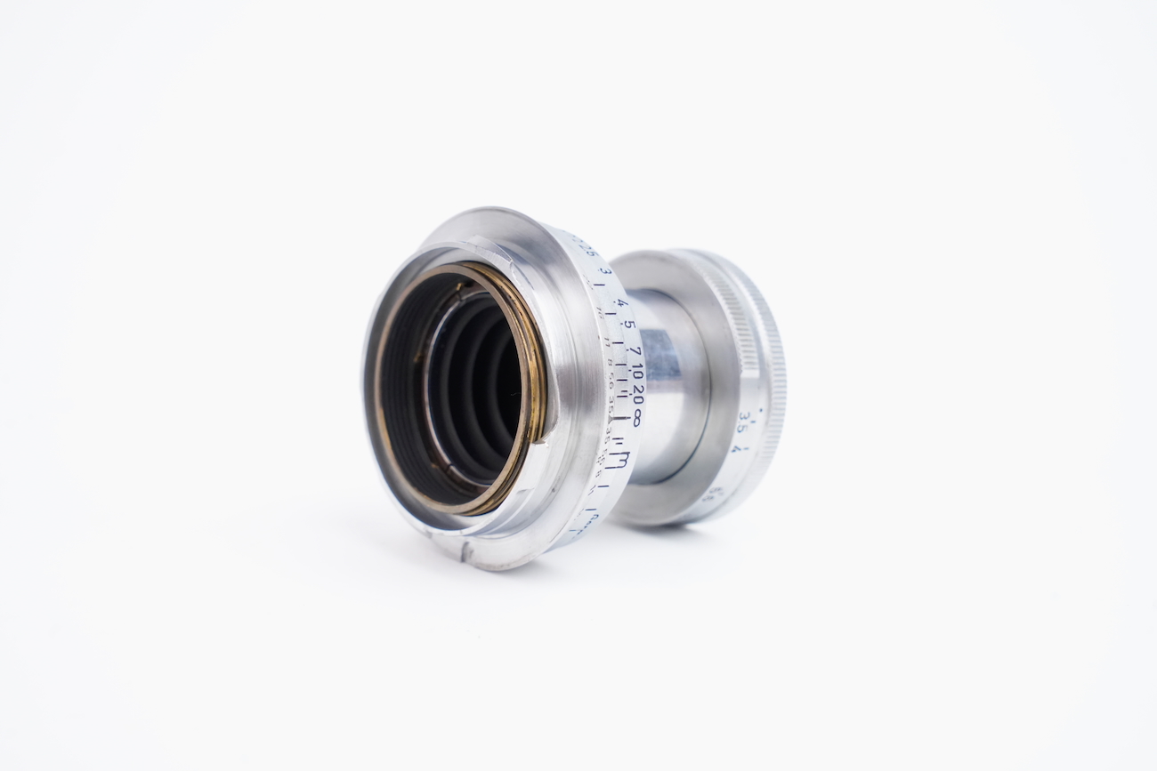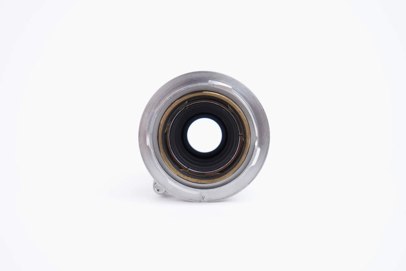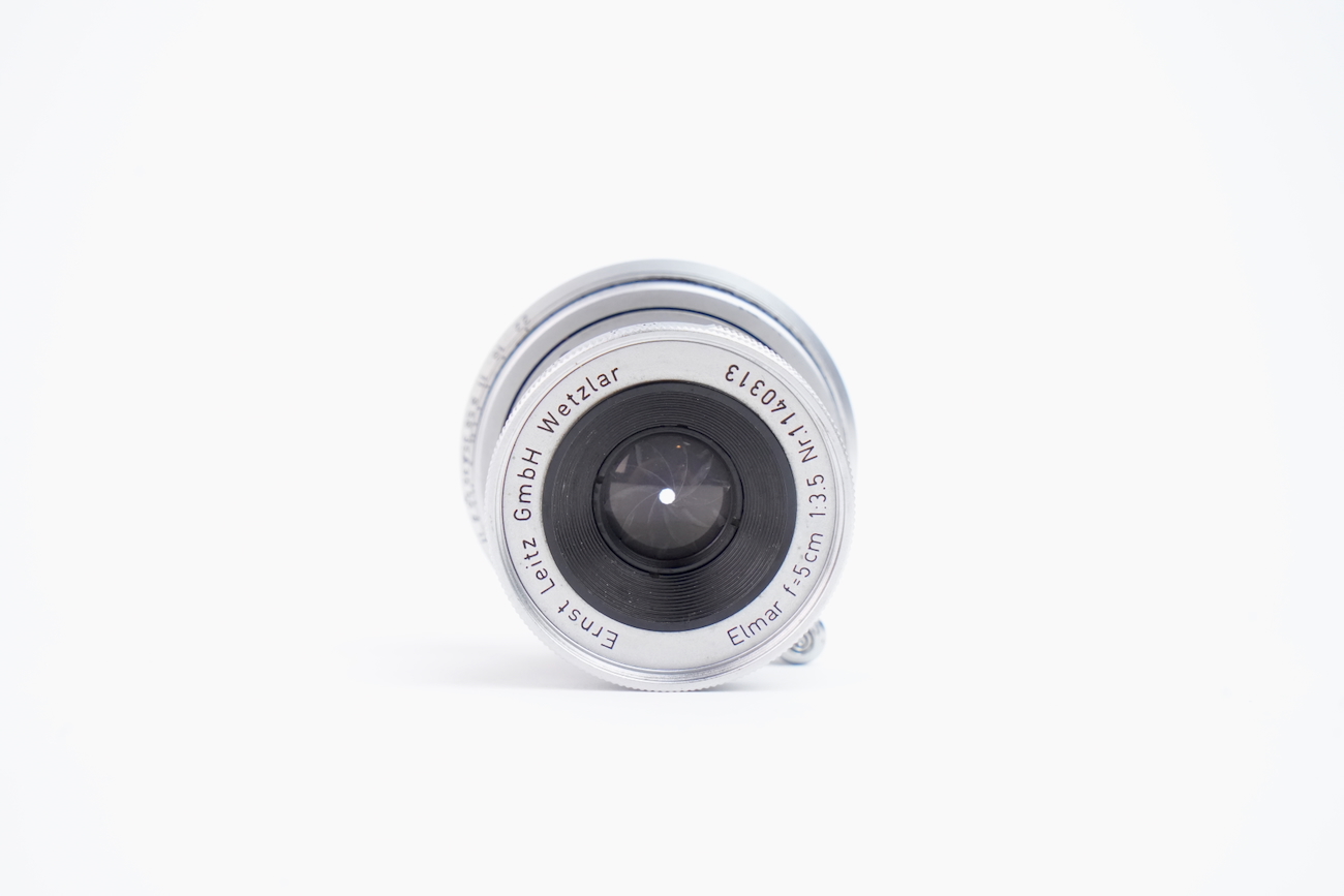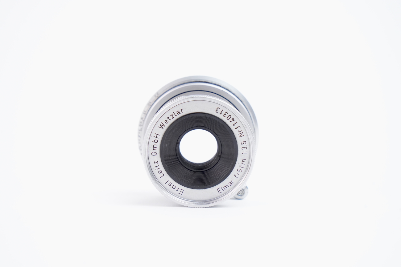 Il s'agit de la première version du Elmar 50/3.5 en monture M qui venait avec le Leica M3 lancé en 1954. État mécanique correct, état optique moyen. Les lentilles ne présentent pas de champignon, pas de décollement et pas de rayure. Par contre, on note la présence de brume et de traces. Numéro 1140313 de 1954.