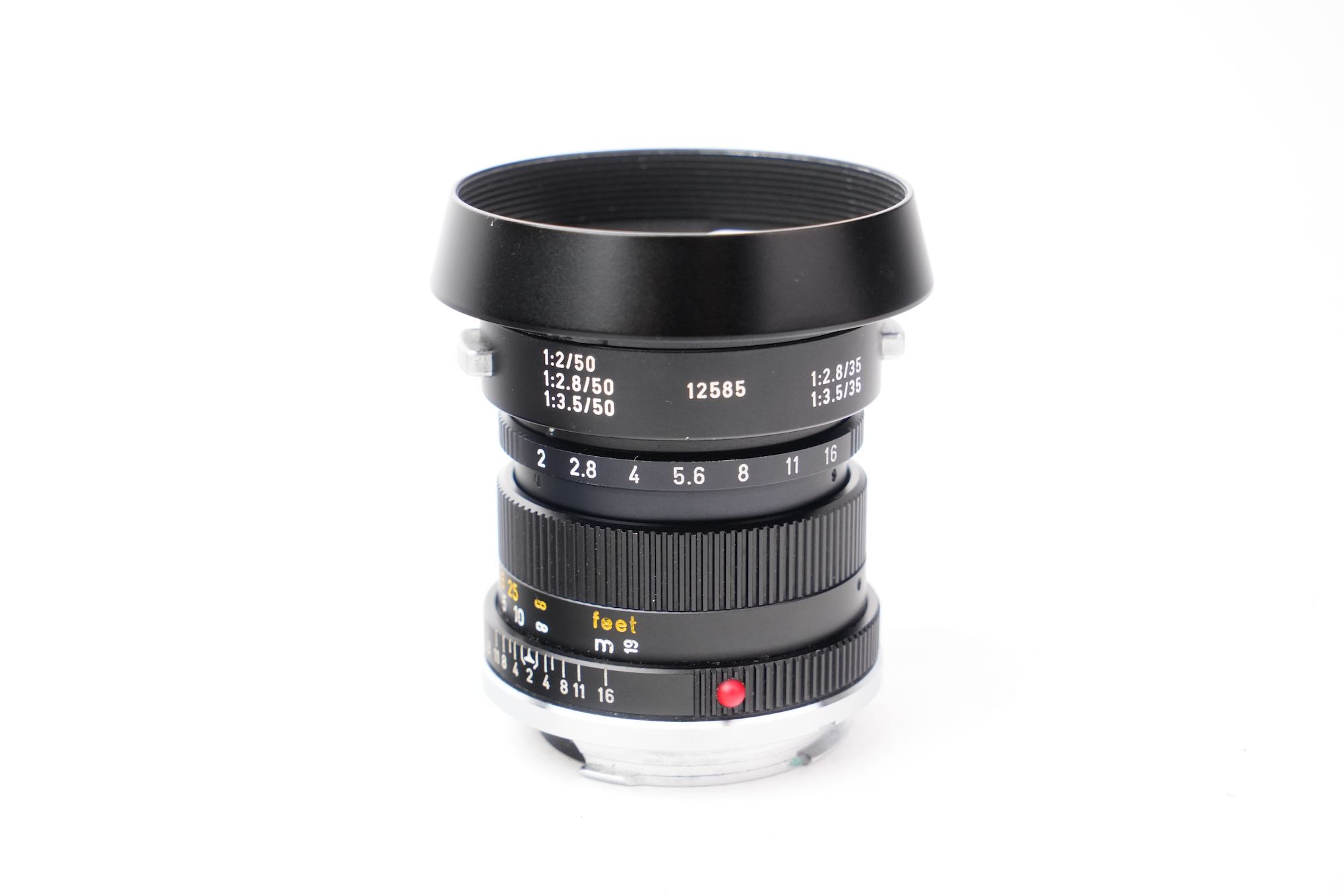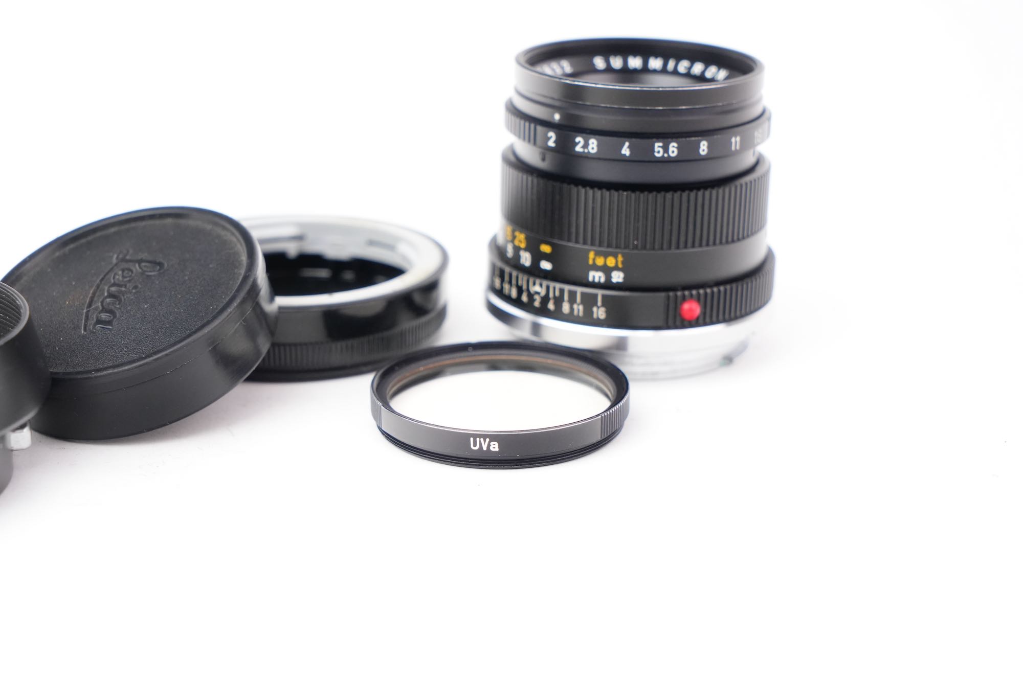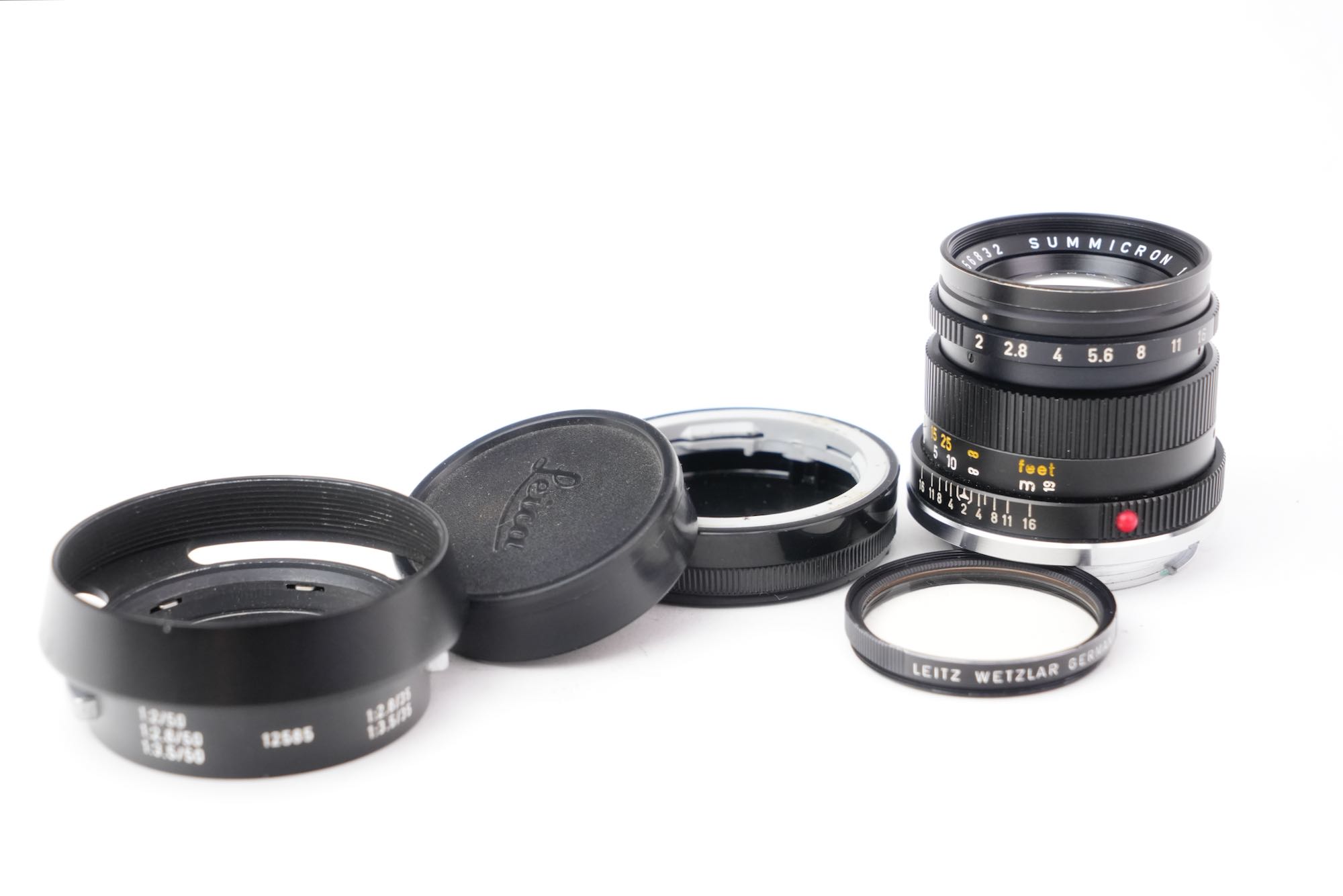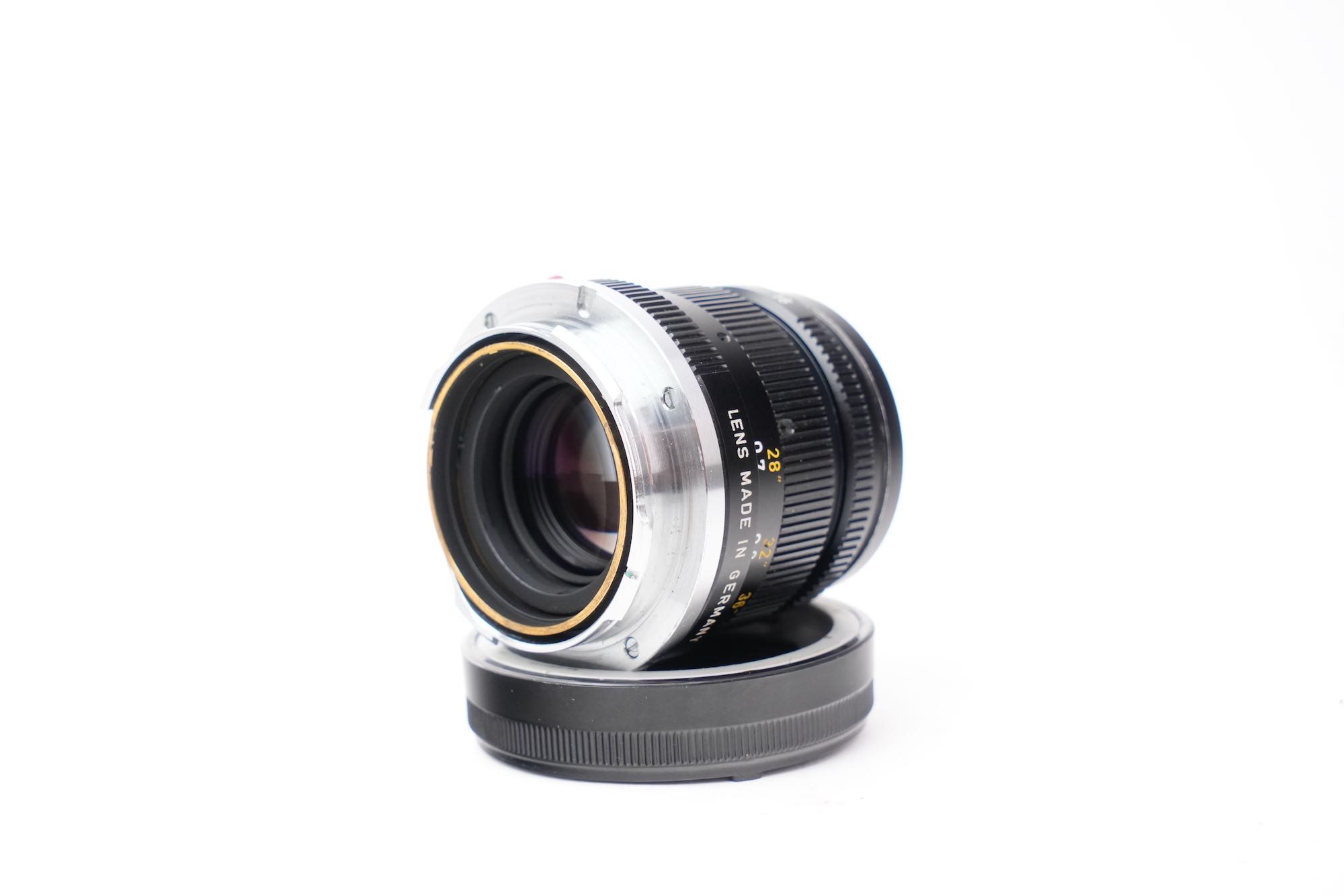 <div class="available-middle-text">Objectif du fabricant allemand Leitz en monture Leica M. La focale est de 50mm et le diaphragme ouvre à f/2. Les lentilles sont en bon état, pas de décollement, pas de champignon, quelques poussières. On note également la présence d'une légère brume. Les bagues de diaphragme et de mise au point sont fluides. Vient avec son bouchon avant, arrière, un filtre UVa ainsi que son pare-soleil. Bon état avec de légers signes d'utilisation. Numéro 2756832.</div>