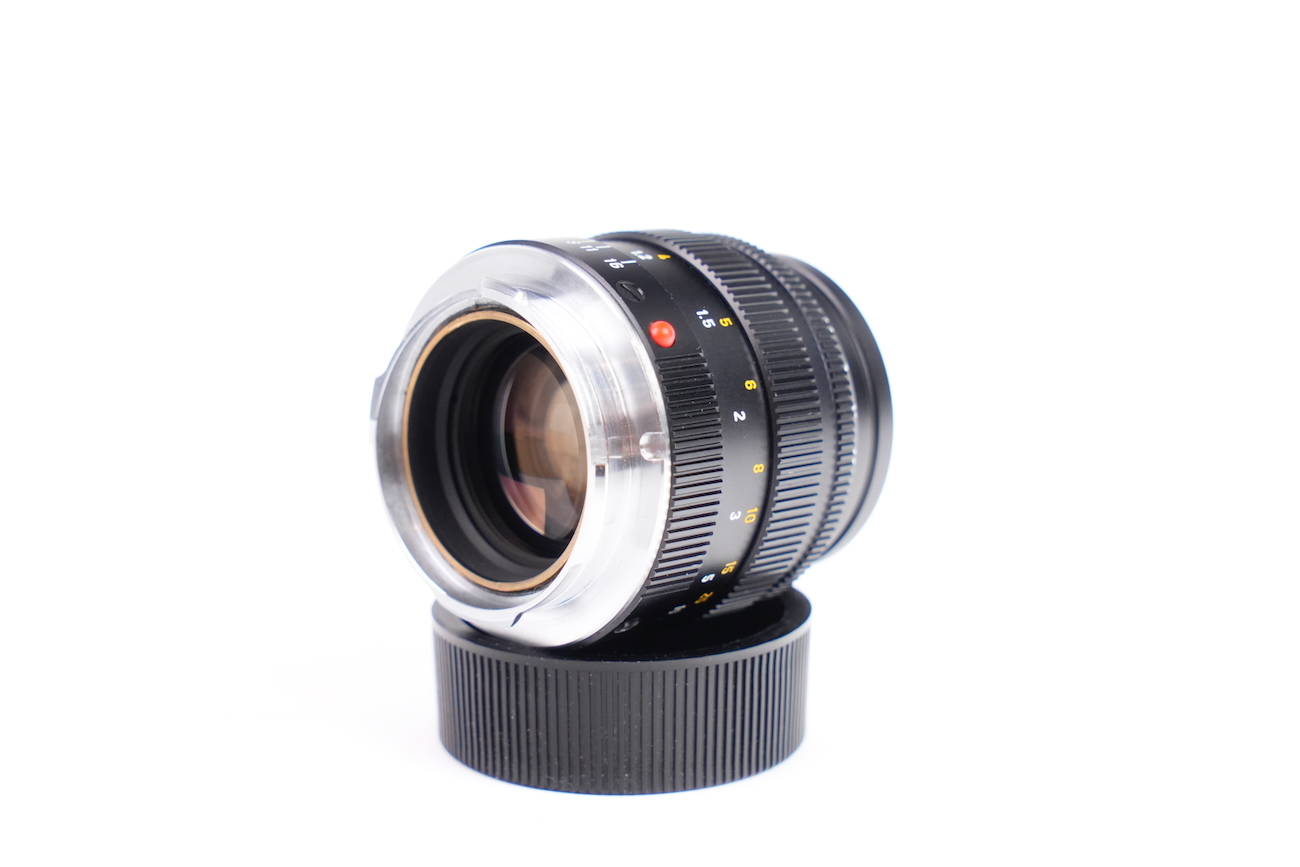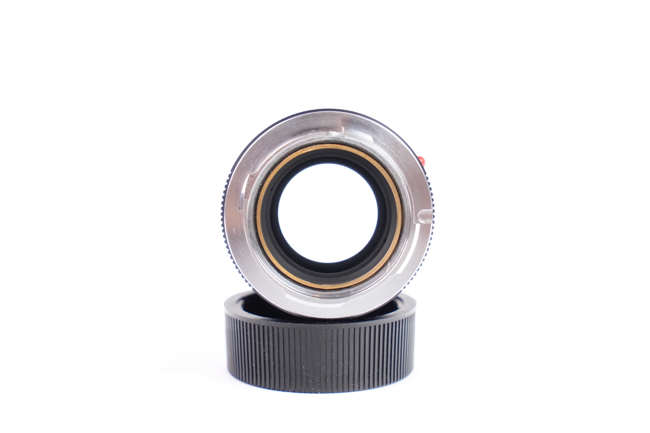 Objectif pour Leica, monture M. État cosmétique et mécanique bon. Bague de diaphragme fluide. La mise au point est moins fluide. Lentilles propres, sans brume, champignon, rayure ou séparation. N° 3416528. Vient avec ses bouchons avant et arrière ainsi que son étui en cuir. Date de 1986, ce qui nous comporte dans le fait que ce modèle est la deuxième version du "roi des portraits". Il s'agit de la version pre-ASPH.