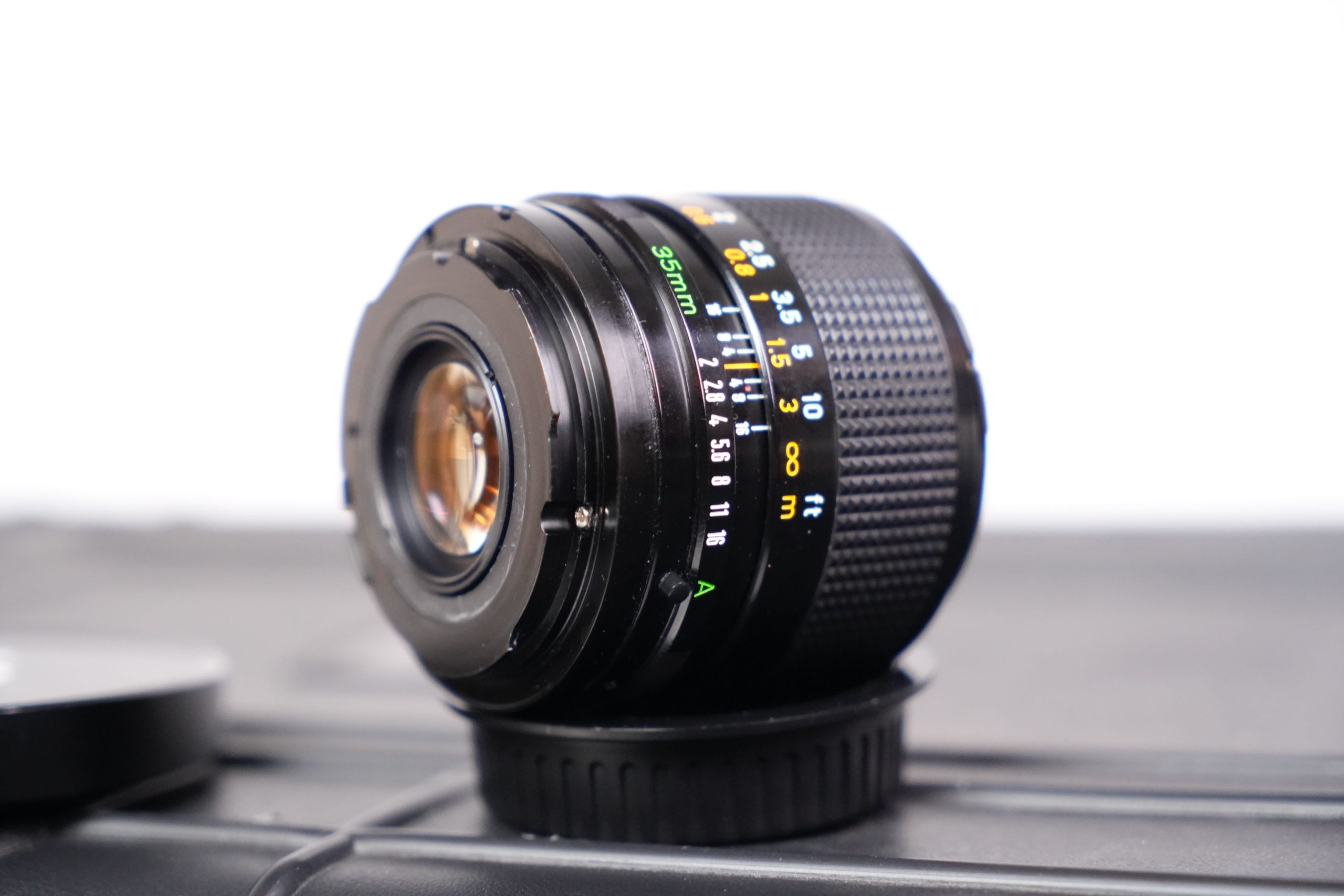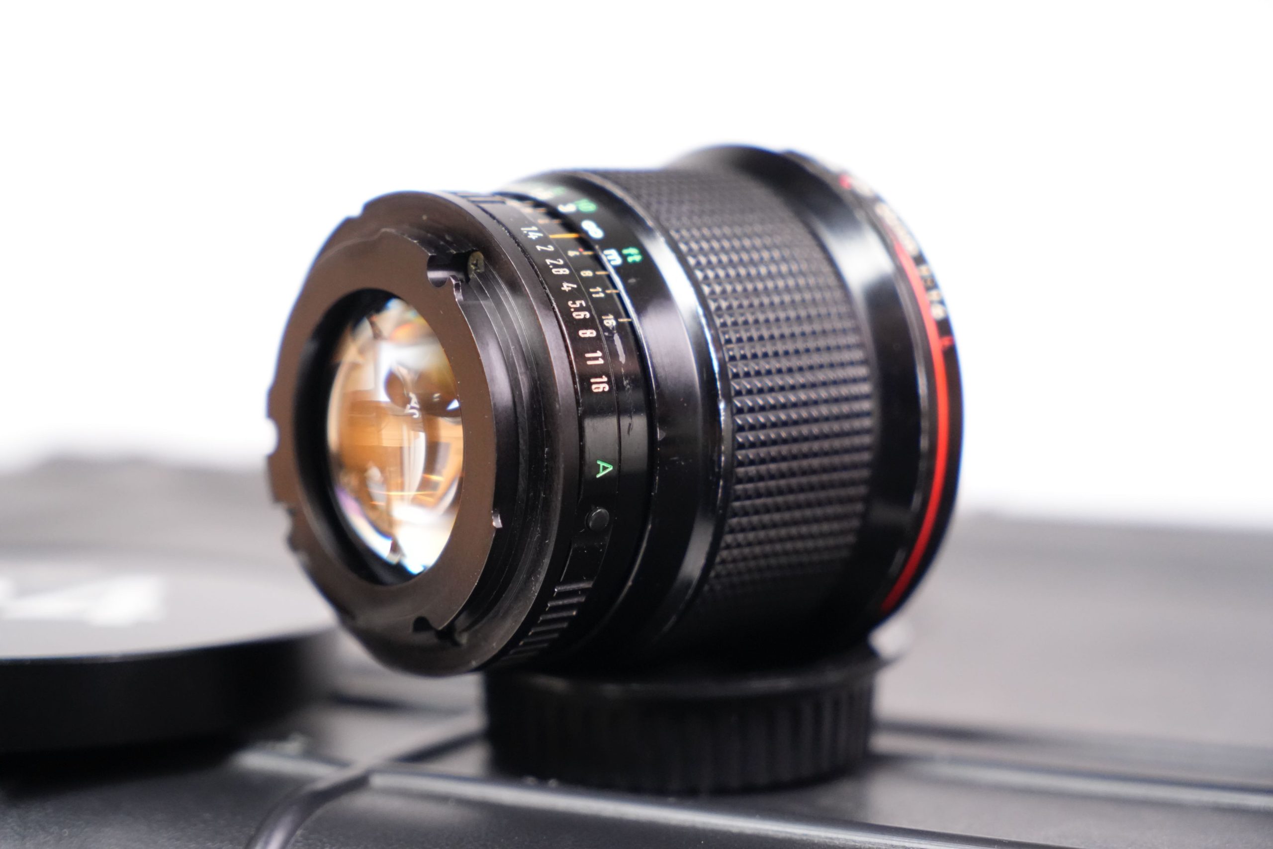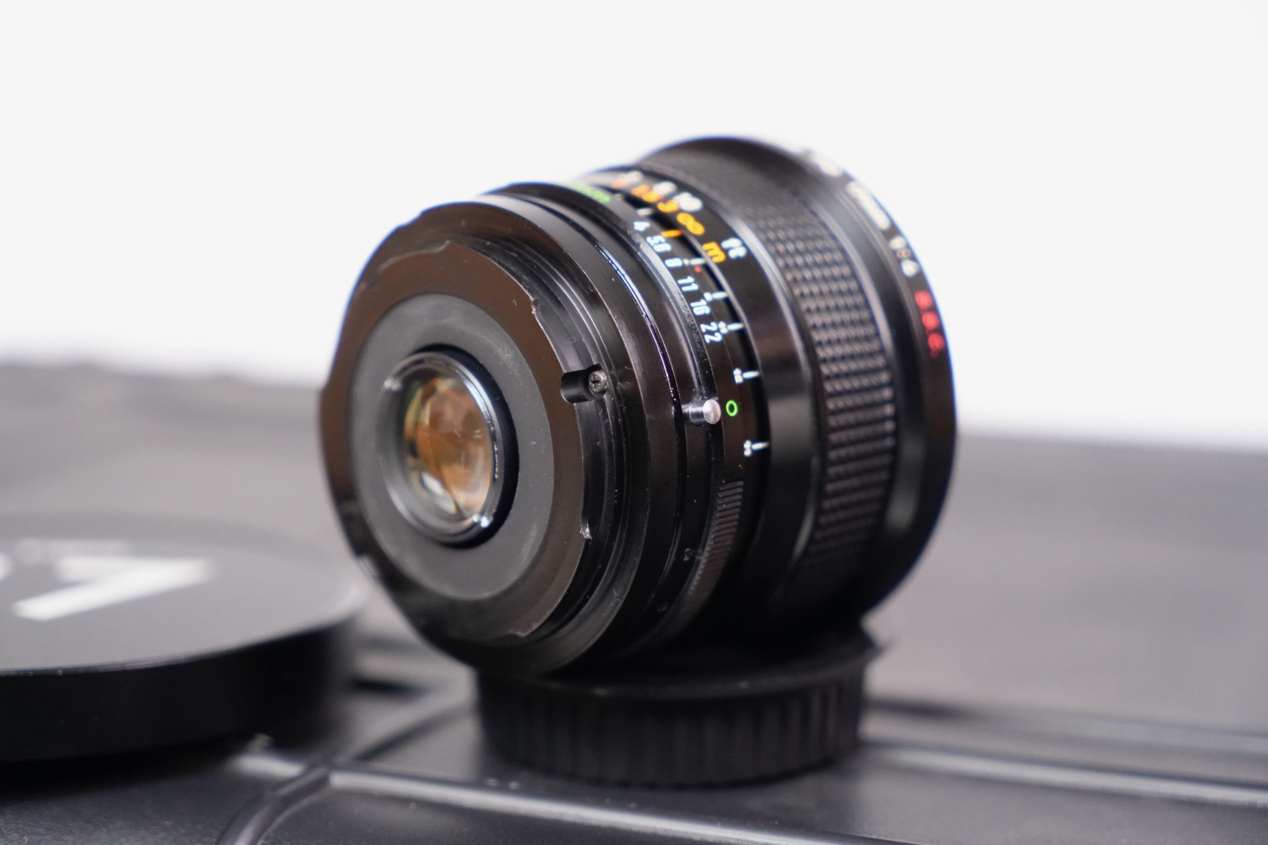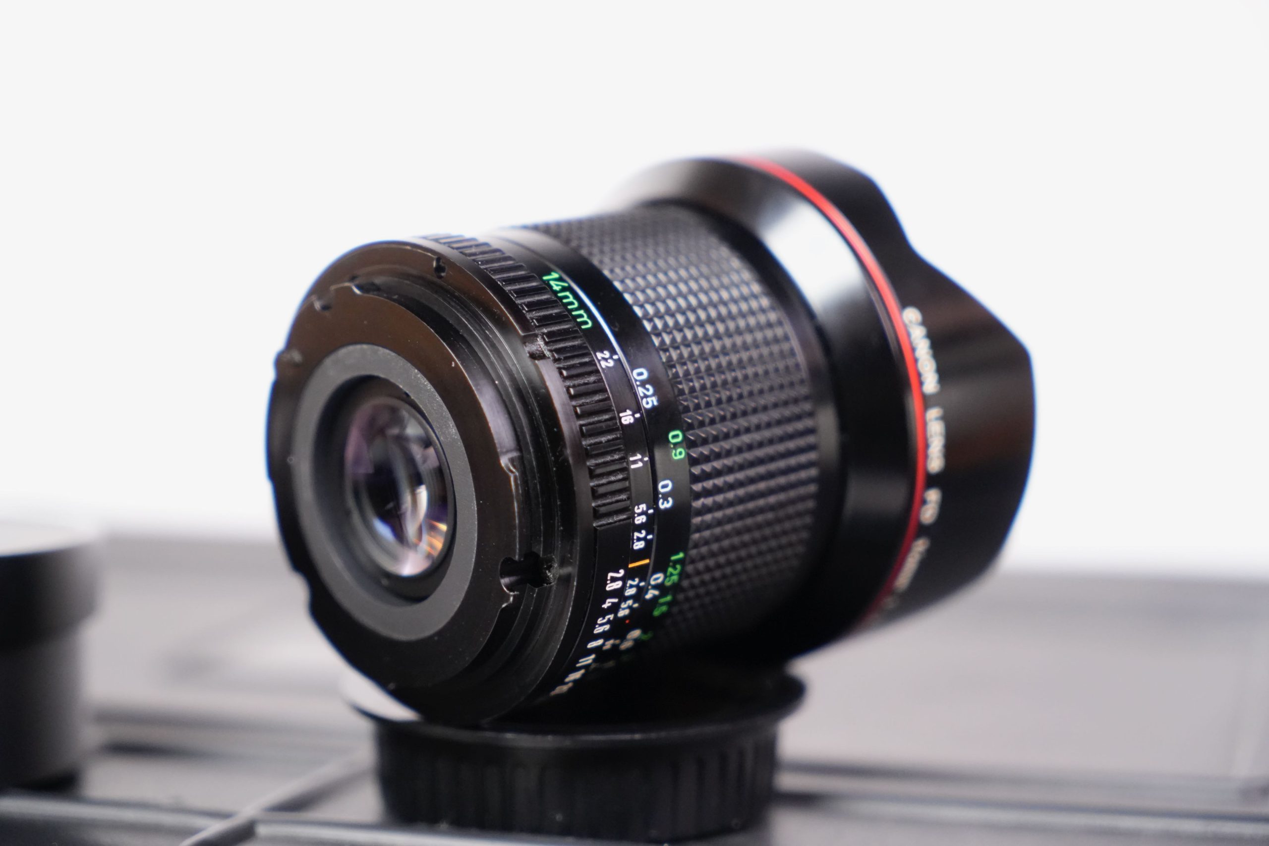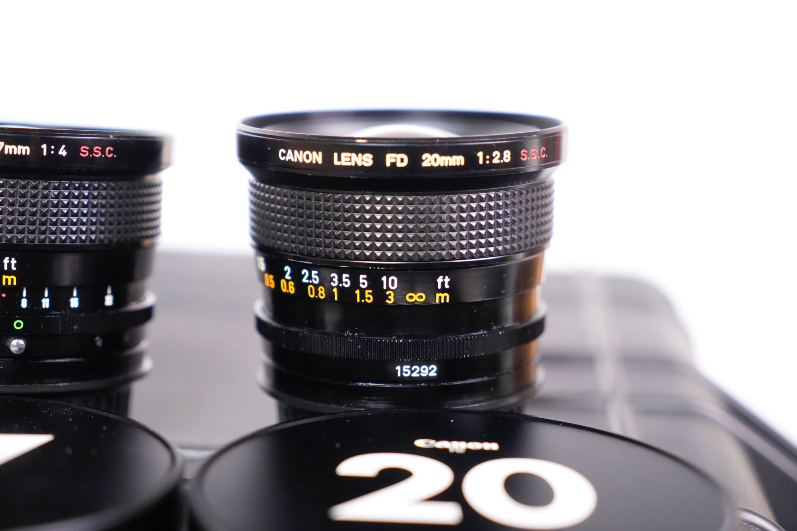 <p data-start="273" data-end="752">Cet ensemble se compose de huit objectifs fixes Canon FD fabriqués entre les années 1970 et 1980. Il comprend  Canon 7.5 mm f/5.6 Fisheye S.S.C,  Canon 14 mm f/2.8 nFD,  Canon 15 mm f/2.8 Fisheye S.S.C,  Canon 17 mm f/4 S.S.C, un Canon 20 mm f/2.8 S.S.C,  Canon 24 mm f/1.4 nFD,  Canon 28 F2 S.S.C, Canon 35 mm f/2 S.S.C et un Canon 55 mm f/1.2 S.S.C. Tous sont présentés dans un coffret rigide moderne, équipés de capuchons signalant clairement leurs focales et ouvertures maximales. À l’origine, ces objectifs appartenaient à la prestigieuse gamme Canon FD, produite entre 1971 et 1992 et destinée aux reflex argentiques 24×36 de la marque. Les versions S.S.C. (Super Spectra Coating) bénéficiaient d’un traitement multicouche avancé qui améliorait le contraste et limitait les reflets parasites. Ils représentent une étape clé dans l’histoire de l’optique photographique japonaise. L’ensemble présenté a été profondément modifié pour répondre aux standards actuels du cinéma numérique. Les montures FD d’origine ont été remplacées par des montures EF cinéma, plus robustes et compatibles avec un large éventail de caméras professionnelles (Canon EOS Cinema, RED, Blackmagic Design, etc.). Contrairement aux simples adaptateurs, cette conversion assure une fixation mécanique fiable, un respect parfait du tirage optique (flange distance) et une durabilité accrue en conditions de tournage. De plus, les bagues de diaphragme ont été décliquer, permettant un réglage continu et fluide de l’ouverture, sans les crans classiques des objectifs photographiques. Cette modification est essentielle en production audiovisuelle, car elle offre une maîtrise progressive de l’exposition et un rendu plus cinématographique lors des transitions de lumière. Ainsi, ces optiques historiques trouvent une nouvelle vie dans l’univers du cinéma moderne. Elles sont recherchées pour leur rendu unique, offrant une image au contraste doux, des flares caractéristiques et une esthétique organique, contrastant avec la netteté et la neutralité des optiques contemporaines. L’alliance d’une conception des années 1970 avec des montures et adaptations modernes illustre le dialogue entre héritage photographique et innovation cinématographique</p>