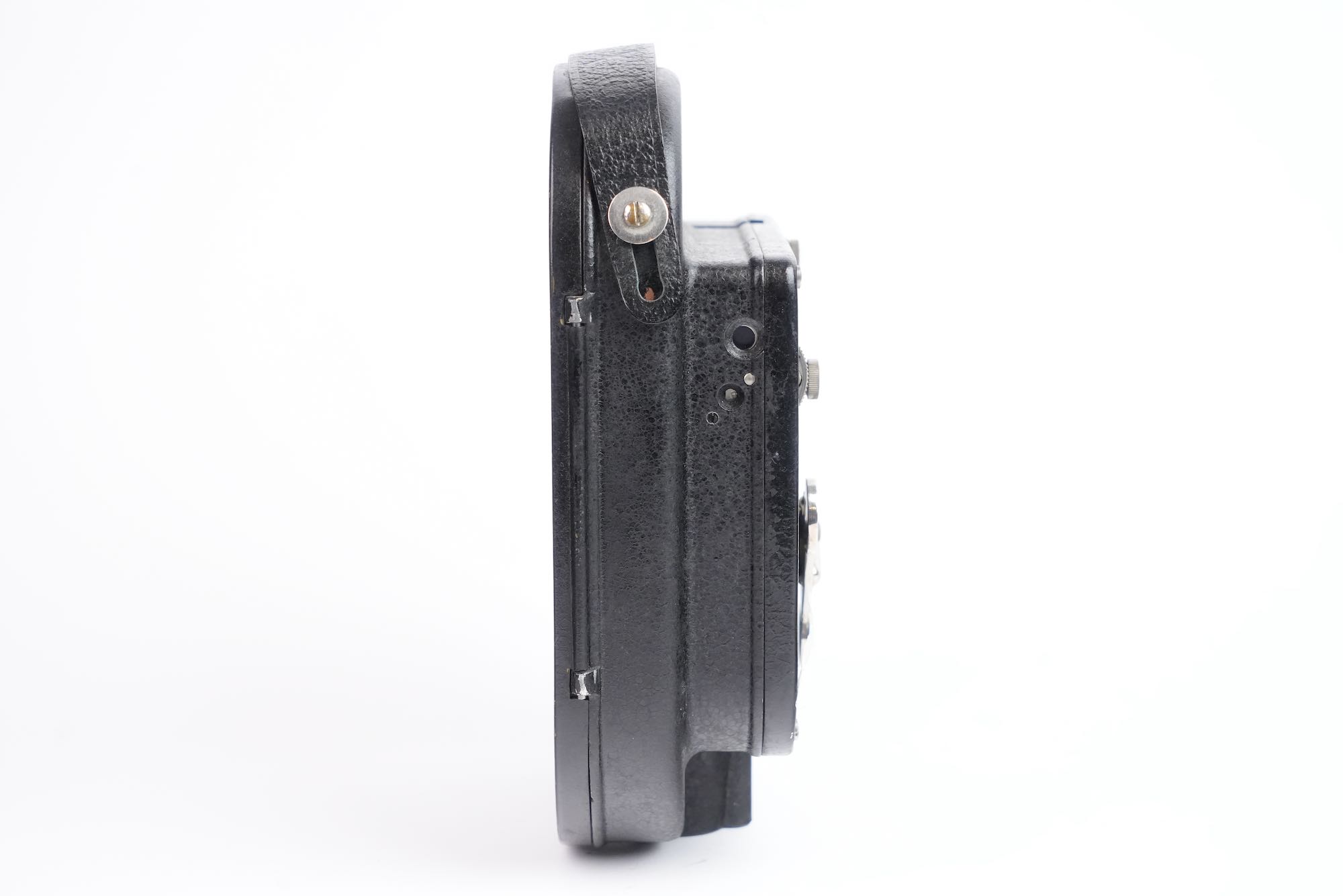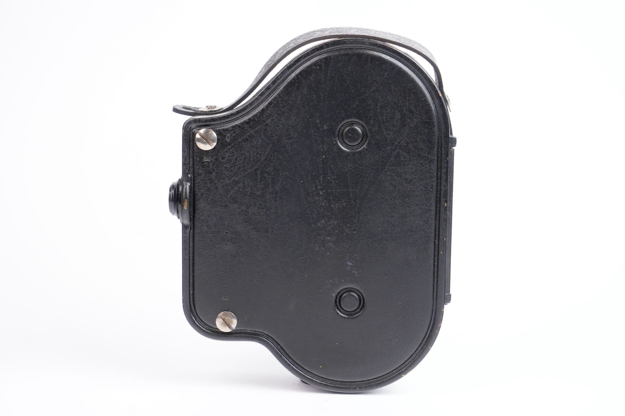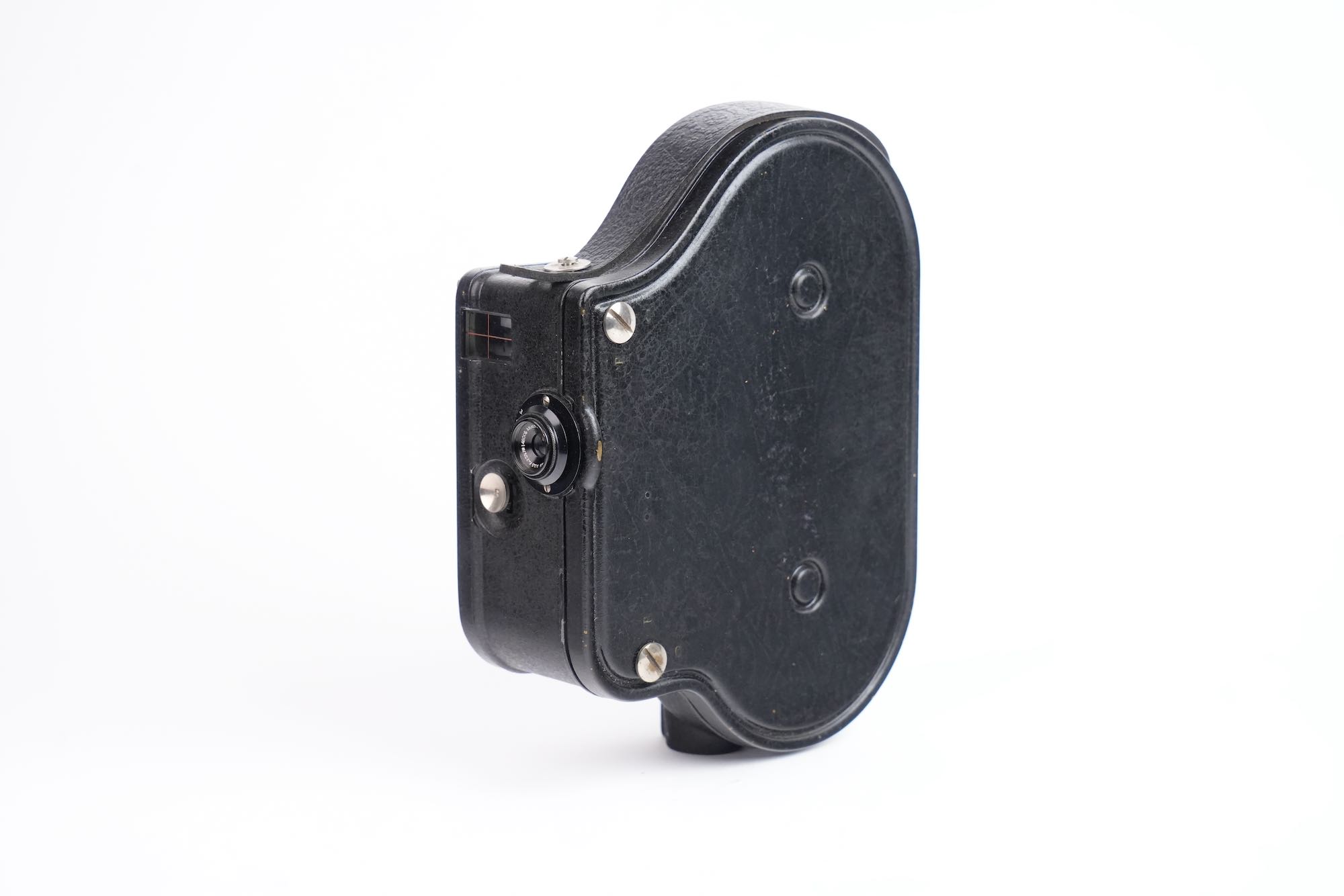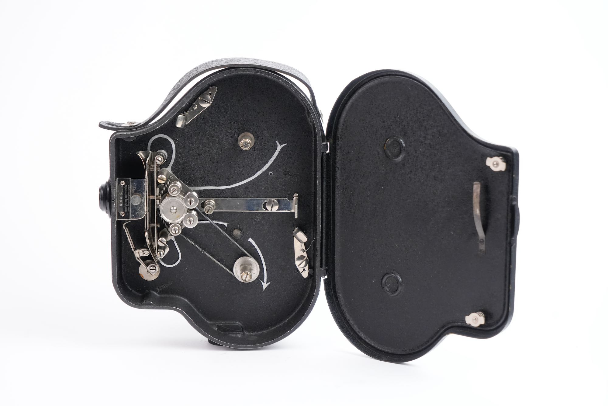 Bolex, Auto Ciné B, Suisse, 1929. Deuxième modèle de caméra cinématographique 16 mm développé par Jacques Bogopolsky, l’Auto Ciné B prolonge et améliore les principes établis par l’Auto Ciné A, tout en affirmant l’identité technique et formelle de la marque BOLEX
