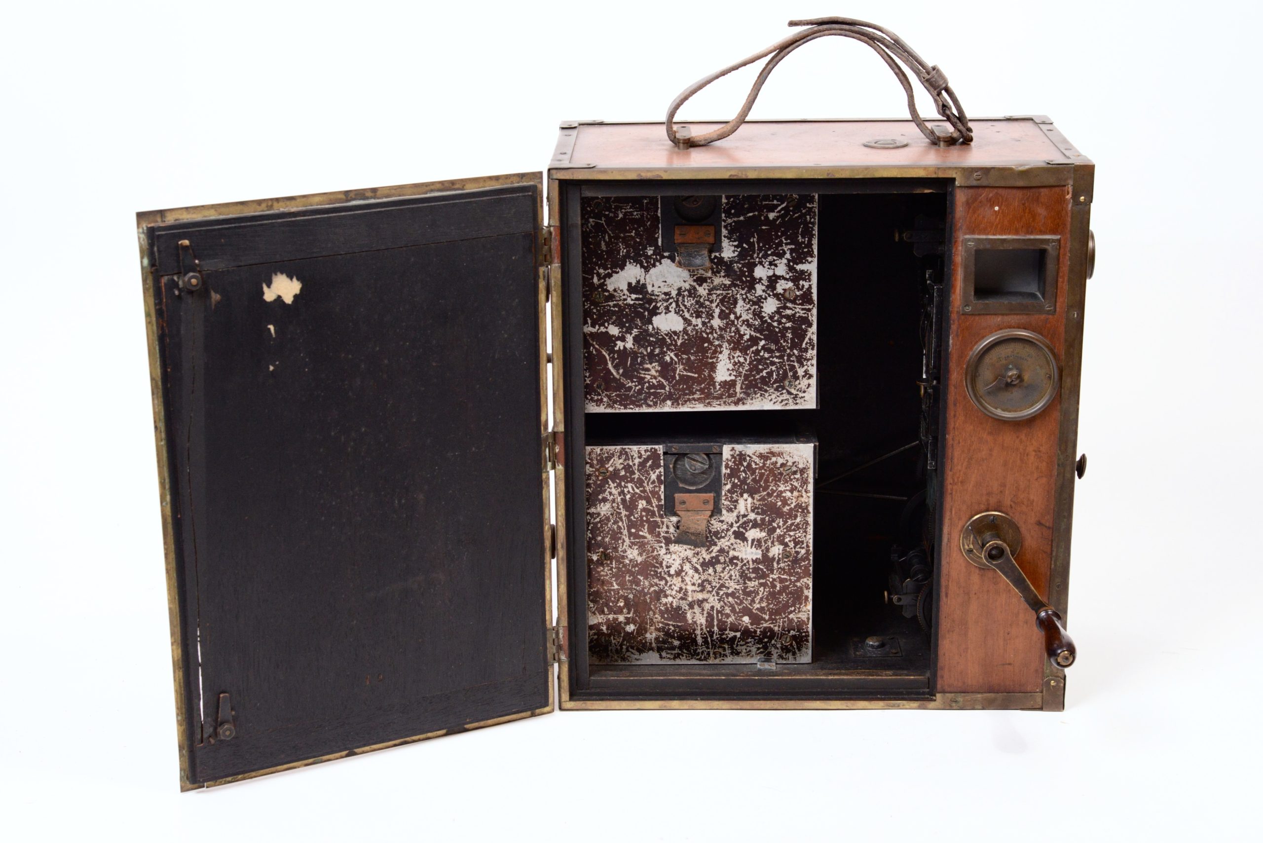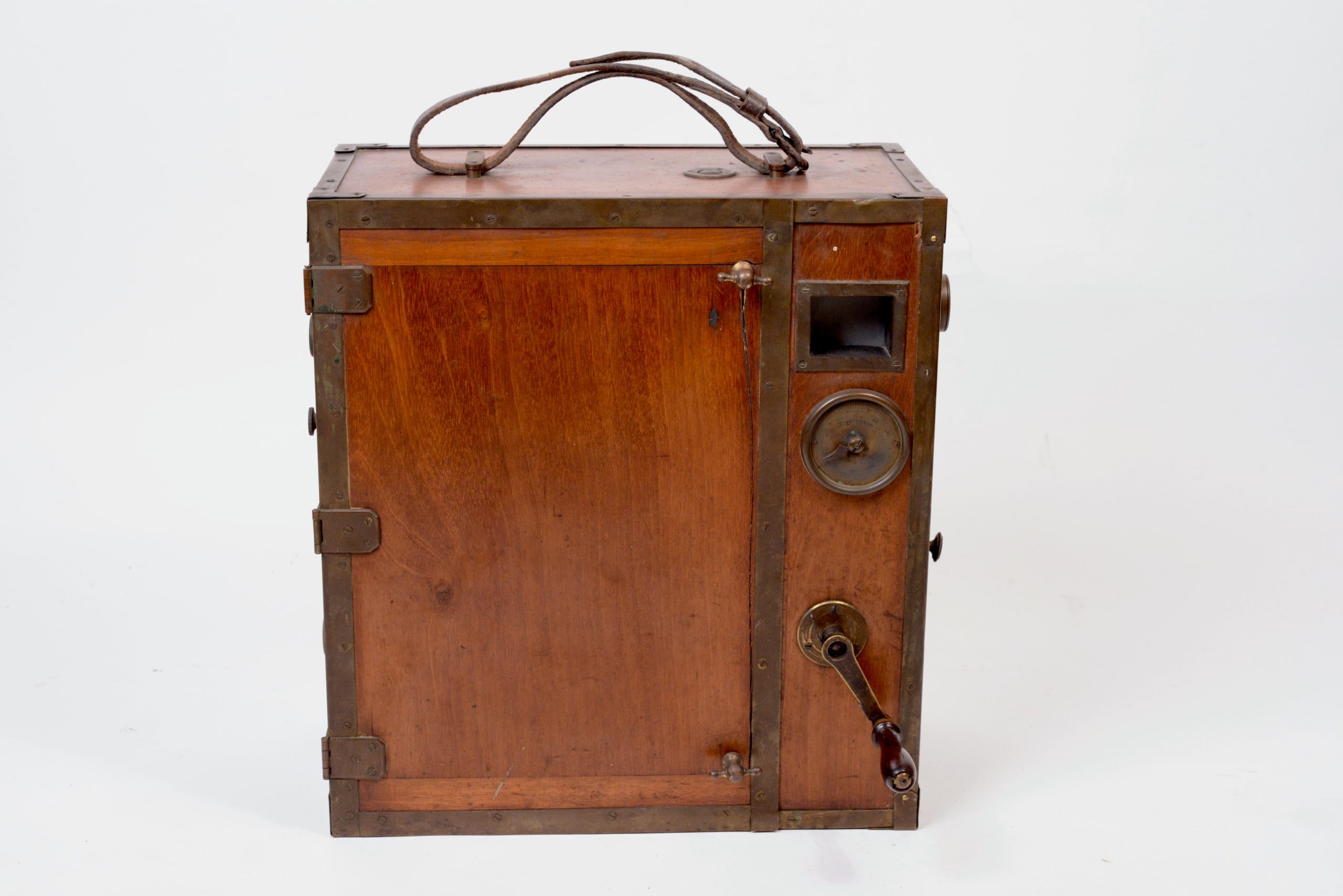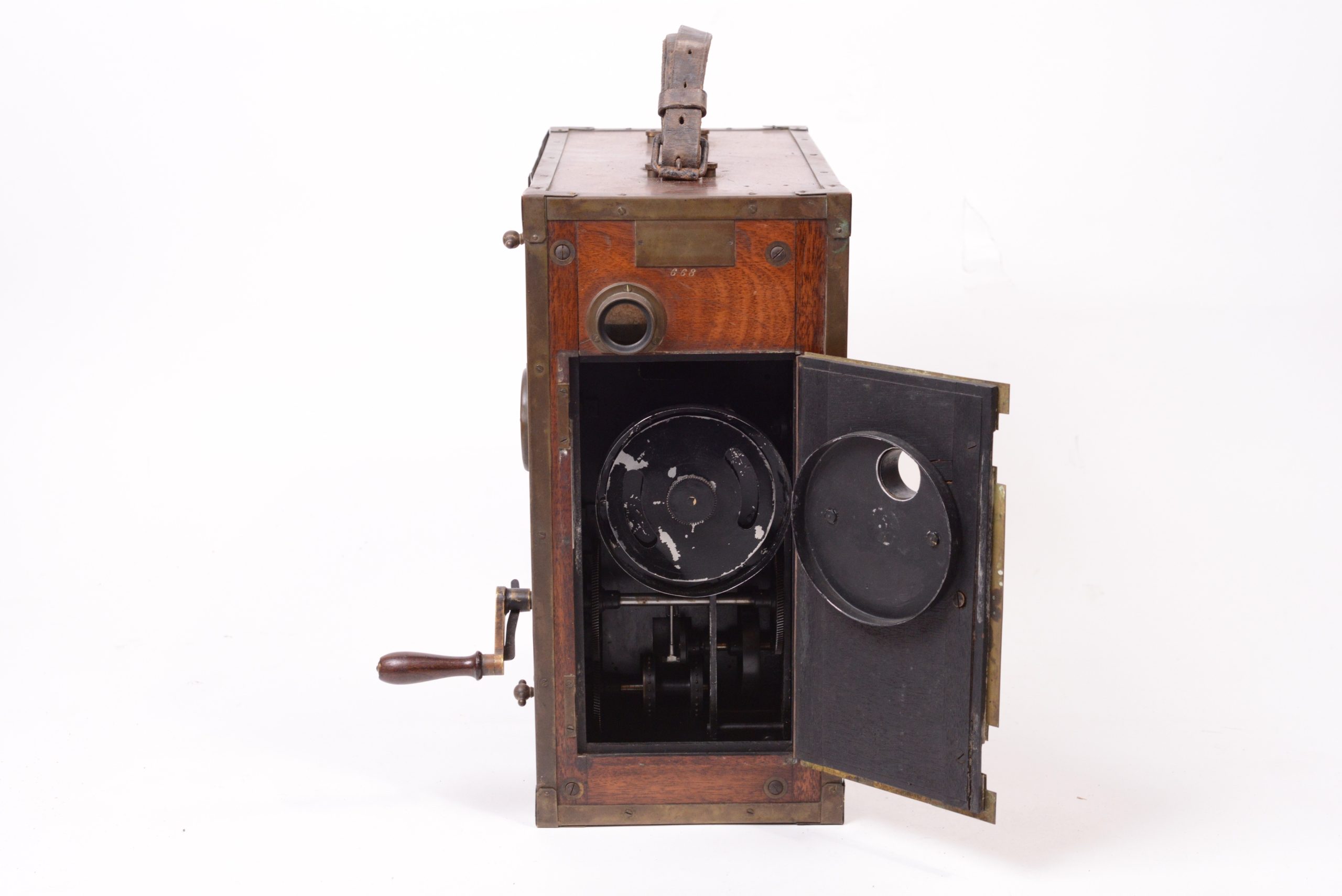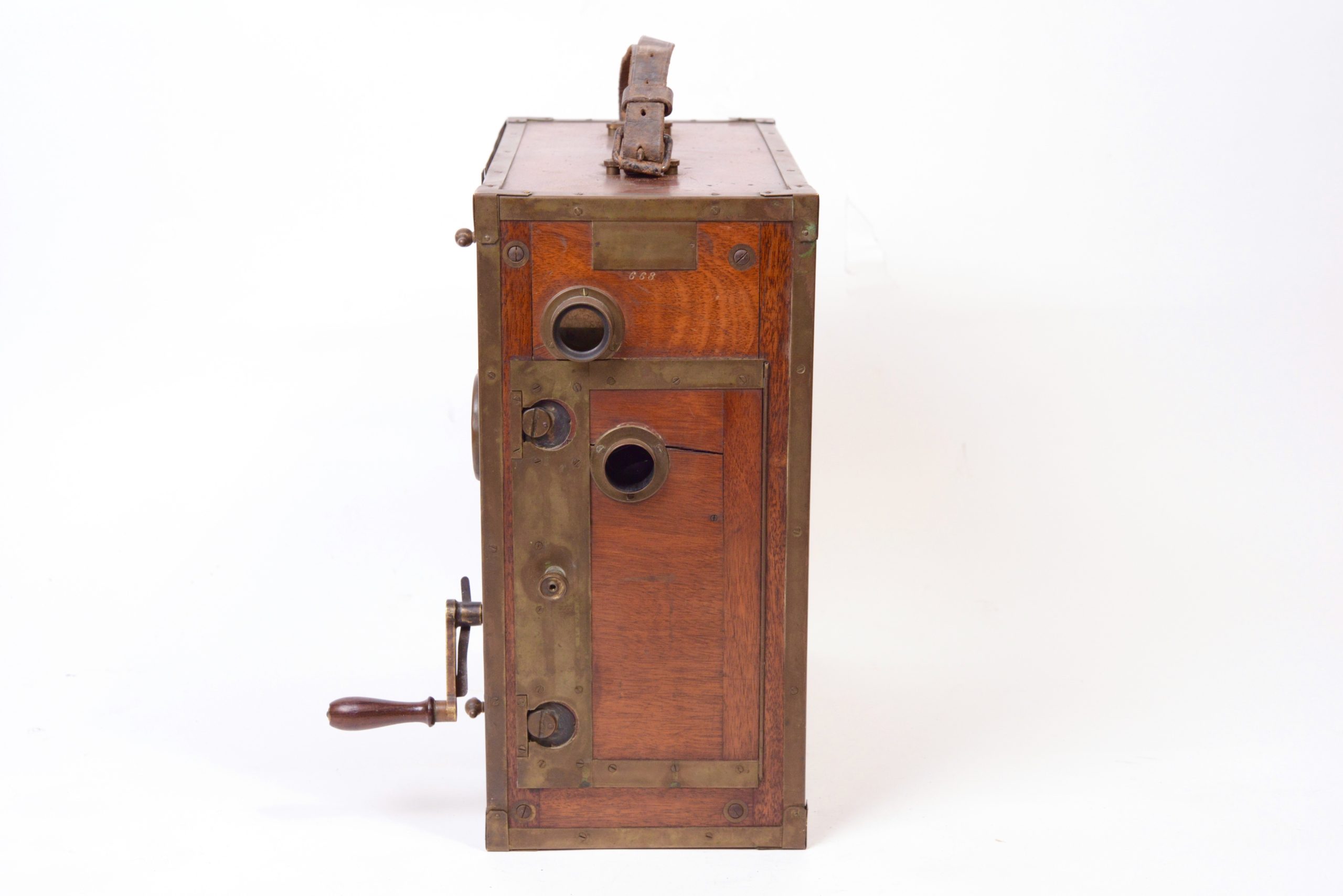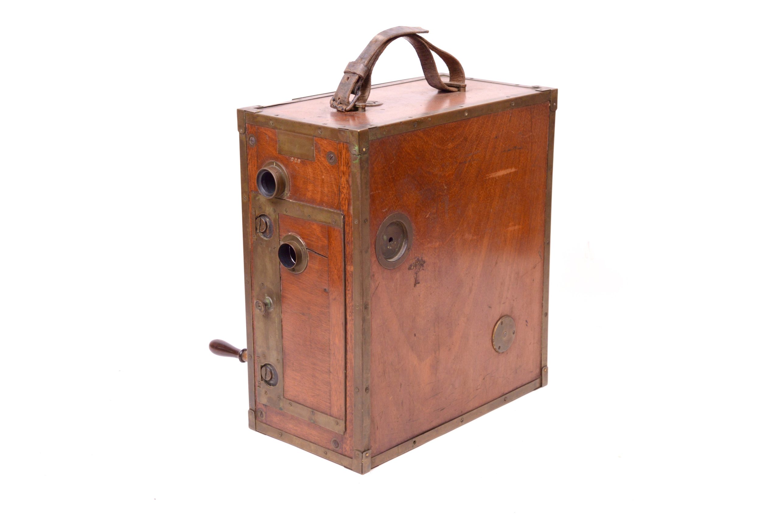 La caméra Pathé – modèle 1905. Cette caméra dite Grand modèle fut construite par les Etablissements Continsouza spécialement pour la vente aux amateurs expérimentés et aux forains à partir de 1905. Son mécanisme de défilement est à griffe à bascules. Ses possibilités techniques sont encore sommaires.