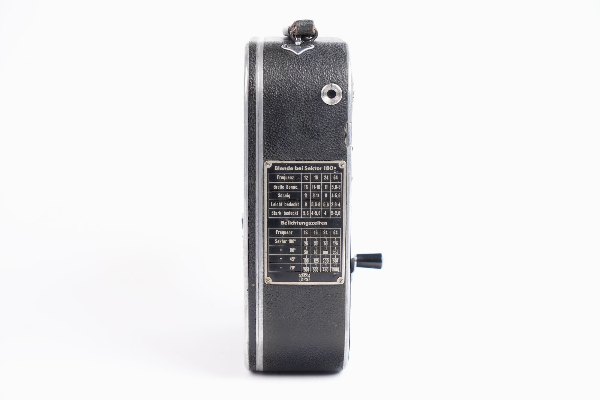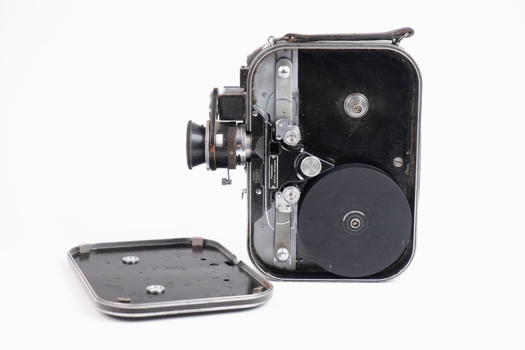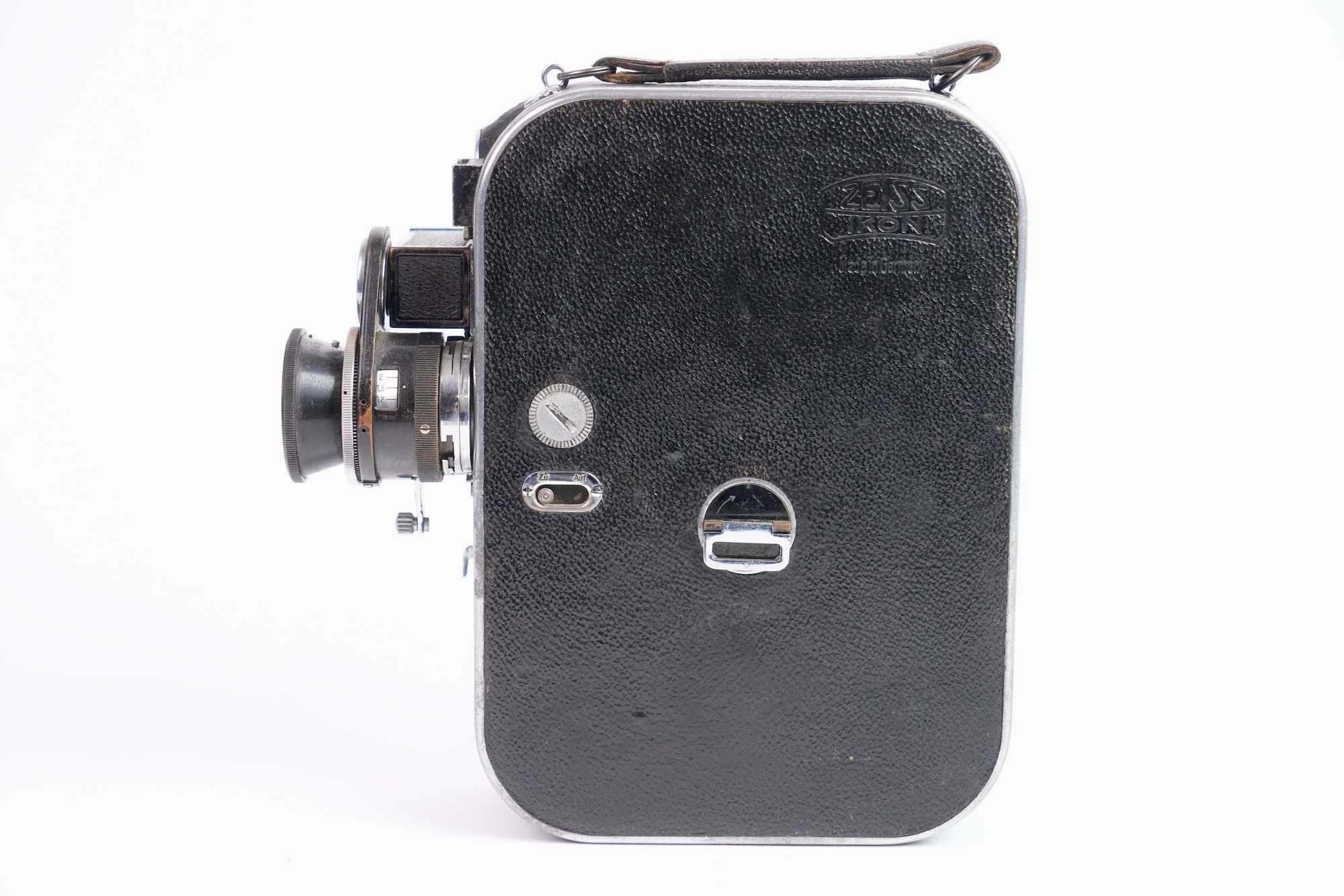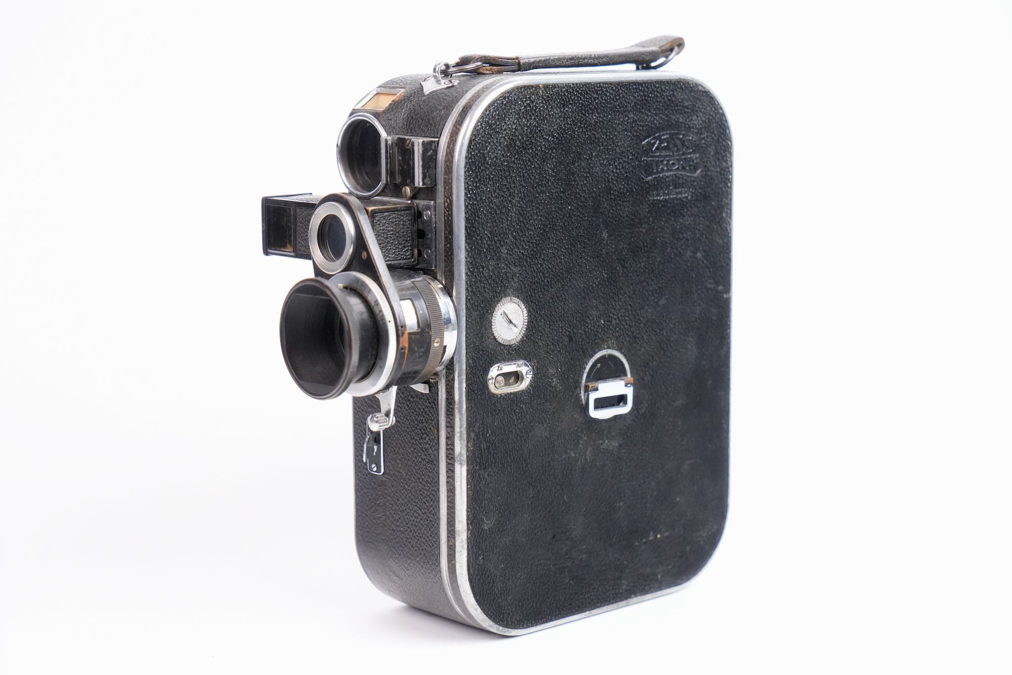 La Movikon 16 , fabriquée à partir de 1937 par Zeiss Ikon. Utilise le film 16 mm, format non inflammable introduit dans les années 1920, elle est équipée d’un moteur à ressort assurant une autonomie de prise de vues sans alimentation électrique, armé par un levier latéral. Son boîtier métallique compact, gainé de cuir, intègre un mécanisme de transport du film de grande précision ainsi qu’une tourelle frontale permettant le montage de plusieurs objectifs interchangeables Carl Zeiss