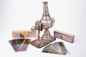 Belle lanterne magique cinématographe Jean Schoenner. L’ensemble comprend la lanterne en tôle de Russie sur (...)Ce produit m'intéresse