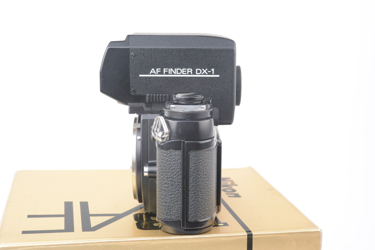 Appareil Nikon pour prises de vue 24x36. La cellule fonctionne avec deux piles LR44. Le prisme Af fonctionne avec deux piles AAA. Le dos dateur fonctionne avec deux piles LR44. Rideau en bon état. Armement, avancement et déclenchement opérationnels. Couleur noire. Numéro AF8303012. Vient avec sa boîte d'origine et sa notice.