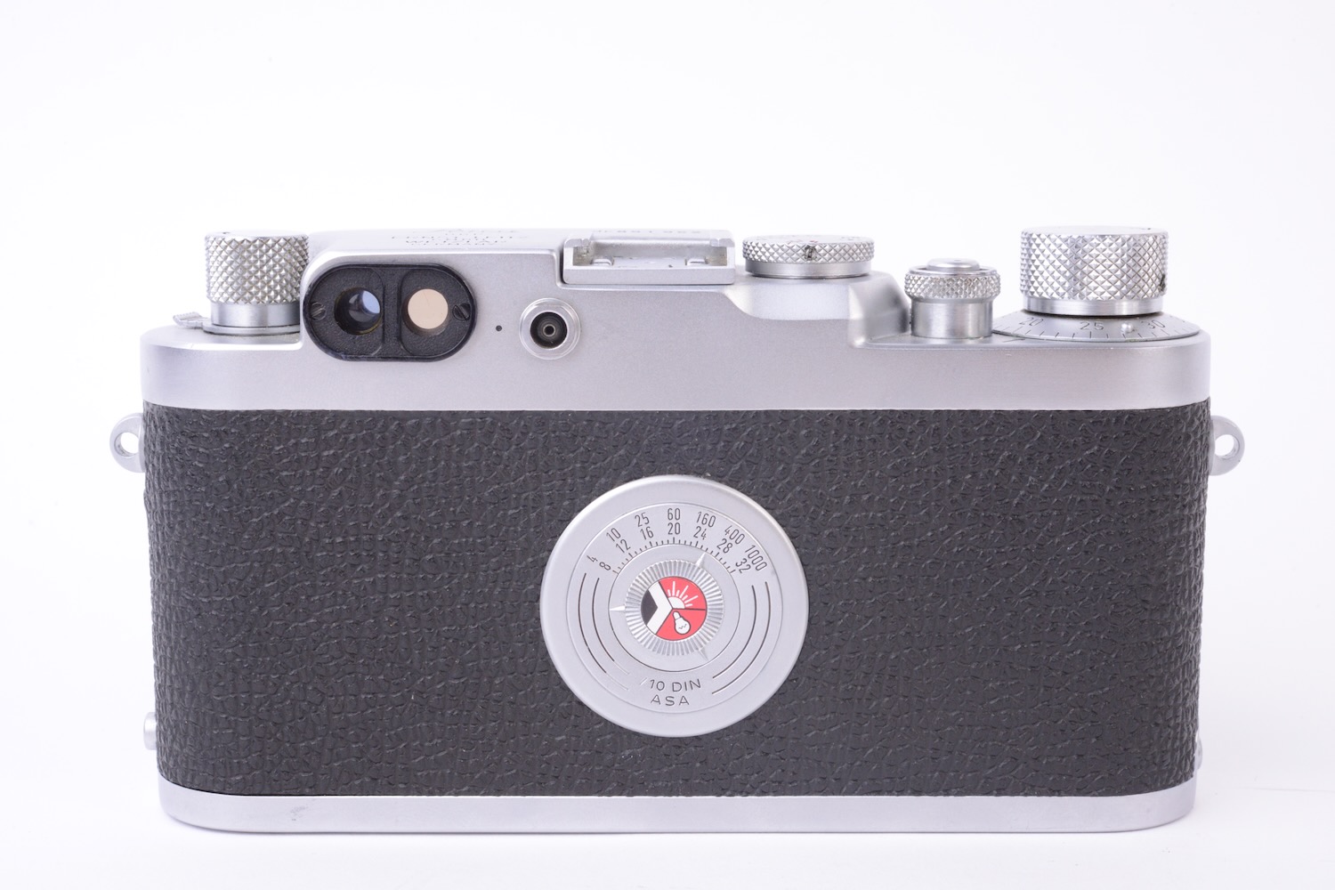 Appareil photo Leica IIIG avec un objectif Summicron 50mm f/2 à vis de 1954. Fabriqué entre 1957 et 1960, le IIIg est le dernier Leica à monture à vis. Il reprend la plupart des caractéristiques techniques du Leica IIIf, dont il est l'évolution. Le viseur, devenu spacieux, comporte un cadre lumineux avec les bornes du 50mm et du 90mm, ainsi qu'un correcteur de parallaxe. L'exemplaire présenté ici est en très bel état. Son numéro de série: N°891962 indique qu'il fut assemblé en 1957. L'objectif est propre, les bagues de mise au point et de diaphragme sont fluides, l'appareil déclenche correctement, le viseur est clair et le télémètre contrasté.