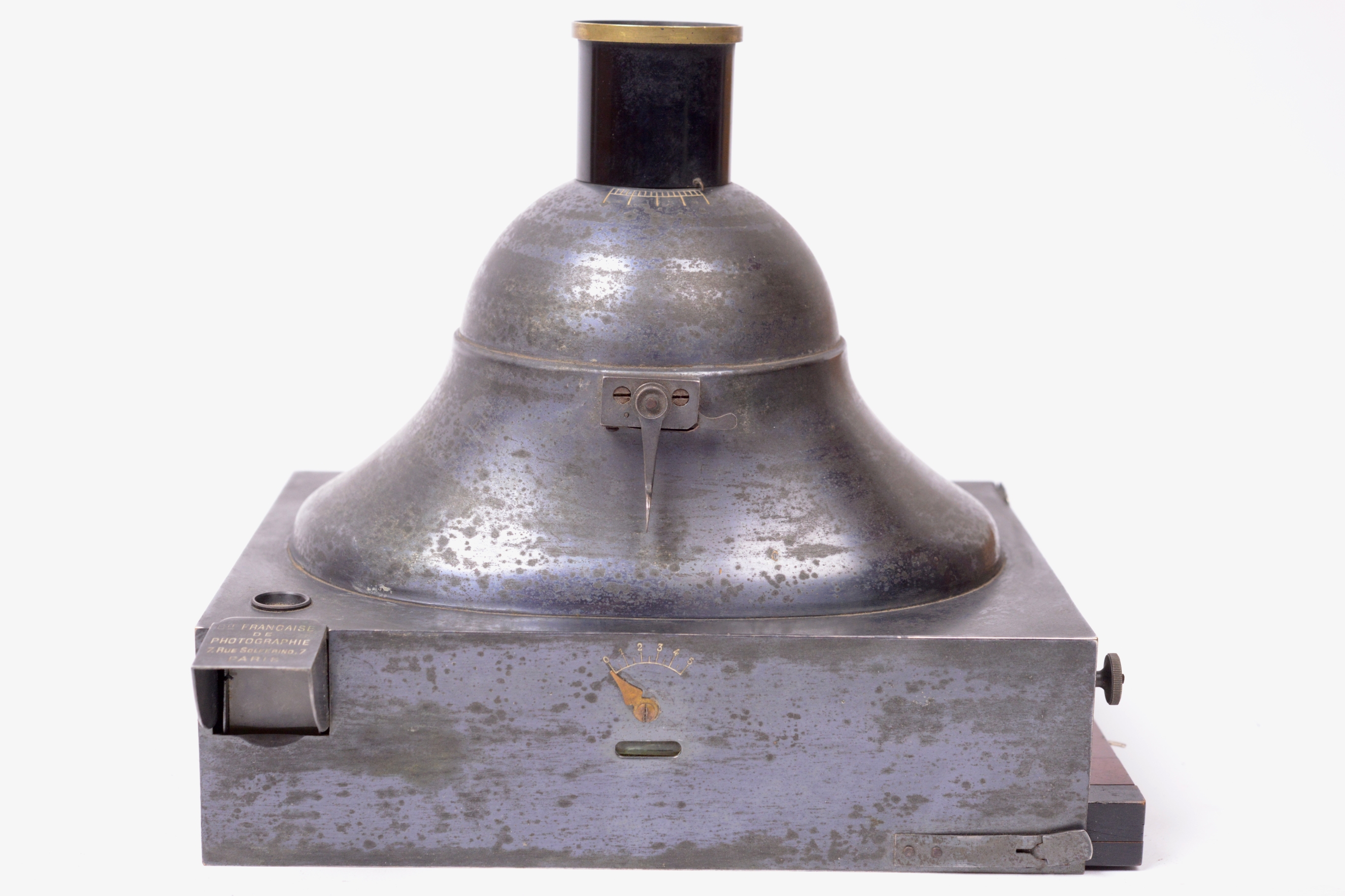 Rare Photosphère 13x18 de la Compagnie Française de Photographie. Le tout premier Photosphère fut inventé par Napoléon Conti en 1887. L'appareil est en cuivre argenté oxydé verni. Il était particulièrement employé par les officiers et les explorateurs dans les contrées coloniales de la fin du XIXème siècle.Dans la presse de cette époque, on n'a pas hésité à rapporter le succès de l'emploi de cet appareil. C'est le cas, notamment, lors de la célèbre mission du Capitaine Binger en Afrique et au cours de laquelle il a pu ramener, grâce au Photosphère, un millier de clichés des territoires coloniaux. L'appareil est muni de deux viseurs intégrés dans le boitier et de deux niveaux fonctionnels. Objectif à mise au point hélicoïdale. L’exemplaire proposé porte le numéro de série 679. Il est doté d’un châssis en acajou, à double volets semi articulés. Bel état d’usage. Très peu courant dans ce format datant des environs 1892.