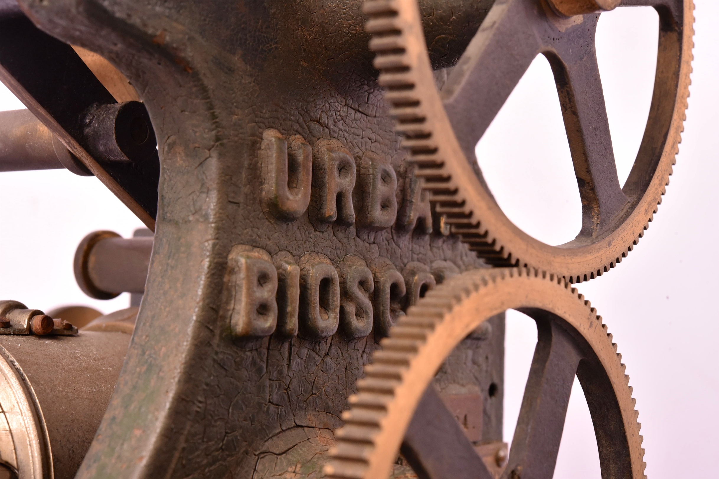 Chronoprojecteur URBAN BIOSCOPE Patent DEMENY. Fabrication par Charles Urban Trading Co. Ltd., Londres et Paris ; ce chronoprojecteur 35 mm porte le numéro de série 934. Le châssis est en fonte peinte. Mécanisme avec les pièces tout en laiton. Présence de la manivelle d’origine. Nom du fabricant, « BIOSCOPE URBAN », coulé dans le châssis, plaque en laiton PATENT DEMENY 1893 NO. 24457, SIE. 19069 N°. Objectif de projection en laiton. Belle pièce de collection.