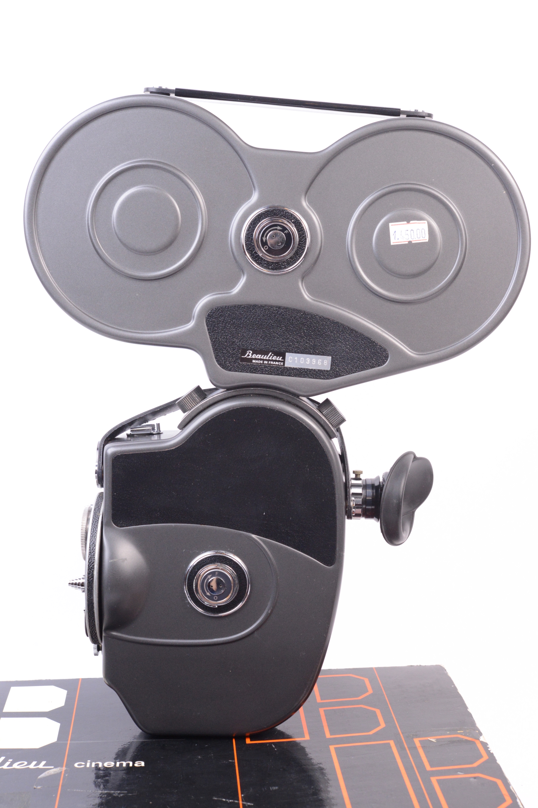 Ciné camera Beaulieu film R16 mm. Un tel type de camera figure dans les collections de la Cinémathèque Française où elle est techniquement présentée ainsi : « entraînement du film 16 mm par une griffe ; deux débiteurs dentés ; obturateur à guillotine avec miroir à 45° pour la visée reflex ; moteur électrique intérieur à transistors ; emplacement intérieur pour une bobine débitrice et une bobine réceptrice de 30 m. ; variateur de vitesse 2-64 images/s. ; prise de vue image par image ; marche arrière ; compteur métrique ; compteur d'images ; potentiomètre de réglage du système sensitométrique ; tachymètre ; prise pour son synchro-pilote ; oculaire de visée ; visée reflex ; poignée avec accumulateurs » Compléments d’informations :