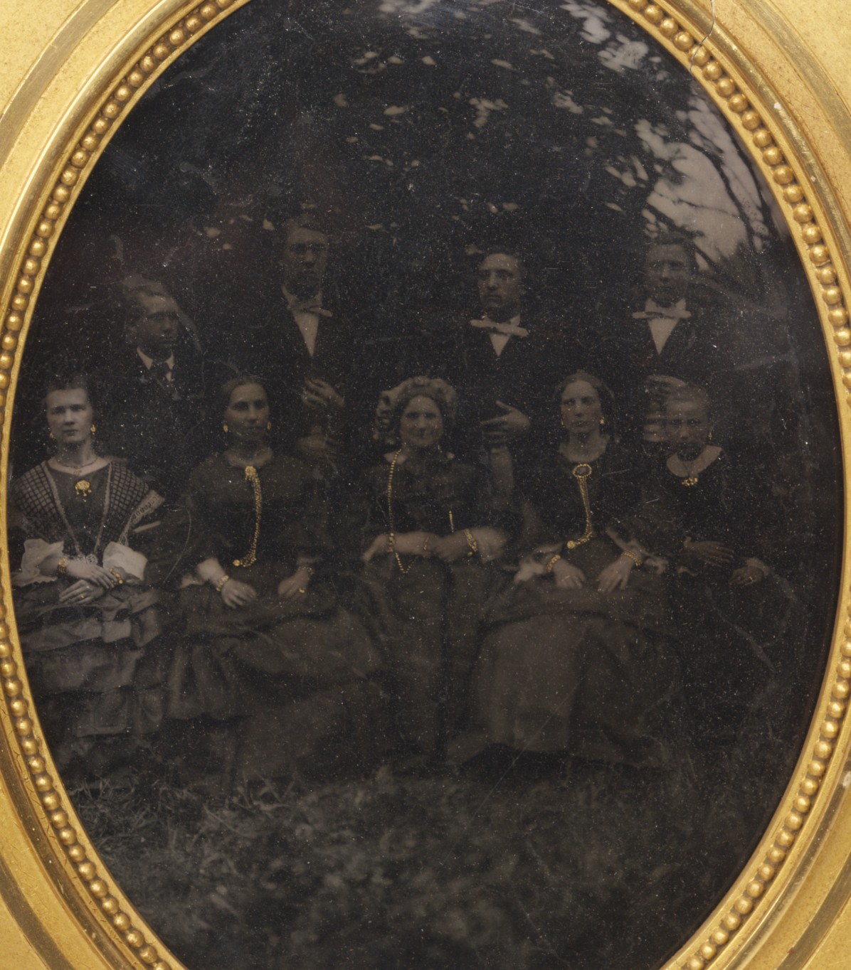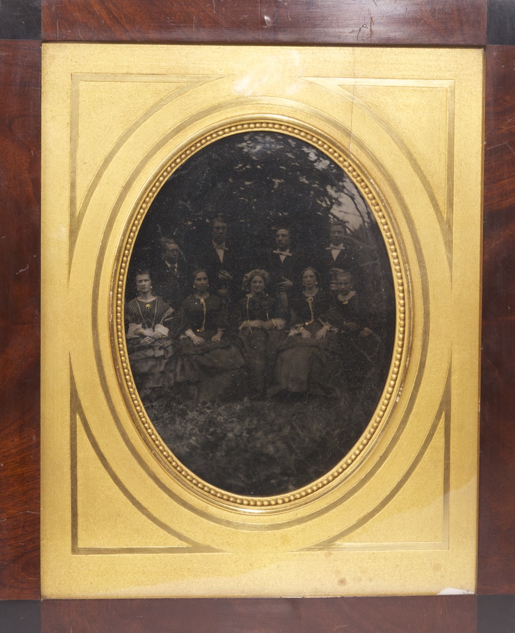 Ambrotype pleine plaque joliment encadré. 9 personnages sur une même plaque. Taille et présentation rares.