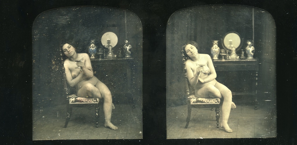 Daguerréotype stéréoscopique colorié 8,5 x 17,3cm France vers 1850. Prix sur demande / On request.