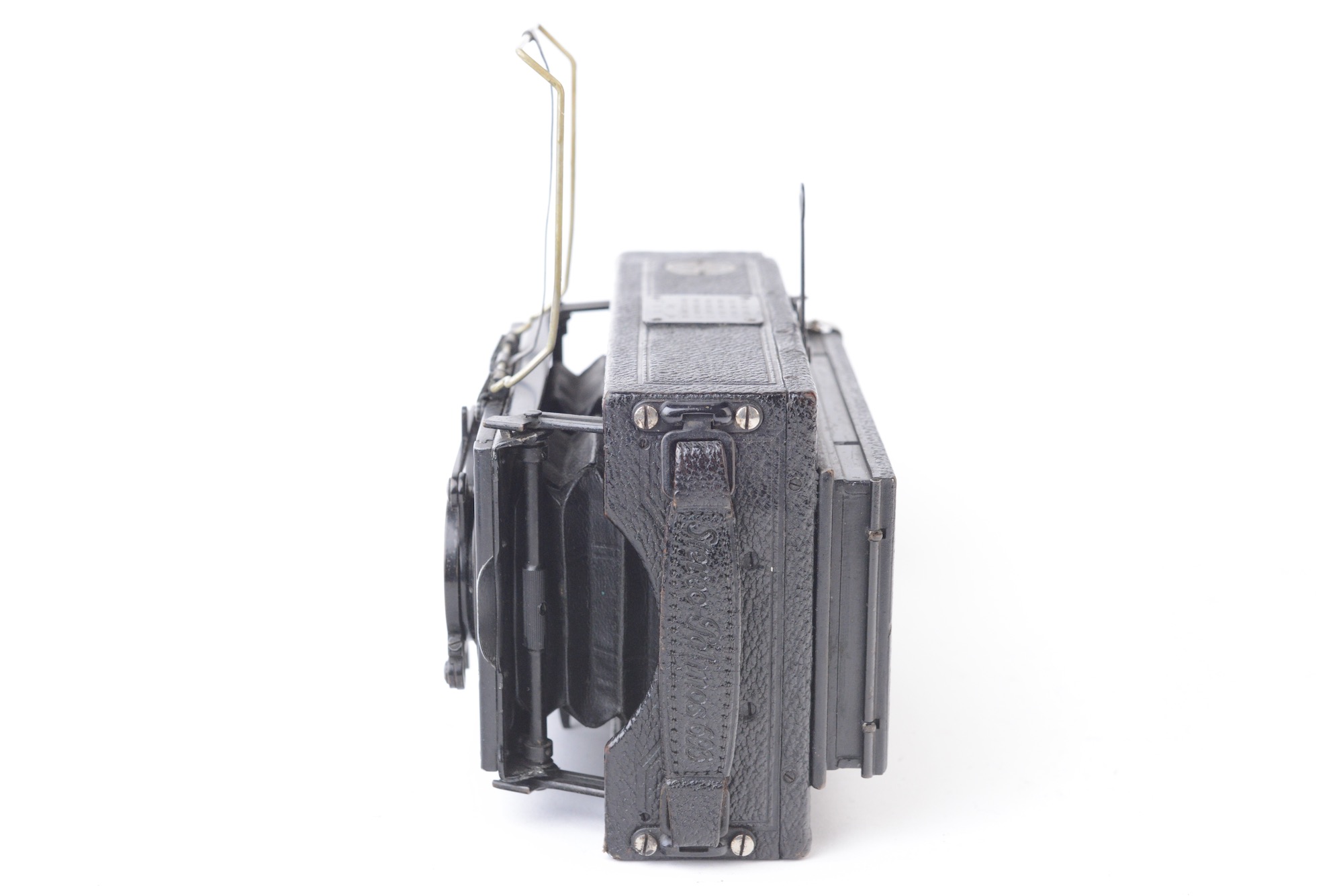 Zeiss- Ikon- Ica Stereo Palmos (693). 6x13 cm. Ica AG, Dresde vers 1925. Appareil stéréo à double soufflets pliables, à tendeurs pour plaques de 6 x 13 cm. Objectifs Carl Zeiss Jena Tessar 4,5/7,5 cm, diaphragmes à iris. Obturateur à plan focal Z, B 1/30–1 /1000 de seconde. Mise au point à 1 m, viseur sportif à cadre rabattable et œilleton de visée. Barrette de bouchons d’objectifs couplés. Très bel appareil en bon état.