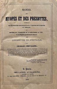 400 €Charles CHEVALIER. Manuel des myopes et des presbytes, contenant des recherches historiques sur l’origine des (...)Ce produit m'intéresse -