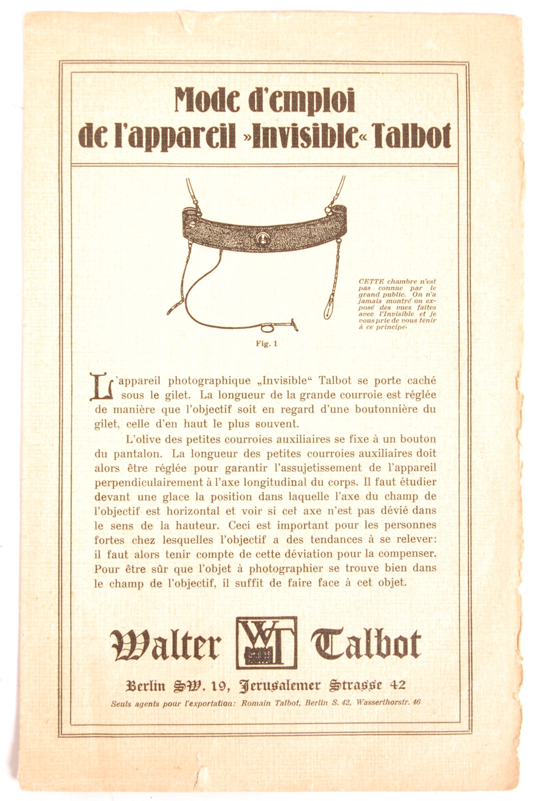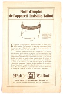 Mode d'Emploi de l'appareil "Invisible" Talbot. Walter Talbot.Ce produit m'intéresse -