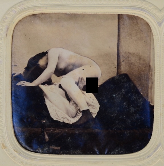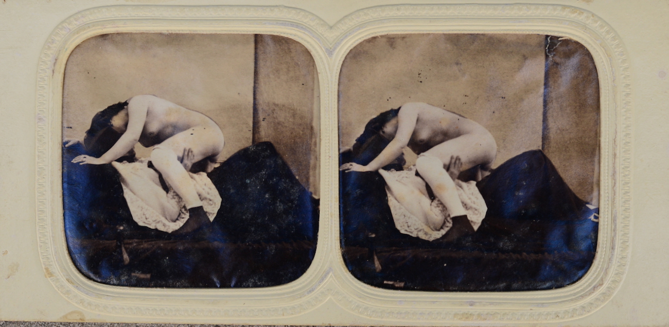 Vue stéréoscopique à caractère pornographique avec effet jour/ nuit. Auguste Belloc (1805-1873) se consacra au daguerréotype puis au procédé au collodion humide pour réaliser commandes et travaux personnels. La plupart de ses nus furent saisis après sa mort.