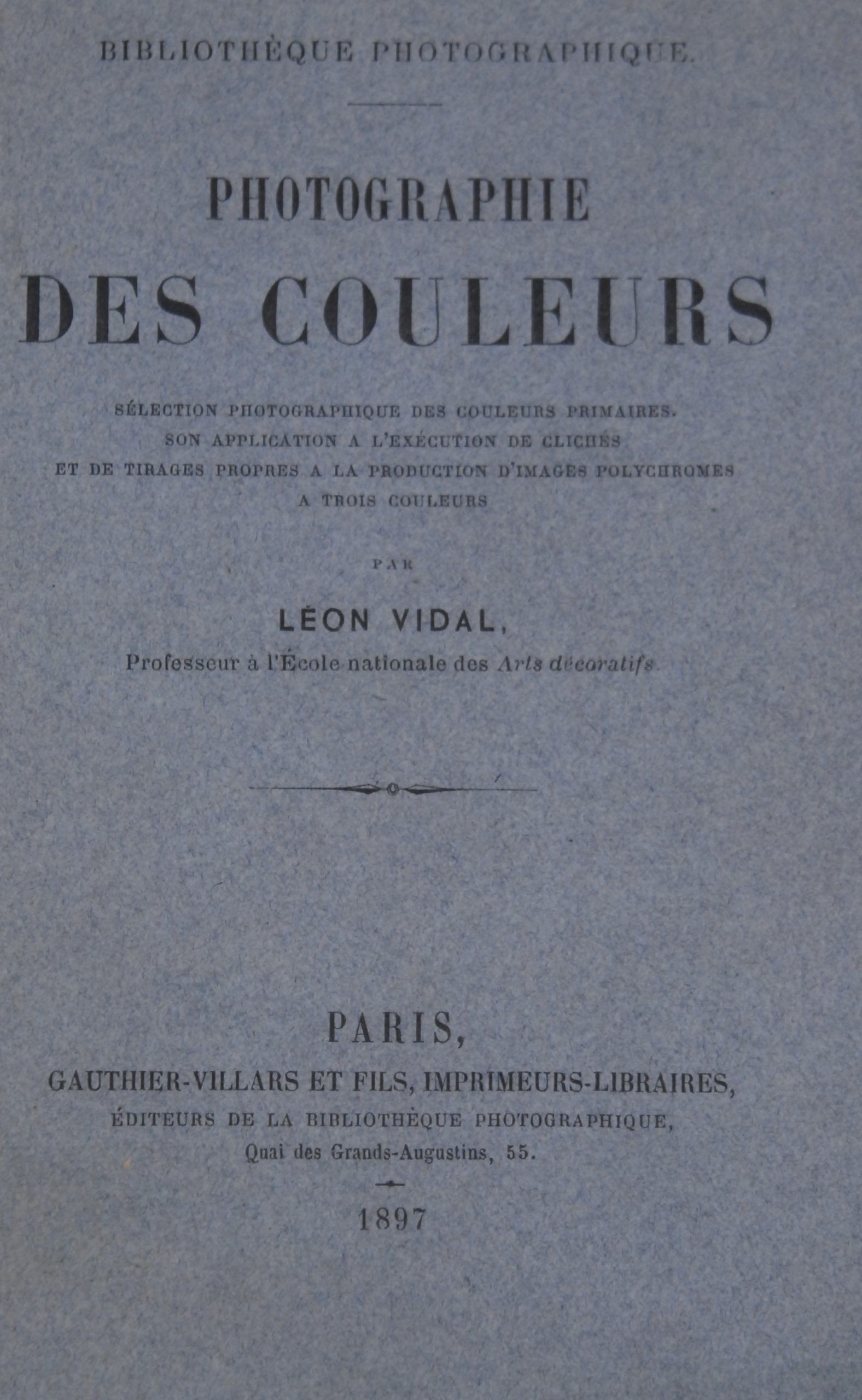 VIDAL (Léon), Photographie des couleurs, Paris, Gauthie-Villars, 1897 In-8 de VII, (1), 92 pages et (...)Ce produit m'intéresse -