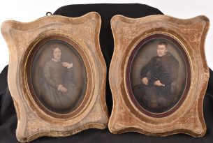 1 500 €Deux daguerréotypes peints, cadres recouverts de velours avec motifs floraux et biseau plaqué d'or. Couple (...)Ce produit m'intéresse -