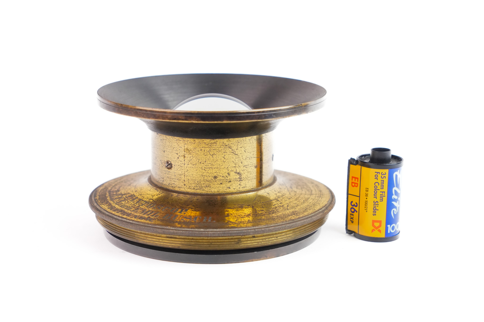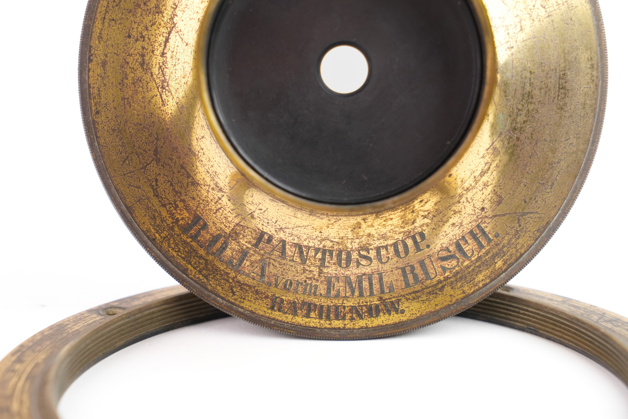 Objectif grand angulaire de 370mm f/6,4. Le diamètre des lentilles est de 57mm. La couverture est exceptionnelle avec une taille annoncée de 52 x 78 cm date de 1865 environ. La série des objectifs Pantoscop a fait l’objet d’une présentation par Emil Busch à la Société Française de Photographie le 9 novembre 1866, Il figure dans les comptes rendus en ces termes : « La nouvelle lentille que l'on a baptisée du nom de Pantoscope est un objectif double composé de deux verres achromatiques, et en cela elle diffère donc du périscope de M. Steinheil. La forme des lentilles (pour la désigner approximativement) est intermédiaire entre celle d'une sphère et celle d'un œuf. Les diaphragmes centraux sont placés juste au milieu de l'espace compris entre les deux verres…/… ». Malgré sa taille et sa couverture imposante, il n'est pas le plus grand de la série. Il existe un Pantoscope n°7 !
