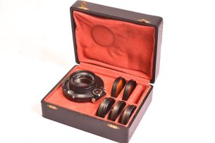 Objectif aplanétique inspiré du design Euryskop, doté d'une focale de 360 mm et d'une ouverture d'environ f/6. Sa hauteur est de 13 cm. Il est équipé d'un diaphragme à vannes de type Waterhouse et présente une finition en laiton. Les lentilles sont en bon état, avec seulement quelques légères rayures. Carl Böhmke, ancien employé de longue date chez Voigtländer, s'est ensuite lancé dans la fabrication de sa propre gamme d'objectifs. Cet exemplaire, portant le numéro de série 837, couvre un format allant jusqu'à 24x30 cm. Il provient de la collection d'Ugo Menichini.