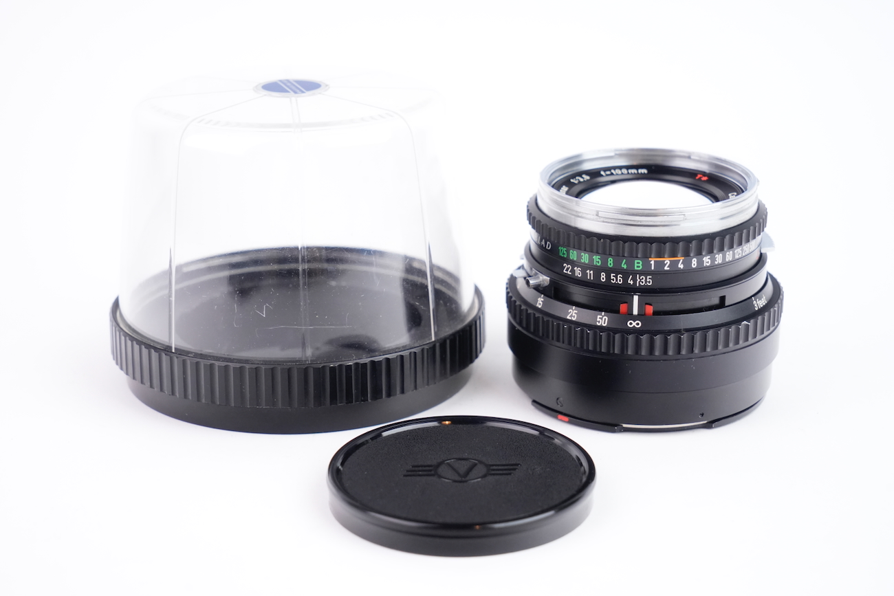 Objectif de type C pour Hasselblad. Objectif en bon état optique et mécanique. Bon aspect extérieur aussi. Lentilles propres, sans brume, sans décollement et sans champignon. On note de fines traces de nettoyage du côté de la lentille arrière. Numéro de série 5788861.