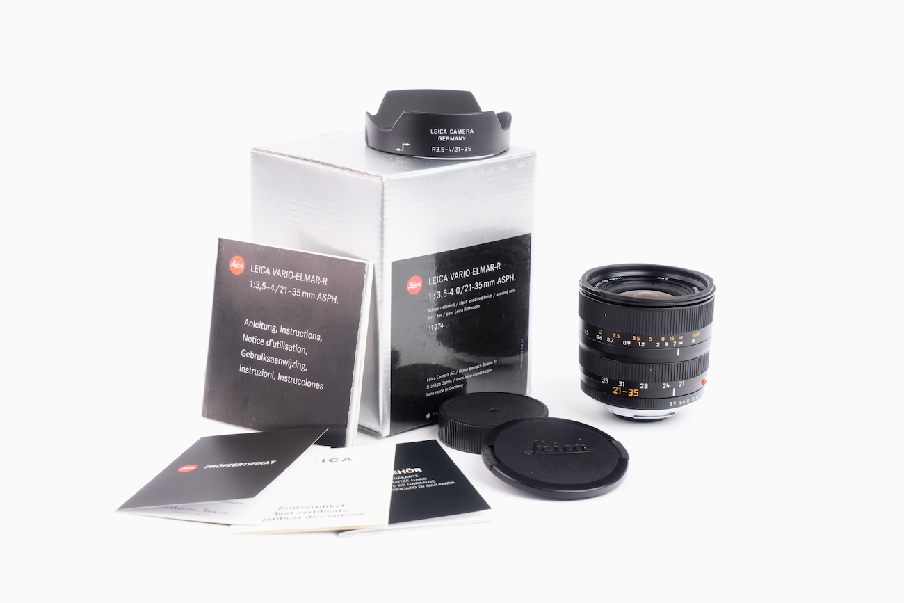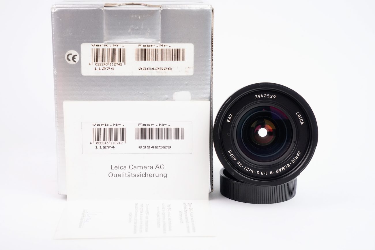 Objectif pour Leica, monture M. État cosmétique et mécanique bon. Bagues de diaphragme, de focale et de mise au point fluides. Lentilles propres, sans brume, champignon, rayure ou séparation. N° 3942529. Vient avec son pare-soleil, ses bouchons avant et arrière ainsi que sa boite d'origine et sa documentation. Date de 2001 environ.