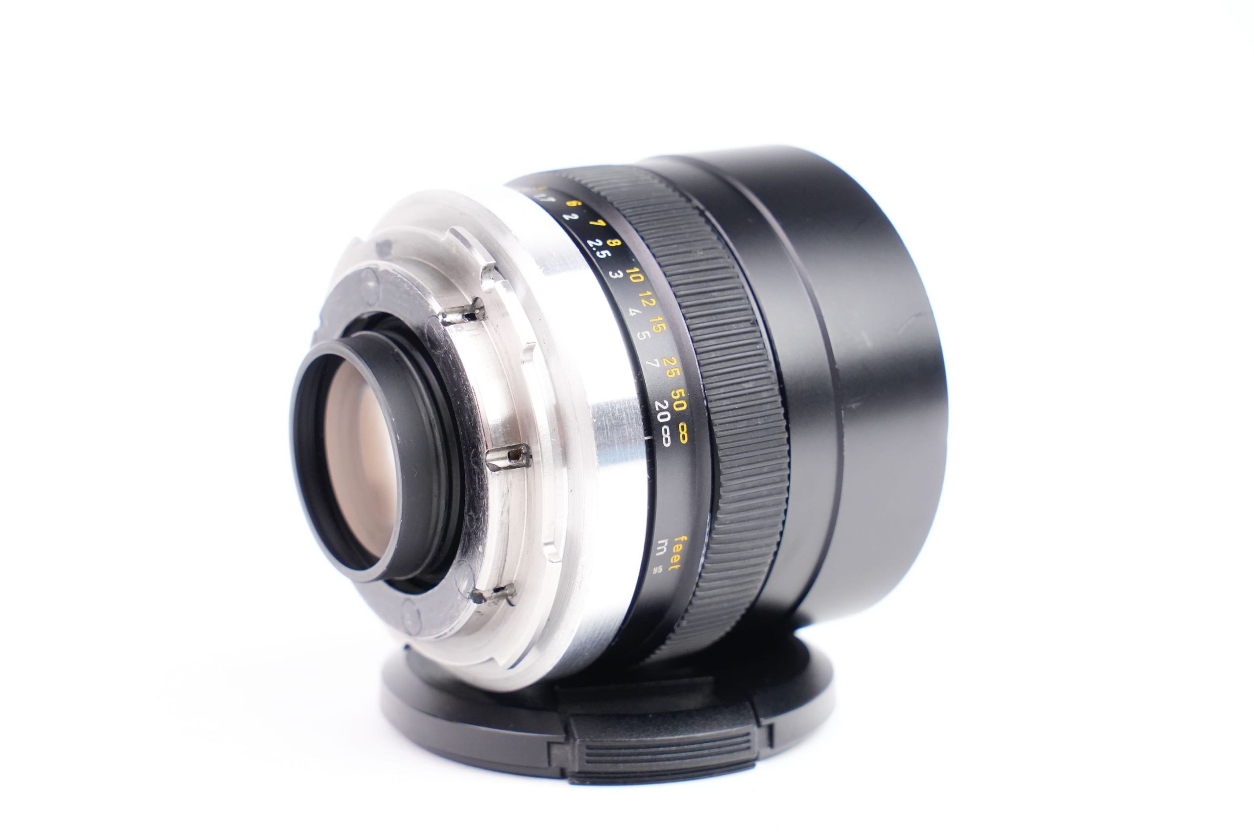 Leitz Summilux-R 80 mm f/1.4, version modifiée en monture ARRI PL, fabriqué à Wetzlar (Allemagne) vers 1980. — Issu de la prestigieuse lignée des optiques Leica R, ce téléobjectif lumineux, conçu par Walter Mandler, est réputé pour la douceur de son bokeh et son rendu charnel des portraits. Adapté ici pour un usage cinéma, il conserve ses qualités optiques d’origine tout en bénéficiant d’une précision mécanique adaptée aux contraintes de tournage. Sa grande ouverture f/1.4 assure une faible profondeur de champ et des performances remarquables en faible luminosité. Format couvert : Plein format (24x36 mm), compatible avec les capteurs Full Frame et Super 35 mm. Les lentilles sont en très bon état, sans rayure,