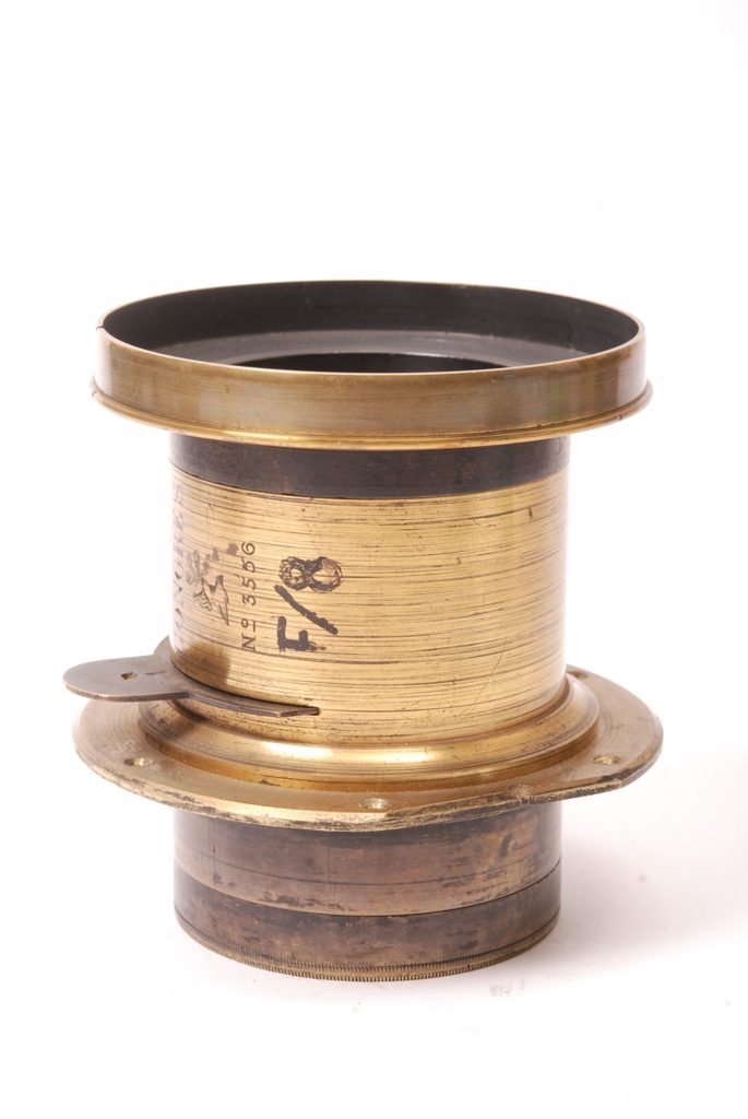 Objectif du Congrès (1889) Pour Portraits, Paysages et Reproductions. Cet objectif très particulier est décrit dans un complément de la revue Photo-Gazette de 1892 :  "Absence complète de distorsion, planéité des lignes parfaite, netteté absolue sur toute la surface de la plaque, profondeur du foyer considérable, et par-dessus tout, rapidité défiant la vitesse de l’obturateur le plus vif, tels sont les avantages réunis pour la première fois dans un appareil de photographie et qui constituent la supériorité incomparable des Objectifs du Congrès. Par une innovation très utile, chaque objectif est muni d'un graphique indiquant les propriétés afférentes à l'instrument. On trouvera renfermés dans le bouchon même de l'appareil tous les renseignements indispensables à la photographie raisonnée, tels que : longueur du foyer, ouverture de l’angle, position des points nodaux, surface couverte à l'aide de chaque diaphragme, distance à laquelle on doit se placer pour obtenir des images de différentes hauteurs, pour faire des portraits en pied, des bustes, des têtes, etc., etc. Ces renseignements, très précieux par eux-mêmes, sont la garantie des qualités de l'objectif." Très rare exemplaire possédant surtout et encore son bouchon en cuir à "doubles volets graphiques". Prix lors de l'exposition universelle de 1889. Voir document joint. Excellent état.