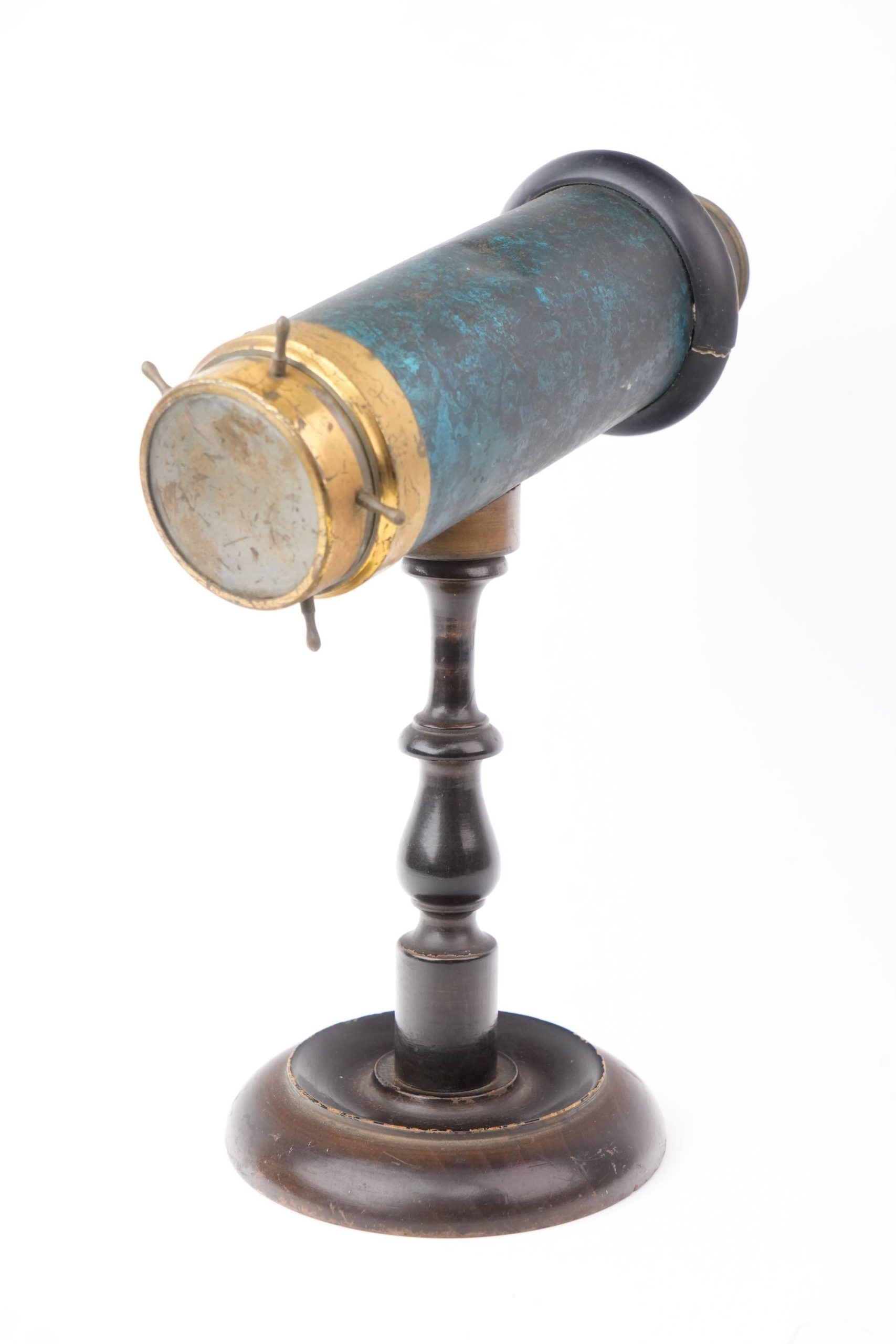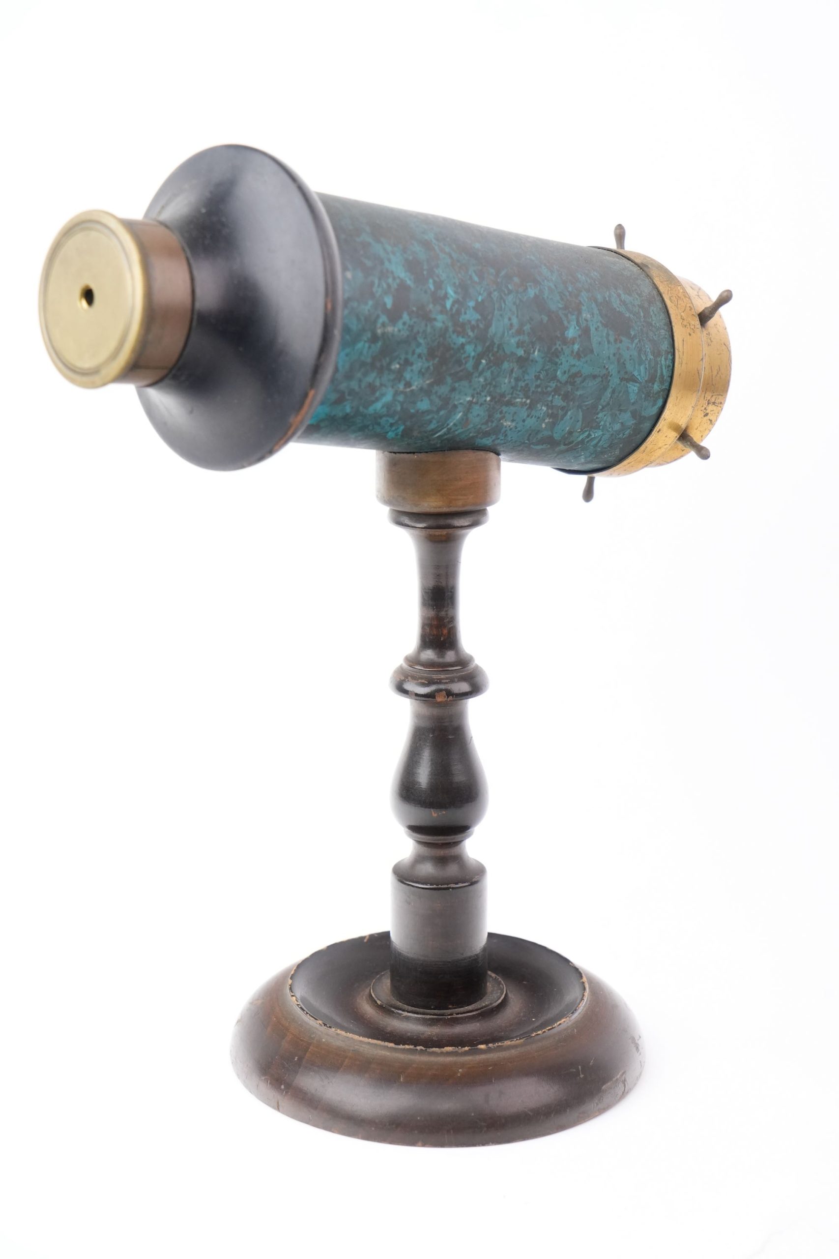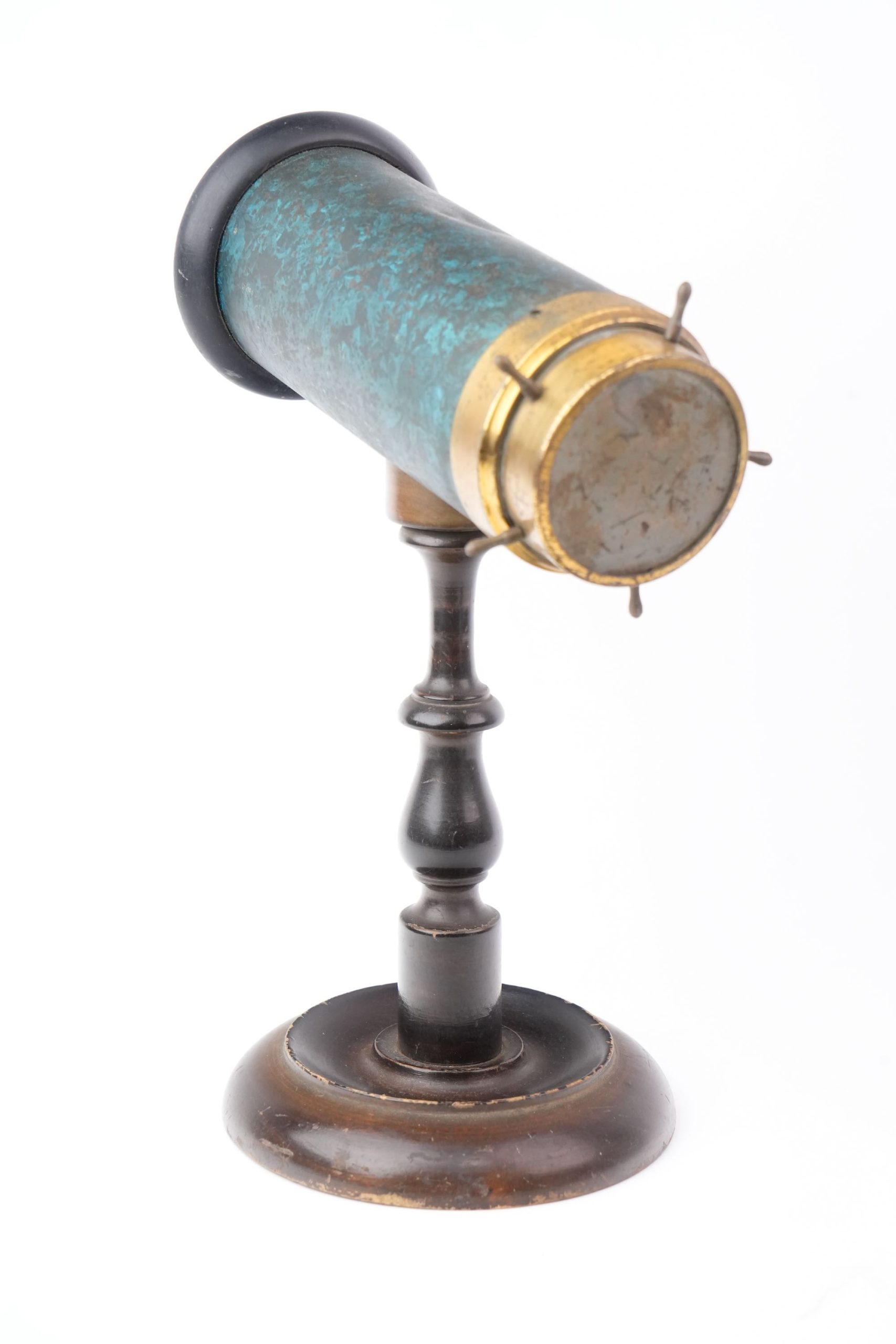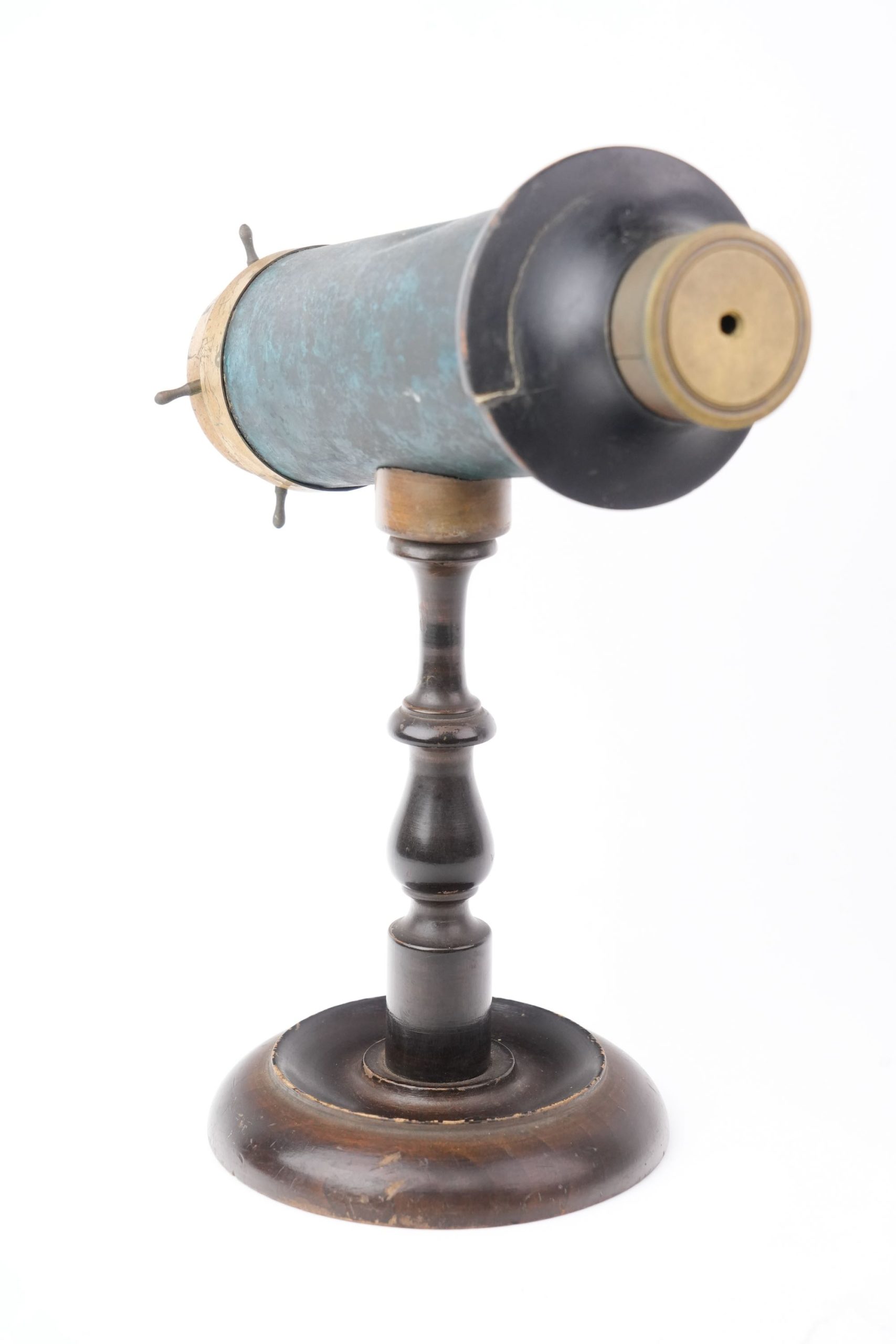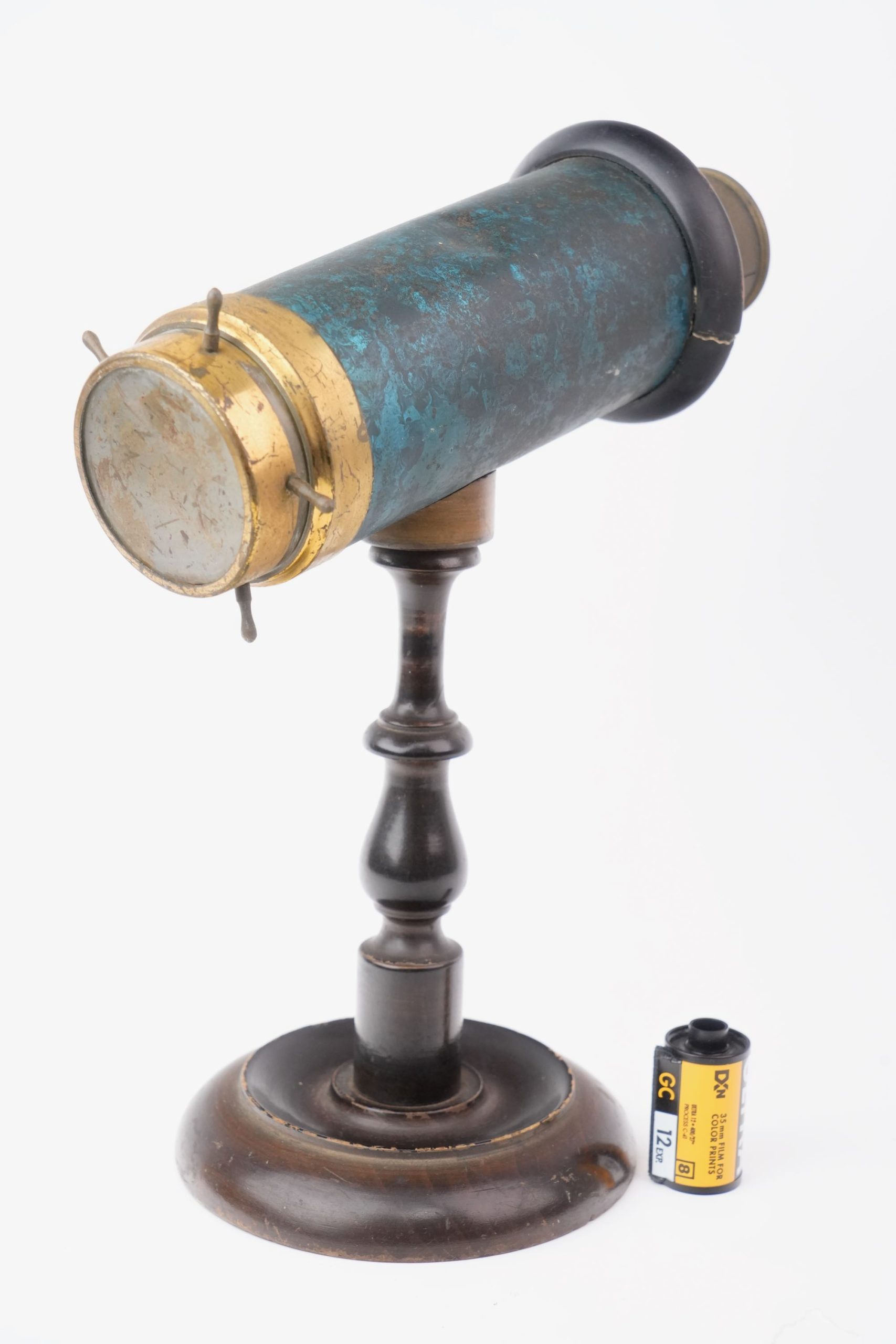 <div class="available-middle-text">Kaléidoscope en laiton avec son pied en bois tourné et noirci. Tube de 7,5 cm de diamètre, mesure 30 cm de haut sur pied. L'oculaire est clair, la roue cuivrée tourne. On note quelques légers accidents, sur le dessus du corps du kaléidoscope, Fin 19ème siècle.</div>