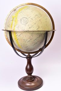 Globe céleste de l'abbé Théophile Moreux. Il porte les mentions suivantes : « Édité par E. Girard, (...)Ce produit m'intéresse