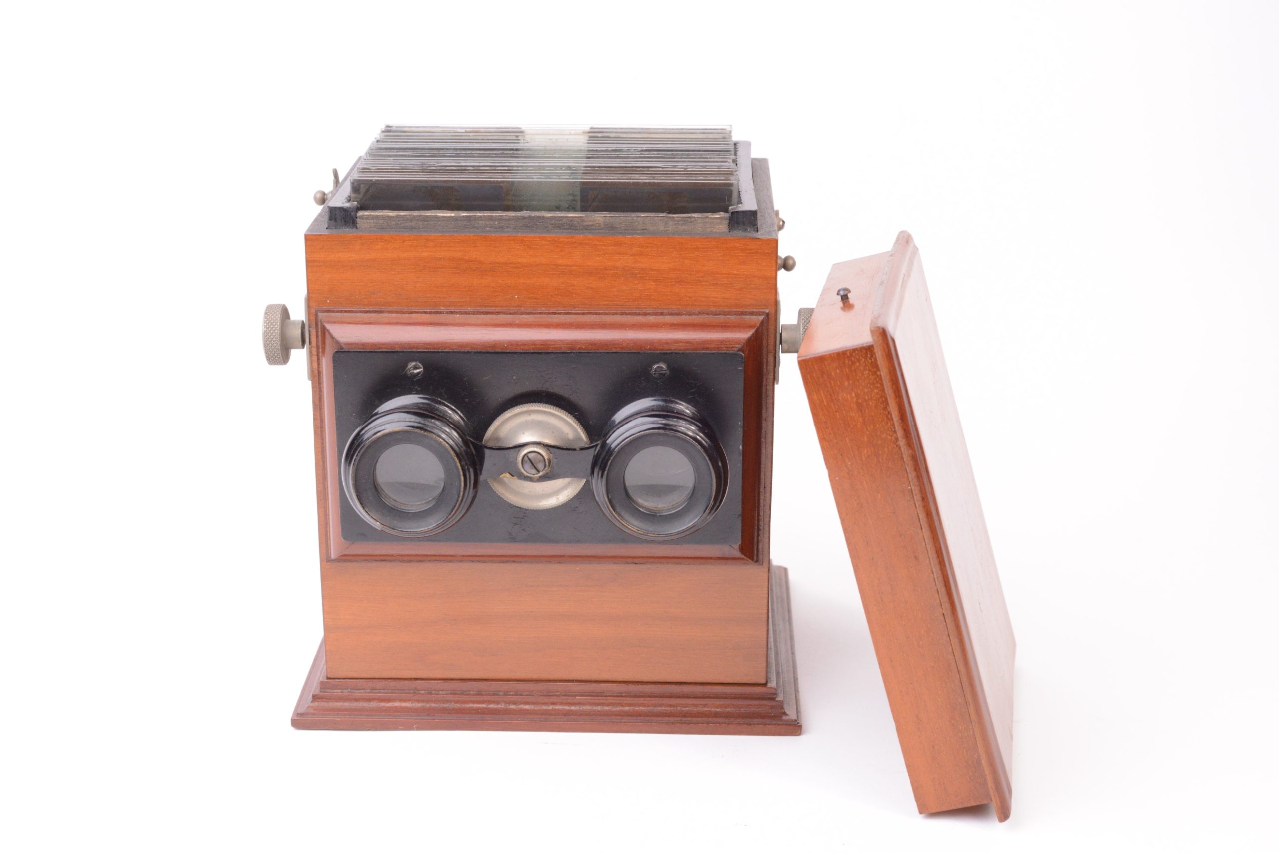 Le Minimus est fabriqué par Lucien Bize puis Robert Pleyau successeur vers 1905. Il est présenté ainsi dans la presse spécialisée de l’époque : « Ce nouveau stéréoscope est très intéressant pour tous les amateurs possédant un appareil photographique 45x107 : il est essentiellement pratique, très commode et son prix trente-neuf francs le met bien à la portée de tous. Il n'est pas volumineux, 17 cm de hauteur, 15 cm de largeur et 12 cm de profondeur et peut recevoir 24 vues stéréoscopiques, remplacées l'une après l'autre automatiquement devant l’objectif par un simple mouvement de crémaillère. Les positifs disposés dans des rainures se placent en un tour de main dans l'appareil de même qu'ils peuvent en être extraits tous ensemble par un simple renversement de Boite-Classeur que l'on place simplement à la partie supérieure sur laquelle cette boîte-classeur vient exactement s’adapter. Les oculaires sont à mise au point au moyen d’une molette, un bouton fait fonctionner la crémaillère d'escamotage et le couvercle se retire pour l’introduction ou la sortie des vues sur verre (non bordées). Enfin on peut avoir pour le prix de trois francs cinquante centimes, autant de boîte à rainures que l’on veut permettant le classement des clichés pour renverser facultativement à tout moment dans l'appareil. ».