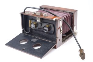 Chambre photographique stéréoscopique de format 8,5x17 cm. Vers 1895. Belle ébénisterie en acajou avec assemblages (...)Ce produit m'intéresse -