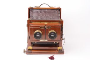 Détail singulier, cette chambre stéréoscopique anglaise de format demi-plaque est munie d'une plaque gravée en (...)Ce produit m'intéresse -