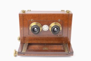 Antiq-Photo est aussi spécialiste des appareils stéréoscopiques anciens : visionneuses, cartes stéréo, vues en relief, jumelles et accessoires 3D. Nous mettons en valeur la stéréoscopie, technique d’illusion de profondeur et d’image en relief, avec des pièces rares destinées aux collectionneurs, chercheurs et amateurs de patrimoine photographique.