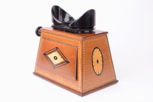 Visionneuse 8,5x17 marquetée. Très belle fabrication, attribuée à Mattey, en acajou avec incrustations (ébène, bois (...)Ce produit m'intéresse -