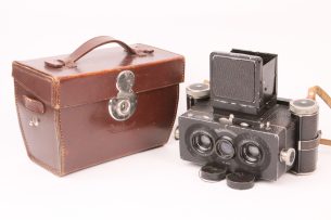 Antiq-Photo est aussi spécialiste des appareils stéréoscopiques anciens : visionneuses, cartes stéréo, vues en relief, jumelles et accessoires 3D. Nous mettons en valeur la stéréoscopie, technique d’illusion de profondeur et d’image en relief, avec des pièces rares destinées aux collectionneurs, chercheurs et amateurs de patrimoine photographique.